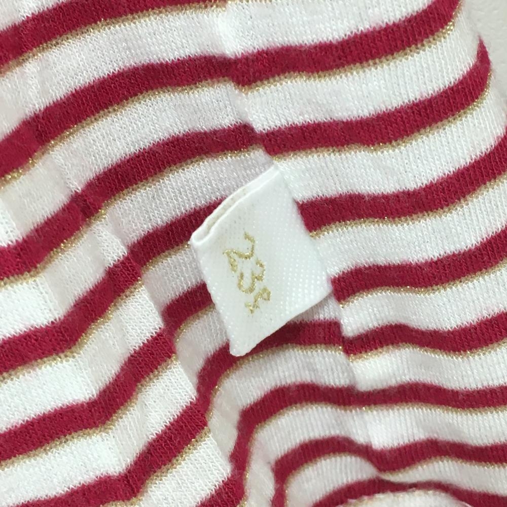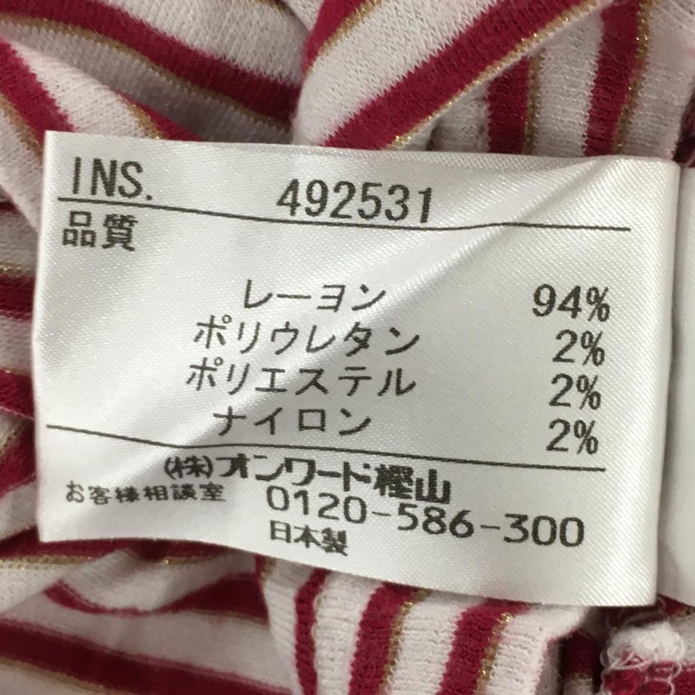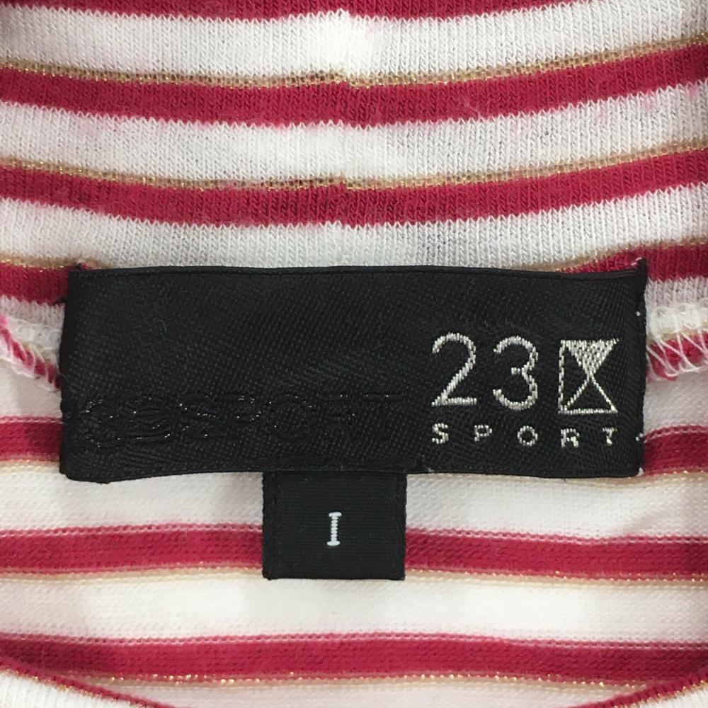 【美品】23区スポーツ 長袖ハイネックシャツ 白×レッド ボーダー ラメ 薄手 レディース Ⅰ(M) ゴルフウェア 23区