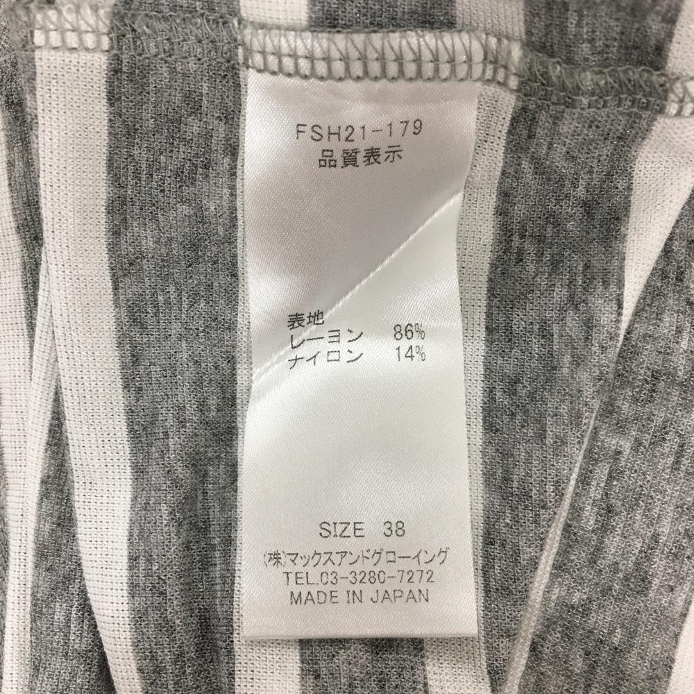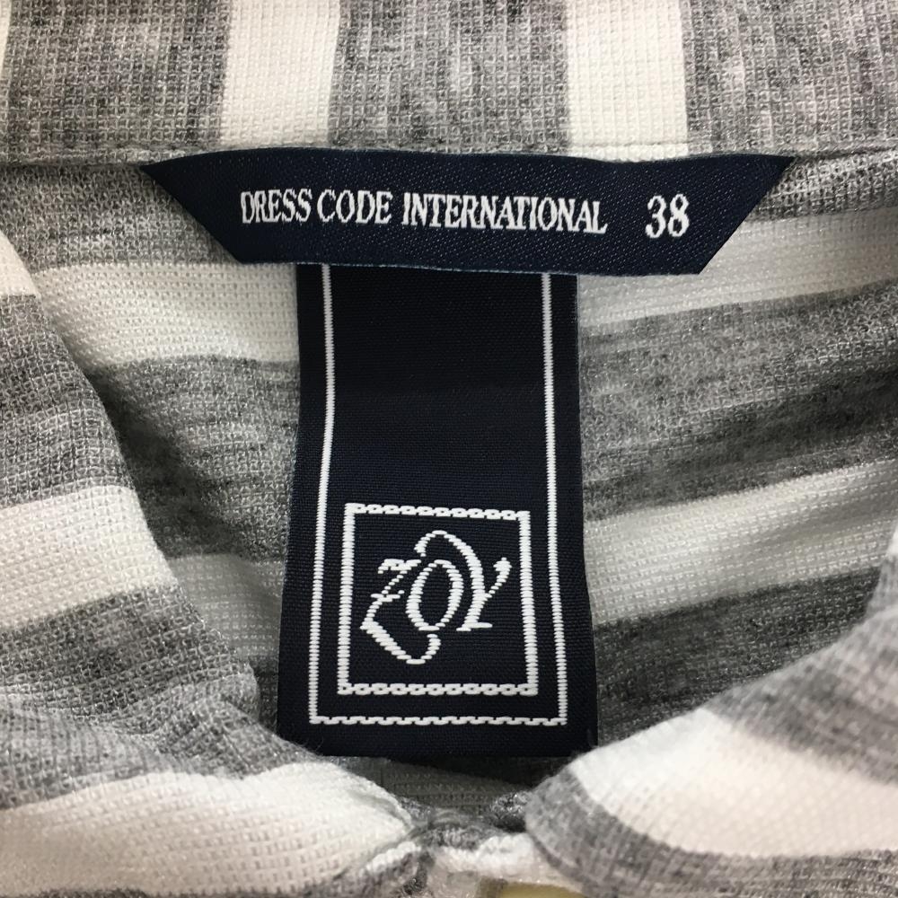 【超美品】ゾーイ 半袖ポロシャツ グレー×白 ボーダー 薄手 ロゴ刺しゅう レディース 38(M) ゴルフウェア ZOY
