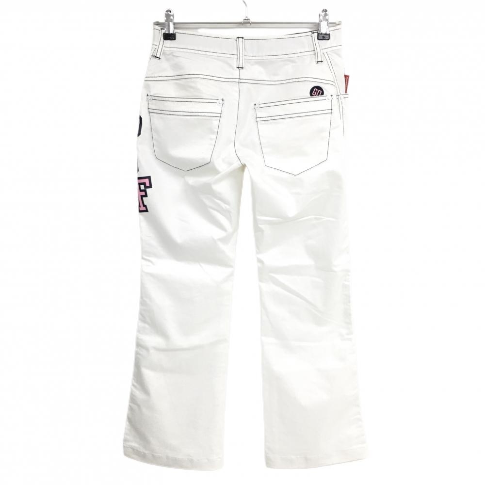 ルコック パンツ 白×ネイビー ステッチ ロゴプリント レディース 7 ゴルフウェア le coq sportif
