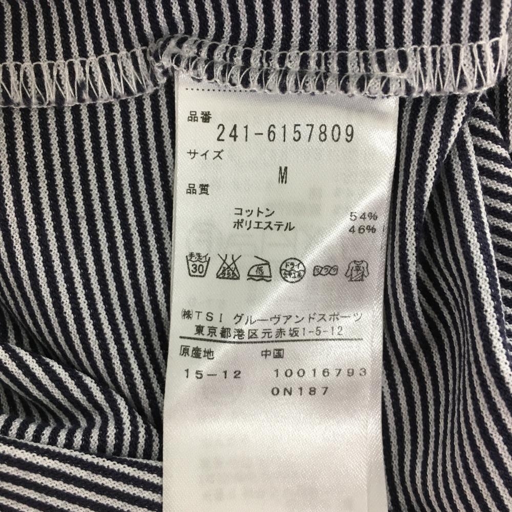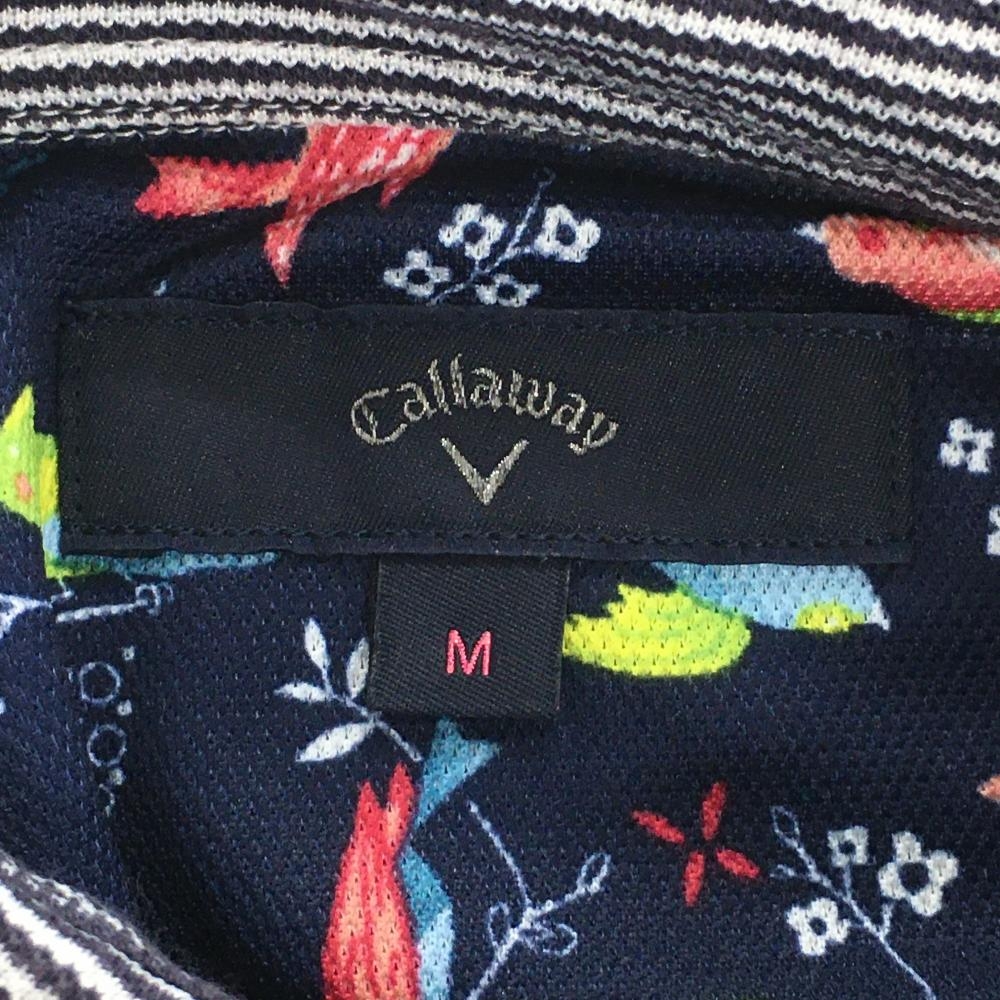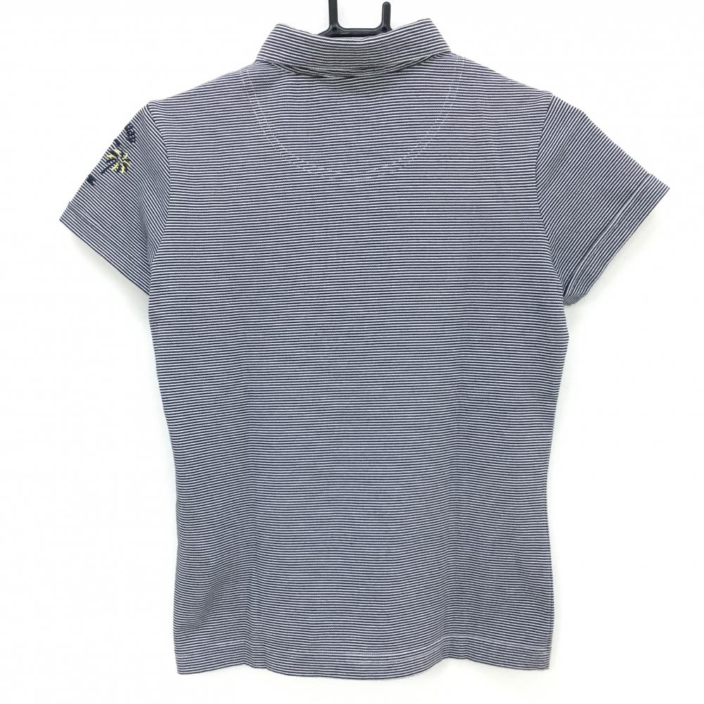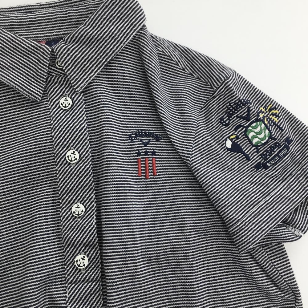 【超美品】キャロウェイ 半袖ポロシャツ ネイビー×白 細ボーダー ロゴ刺しゅう レディース M ゴルフウェア Callaway