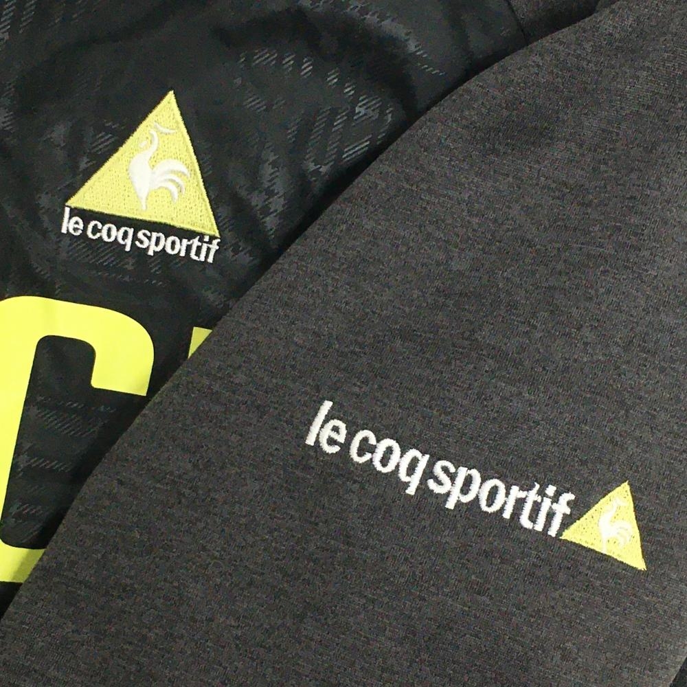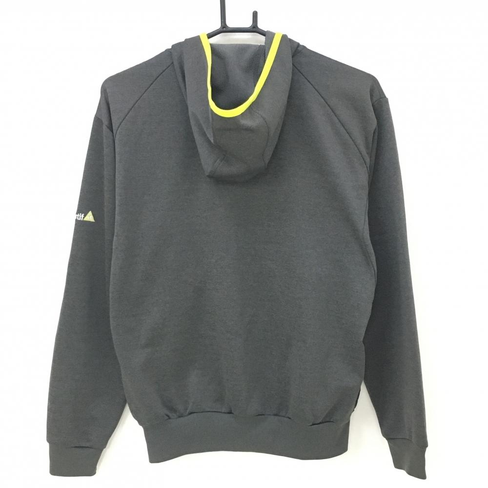 【美品】ルコックゴルフ 切替ジップパーカー グレー×イエロー 前身頃チェック地模様 裏微起毛 メンズ M ゴルフウェア le coq sportif