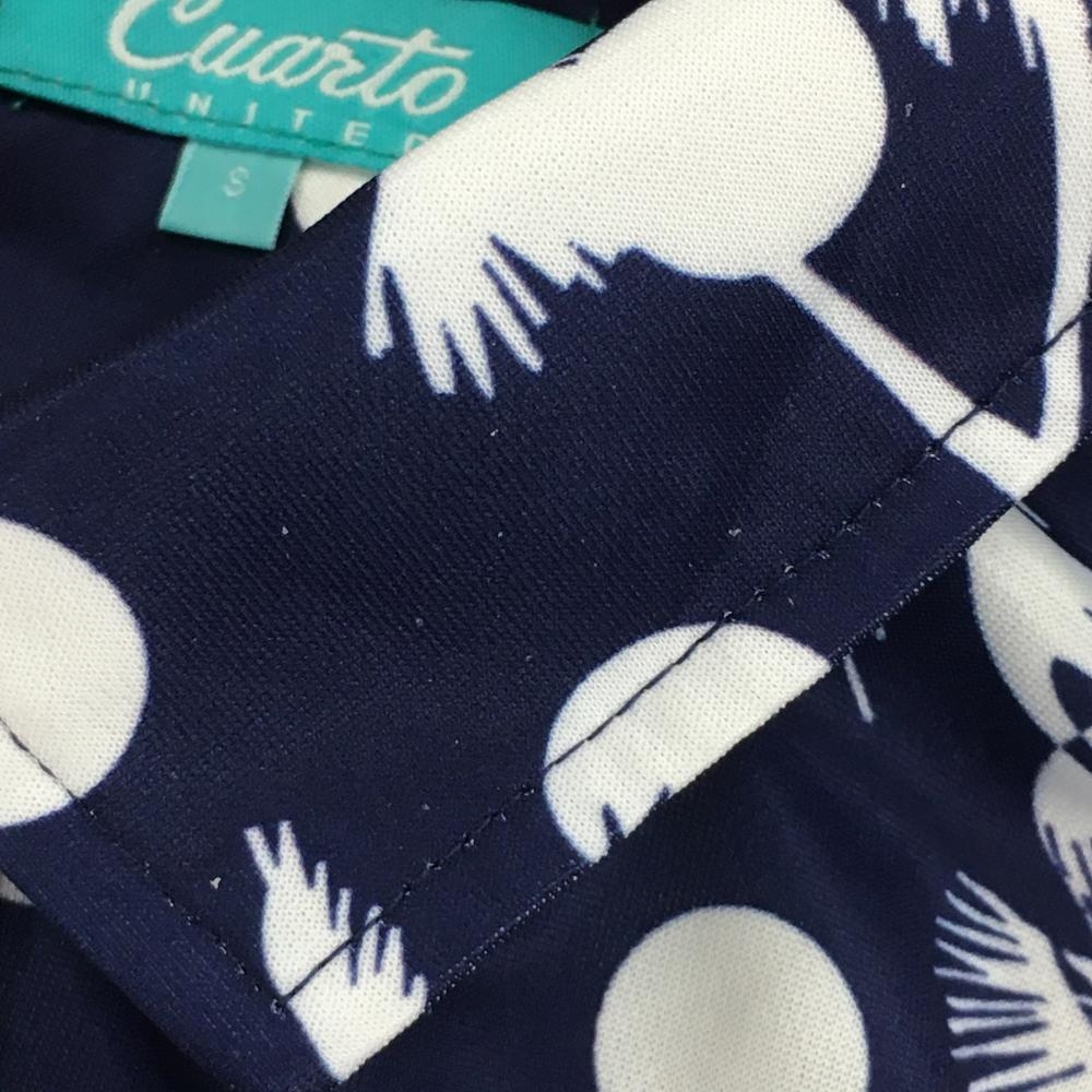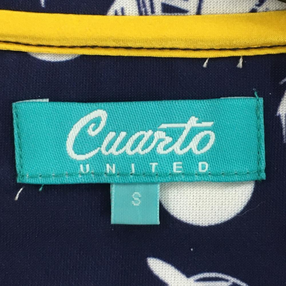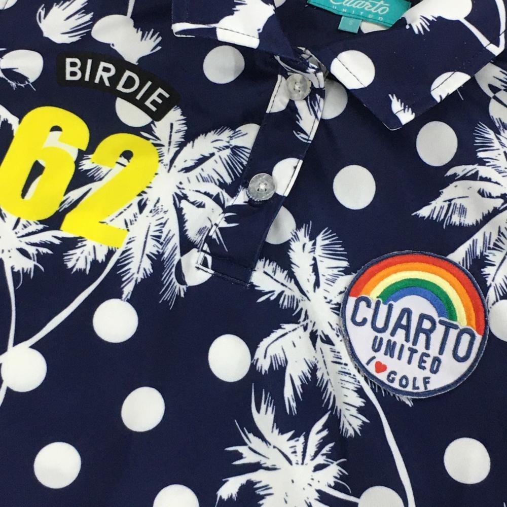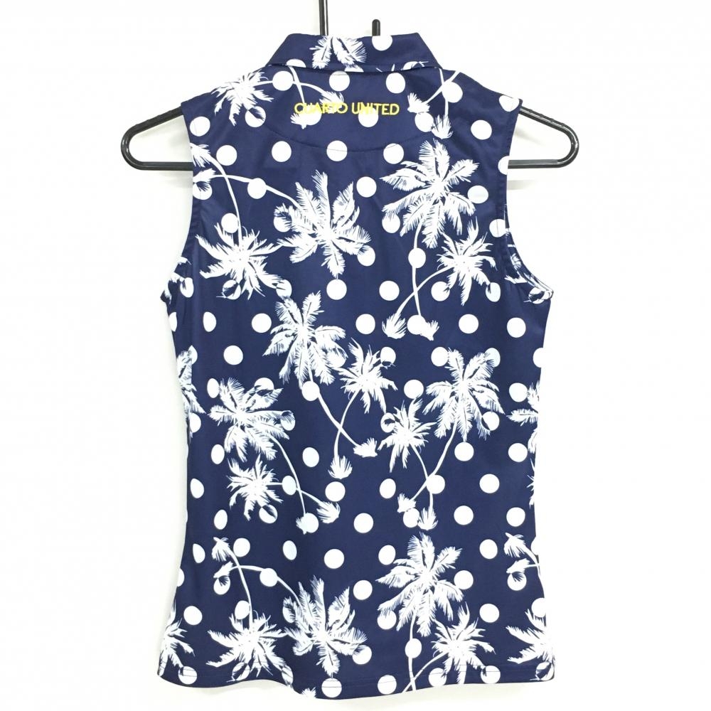 【超美品】クアルトユナイテッド ノースリーブポロシャツ ネイビー×白 ヤシの木 ドット レディース S ゴルフウェア CUARTO UNITED