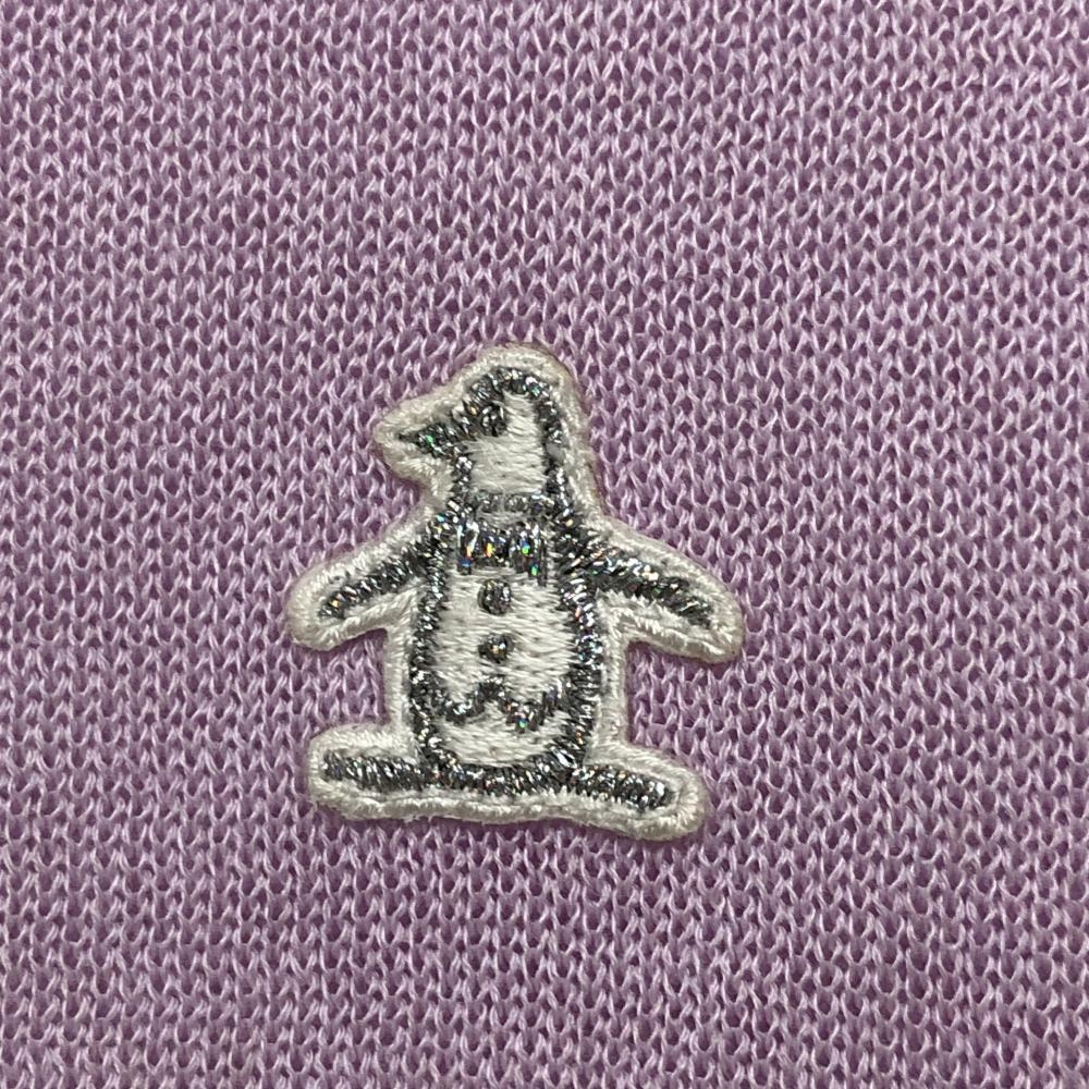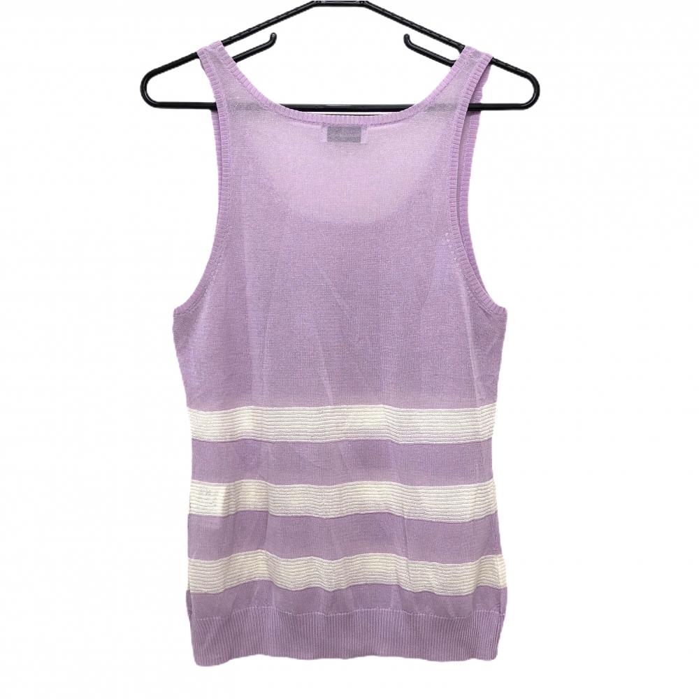 マンシングウェア ニットベスト ライトパープル×白 一部ボーダー ロゴワッペン レディース M ゴルフウェア Munsingwear