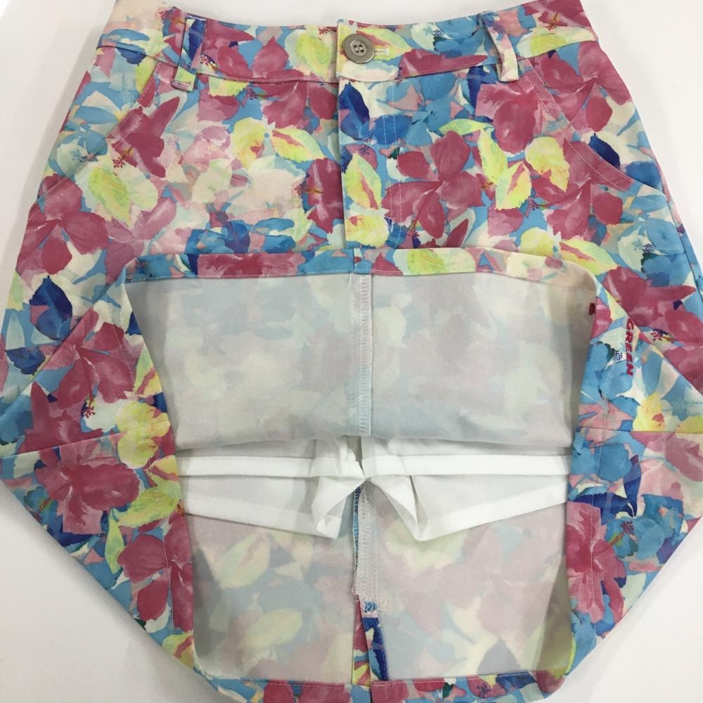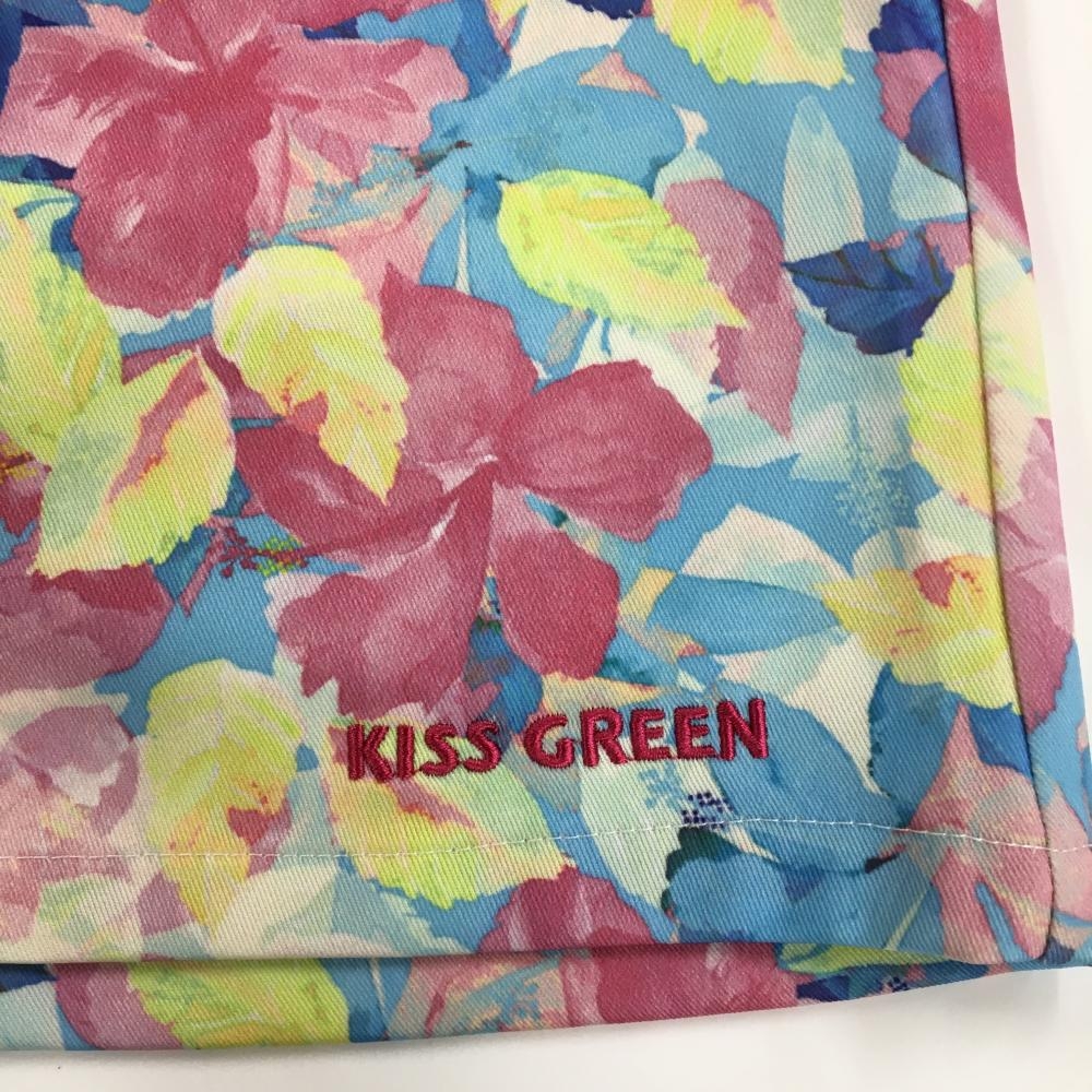 【美品】キスオンザグリーン スカート ピンク×ライトブルー ハイビスカス柄 花柄 レディース 2(M) ゴルフウェア kiss on the green