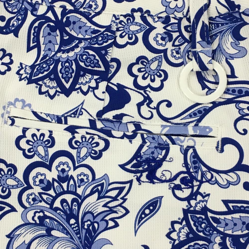 【超美品】ダンスウィズドラゴン キュロットスカート ブルー×白 ペイズリー レディース 2(M) ゴルフウェア Dance With Dragon