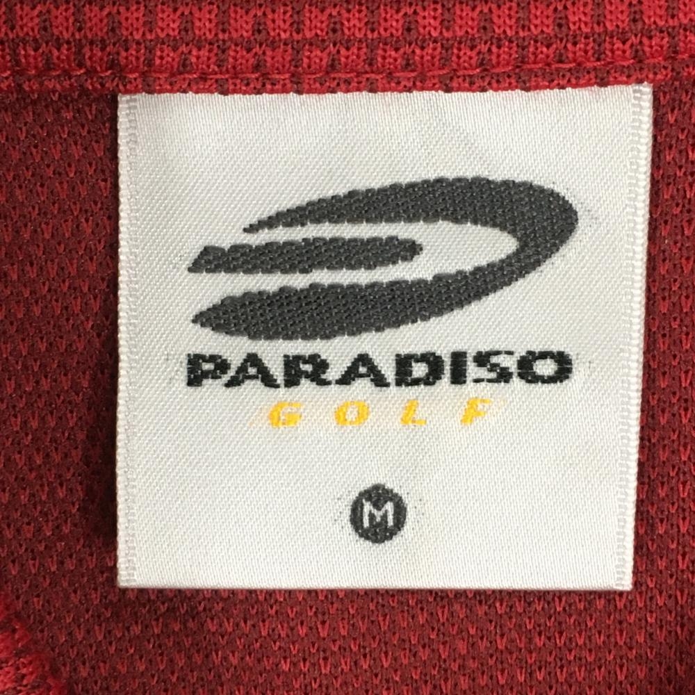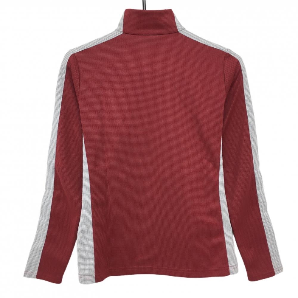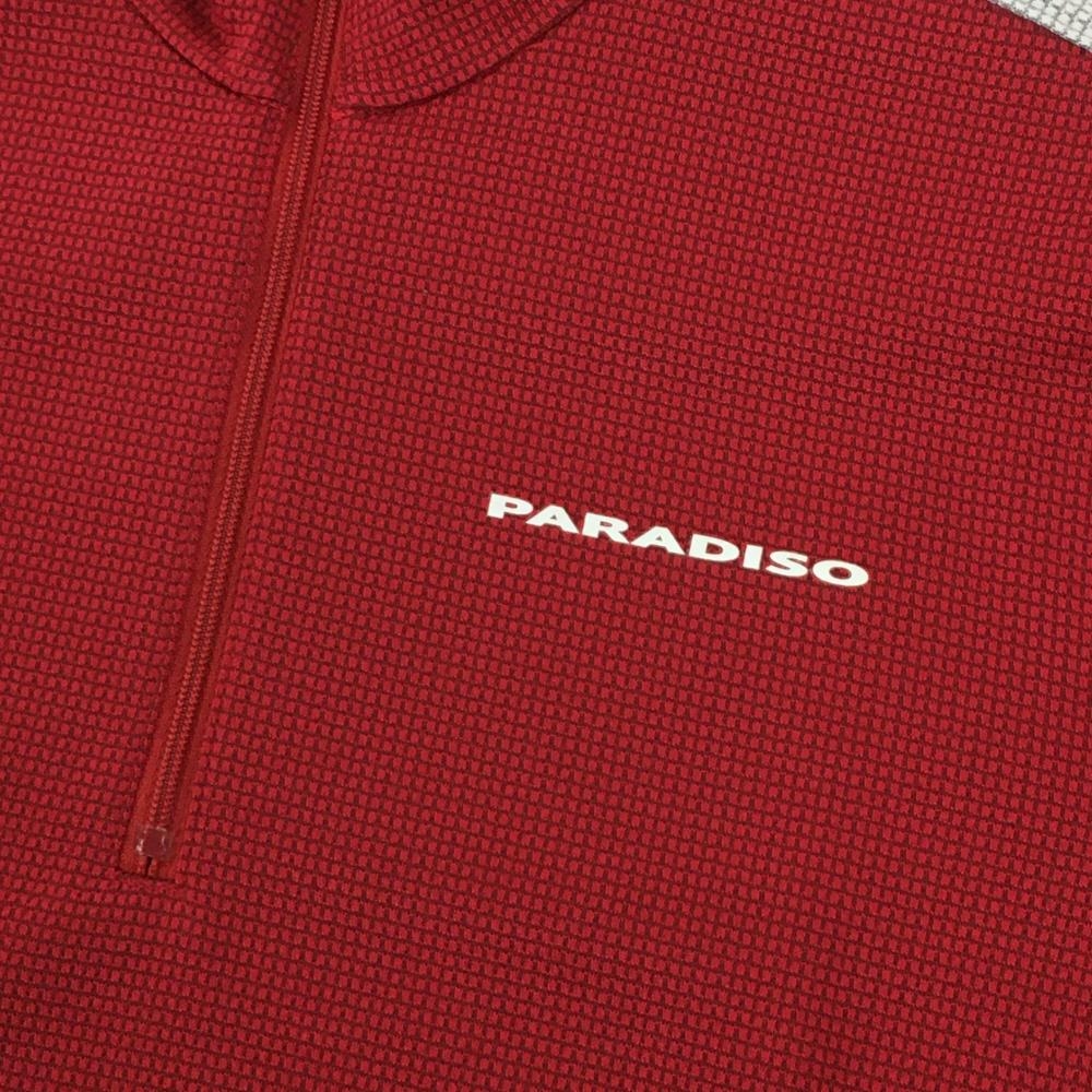 【超美品】パラディーゾ 長袖ハイネックシャツ レッド×グレー 織生地 ハーフジップ レディース M ゴルフウェア Paradiso