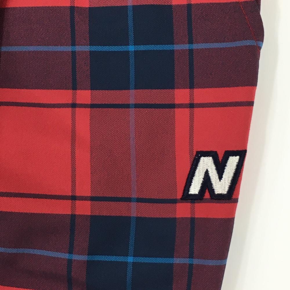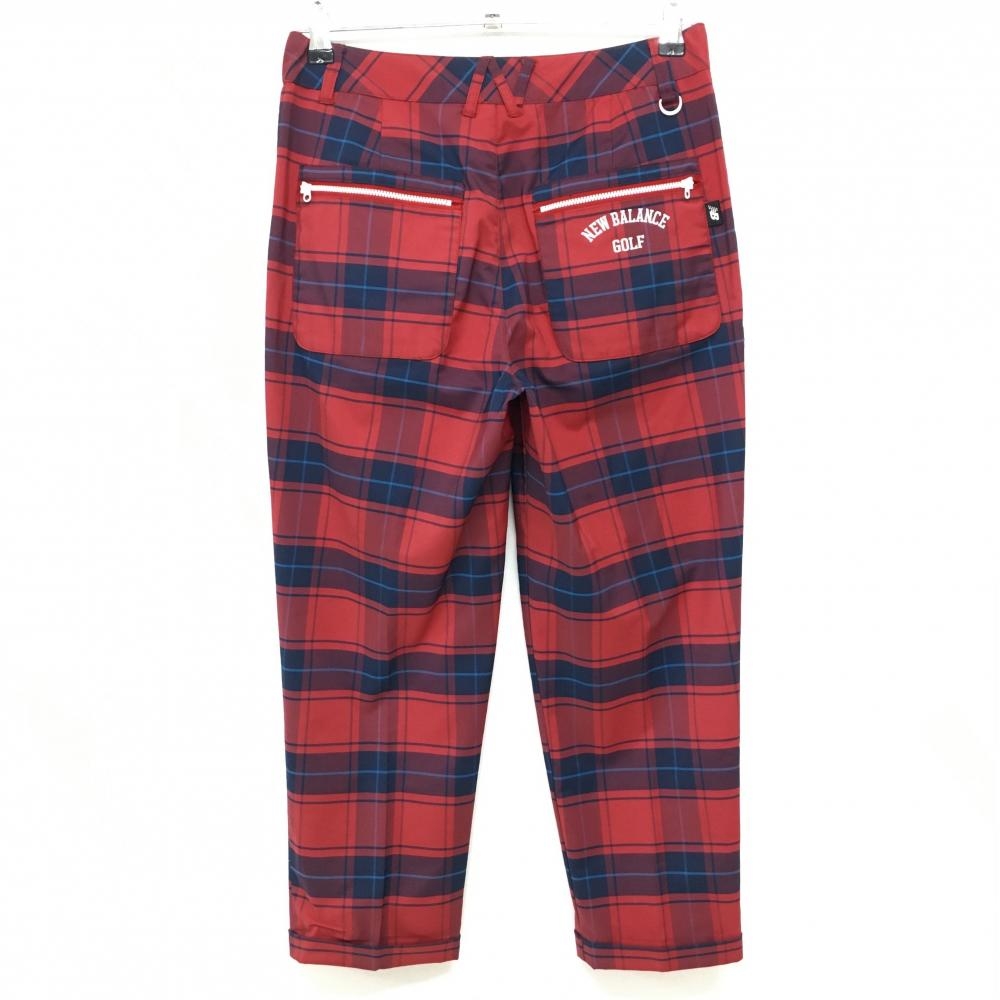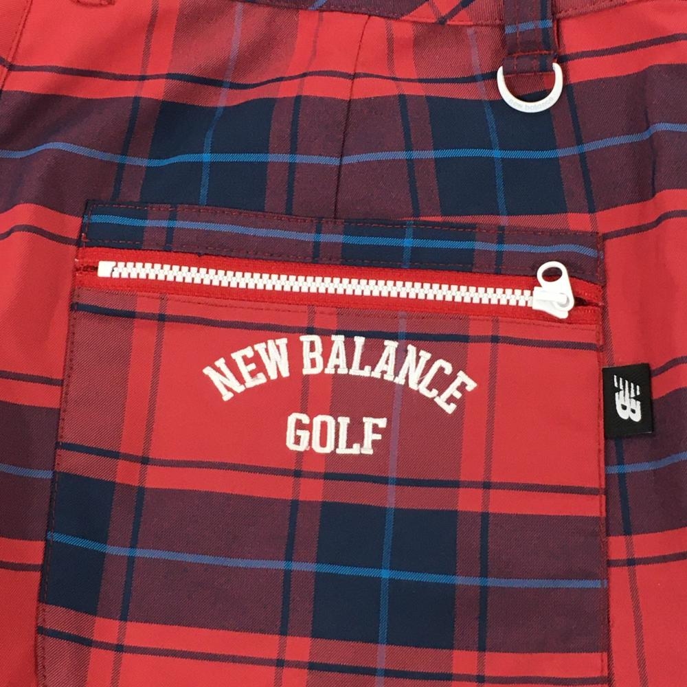 ニューバランス 七分丈パンツ レッド×ネイビー チェック ストレッチ ロゴ刺しゅう レディース 1(M) ゴルフウェア New Balance