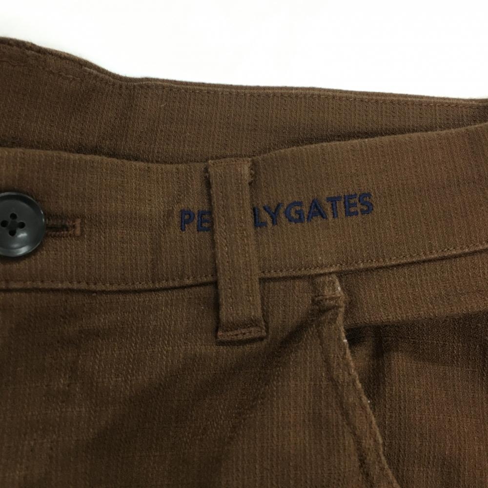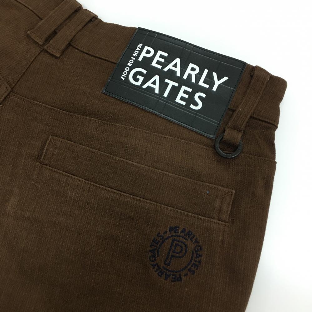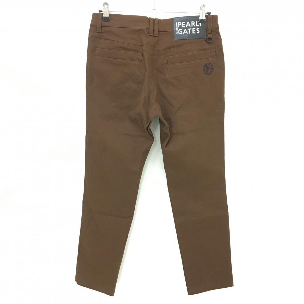 【超美品】パーリーゲイツ パンツ ブラウン 織生地 ストレッチ ロゴネイビー メンズ 4(M) ゴルフウェア 2023年モデル PEARLY GATES