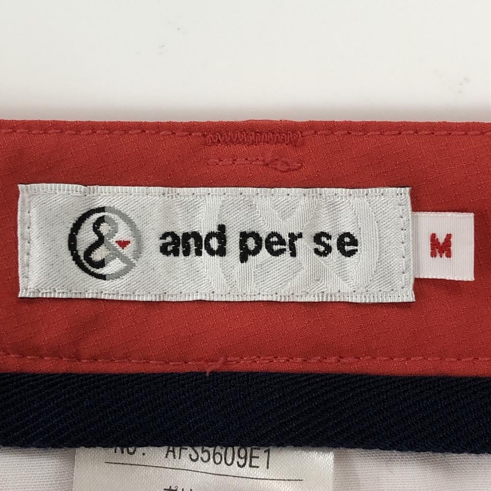 【超美品】アンパスィ ショートパンツ レッド 織生地 ロゴワッペン レディース M ゴルフウェア and per se