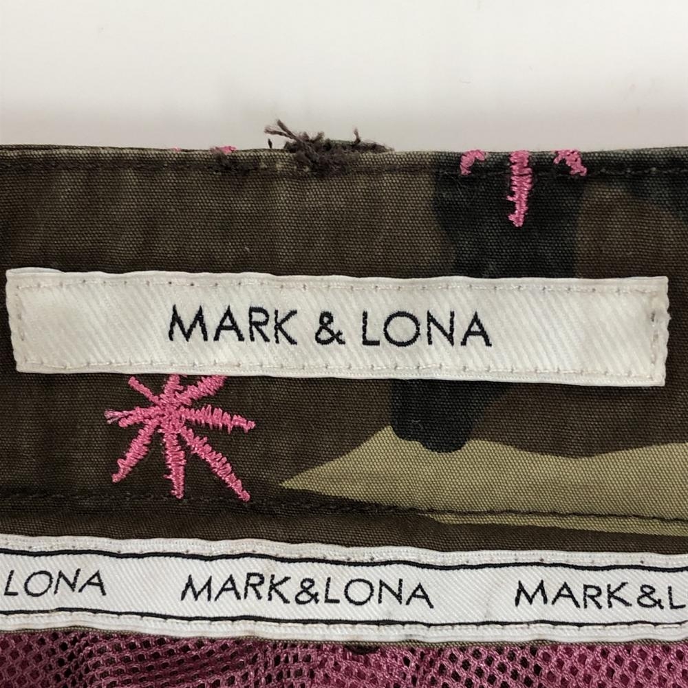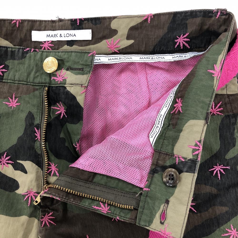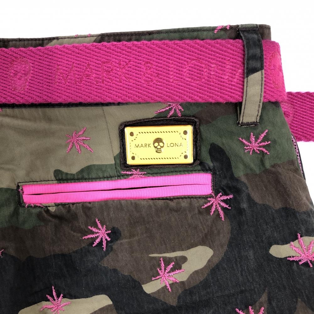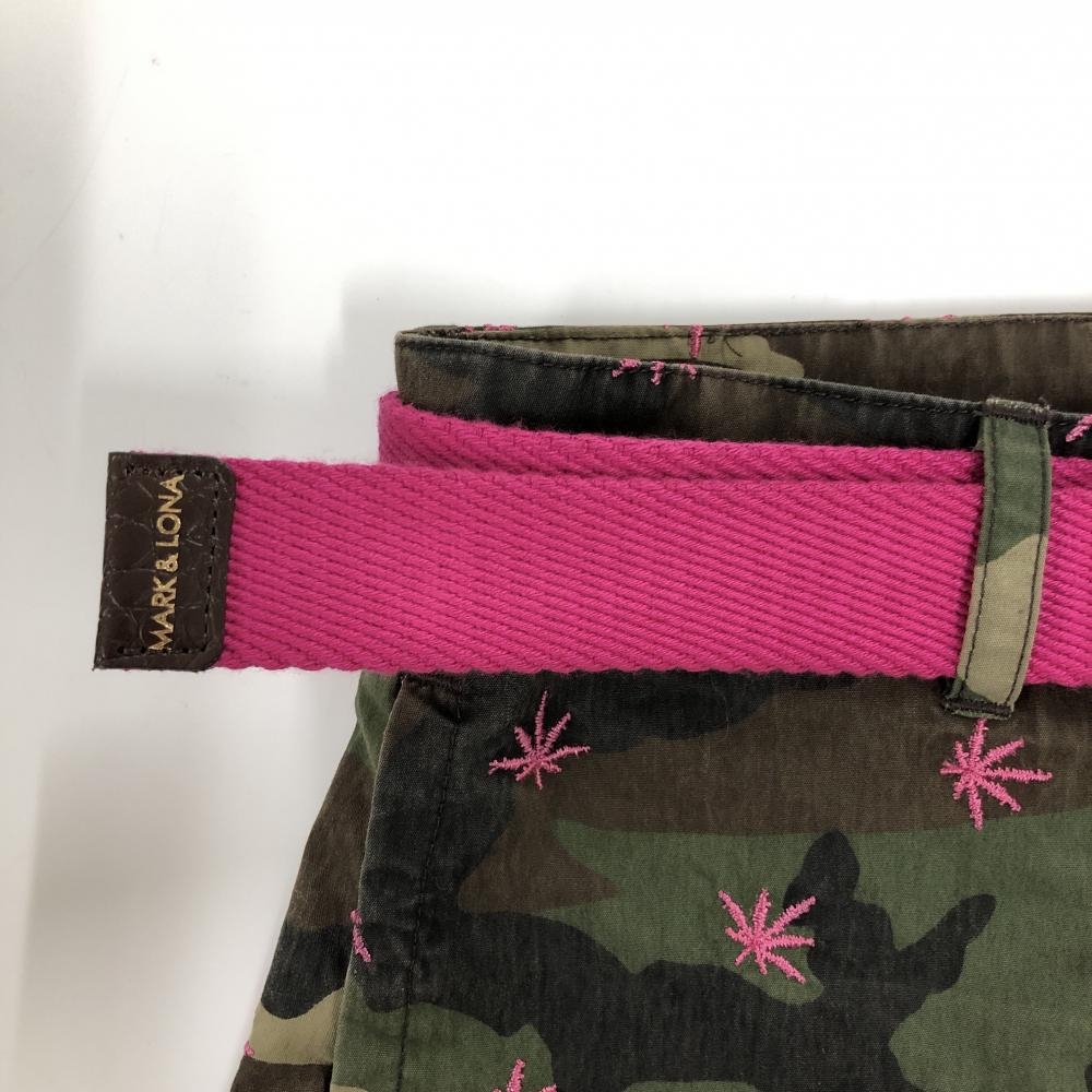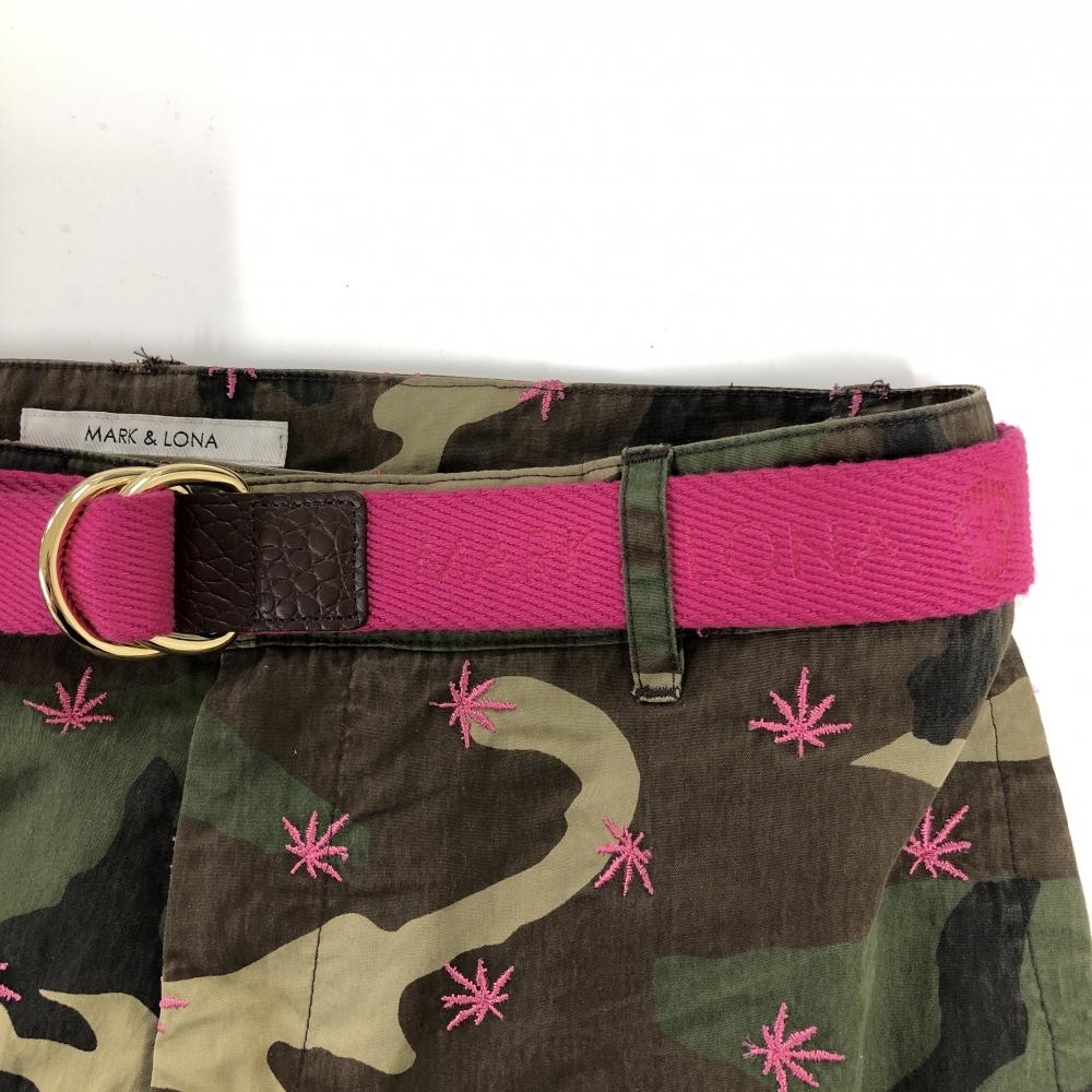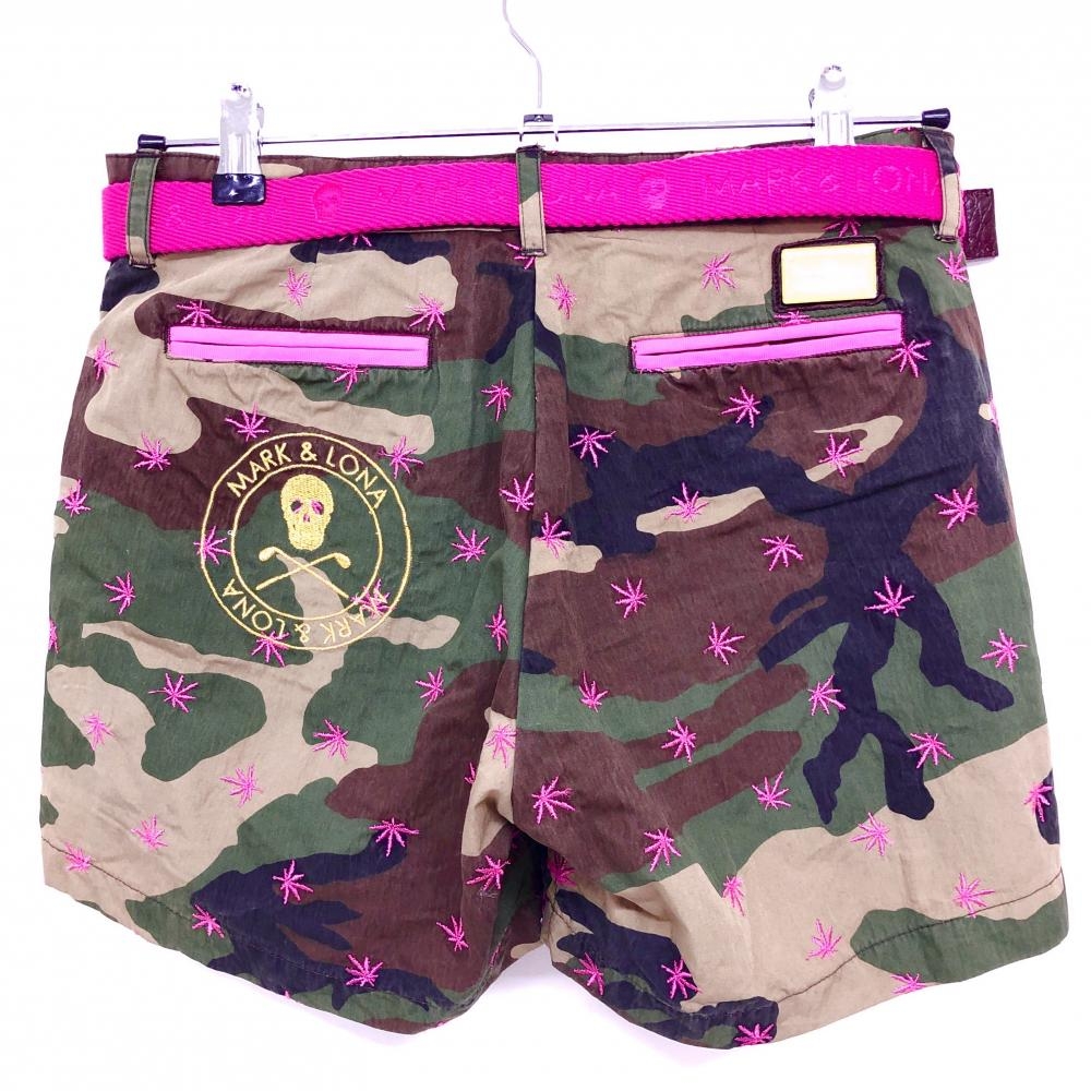 マークアンドロナ ショートパンツ ダークグリーン×黒 迷彩 カモフラ 裏地メッシュ ベルト付 レディース M ゴルフウェア MARK&LONA
