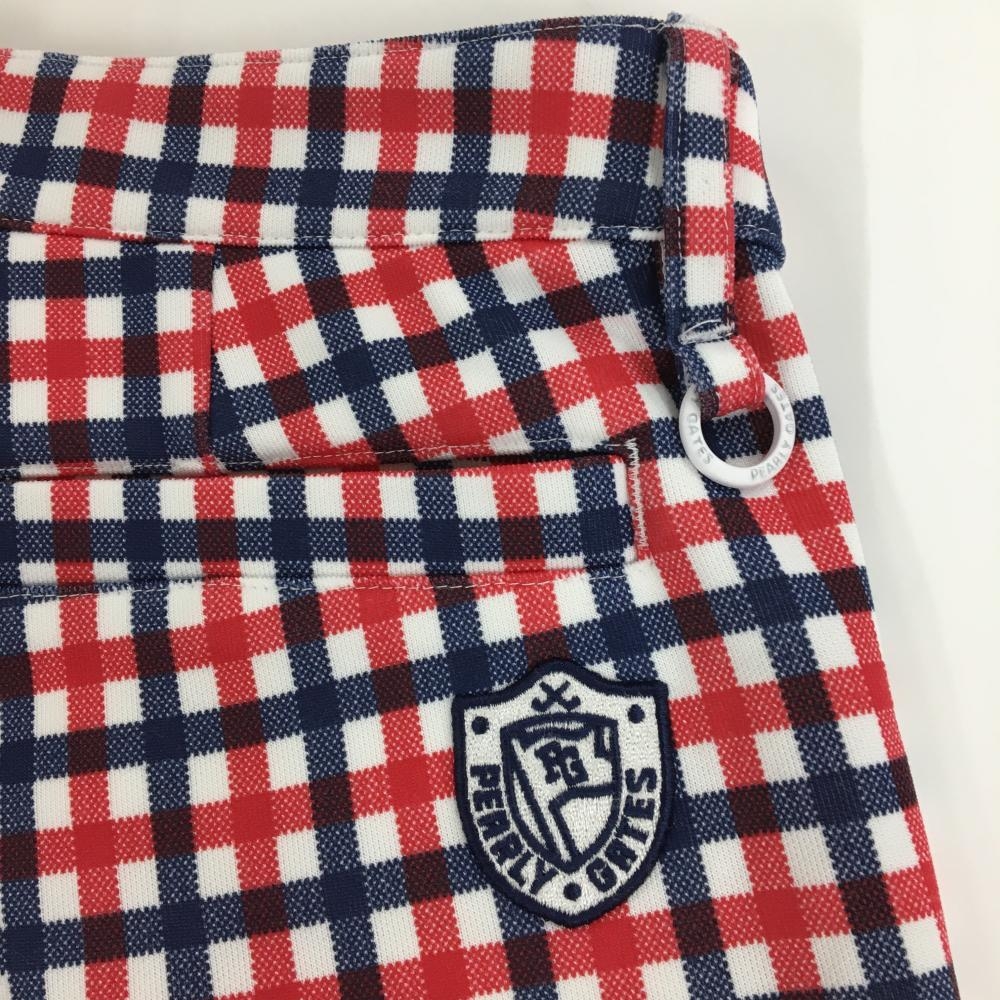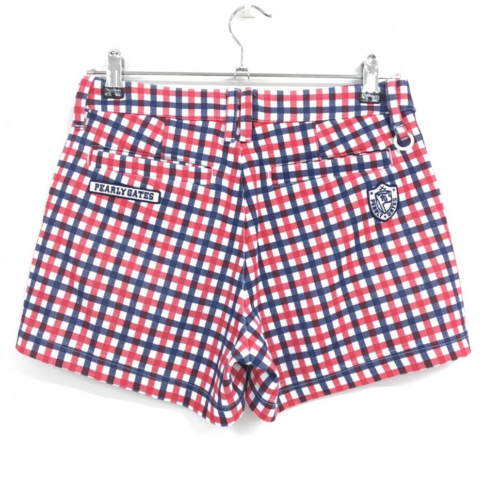【超美品】パーリーゲイツ ショートパンツ レッド×ネイビー チェック コットン混 日本製 レディース 0(S) ゴルフウェア PEARLY GATES