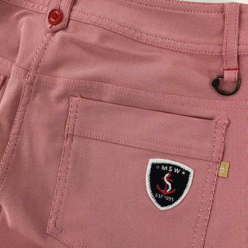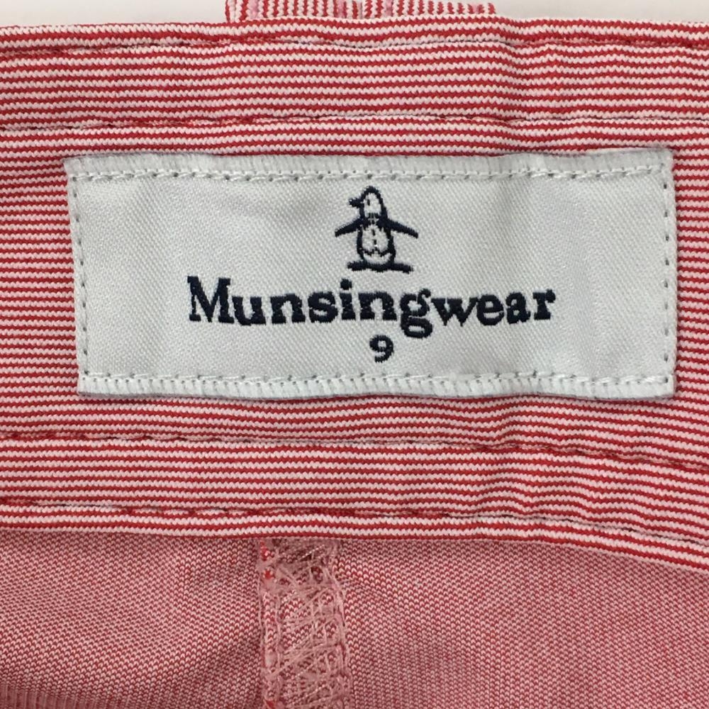 【超美品】マンシングウェア 半端丈パンツ レッド×白 ストライプ ストレッチ レディース 9 ゴルフウェア Munsingwear