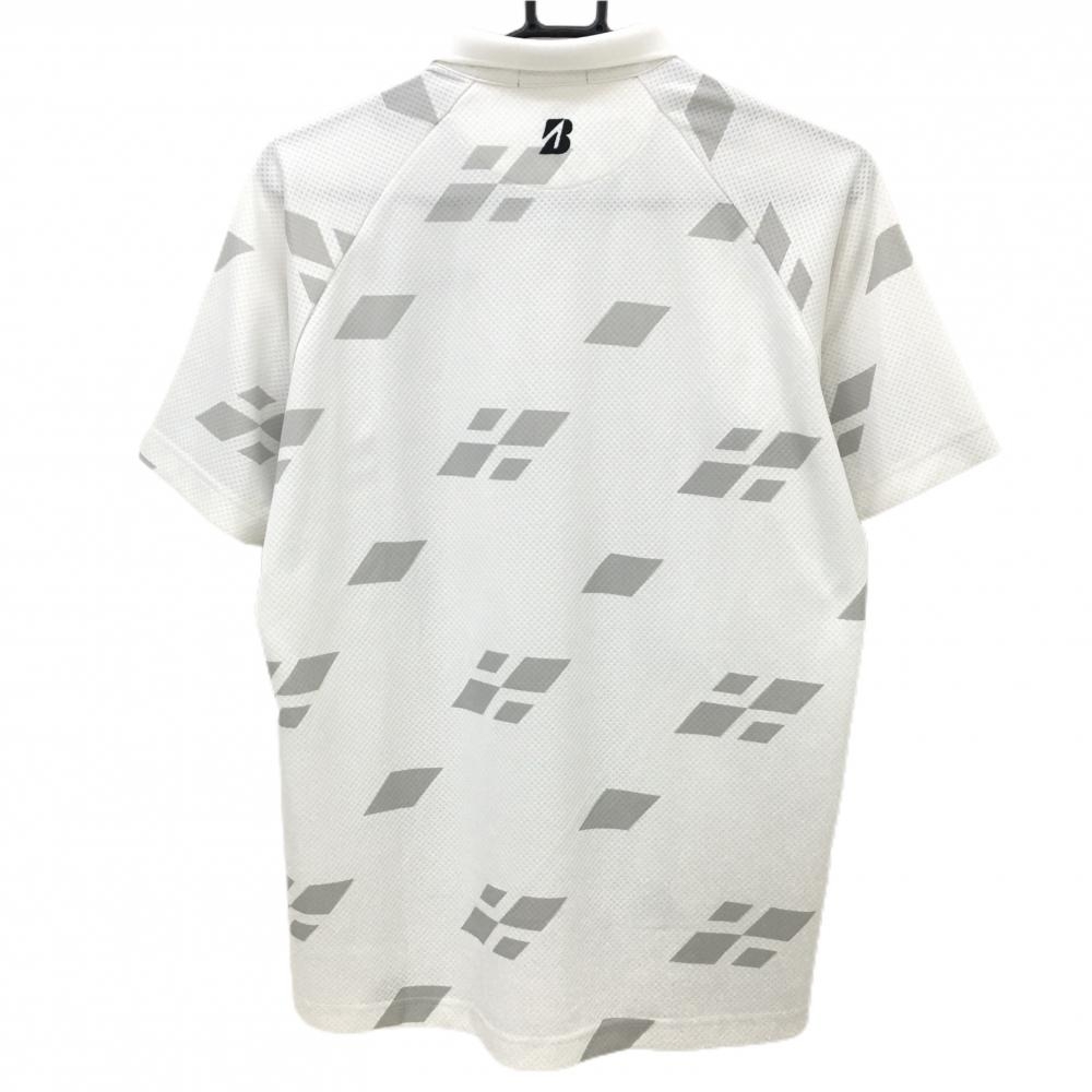 ブリヂストンTOURB 半袖ポロシャツ 白×グレー 総柄 織生地 メンズ M ゴルフウェア Bridgestone
