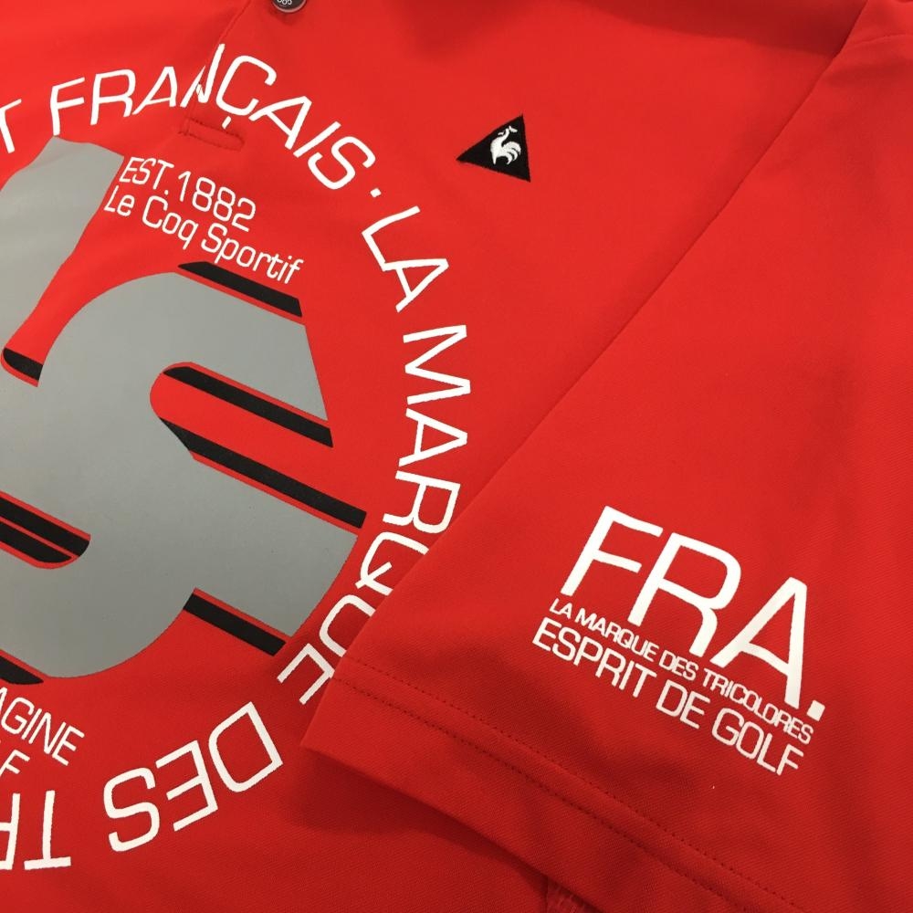 【超美品】ルコックゴルフ 半袖ポロシャツ レッド×白 ロゴ刺しゅう 袖下メッシュ メンズ LL ゴルフウェア le coq sportif