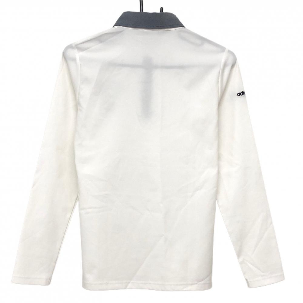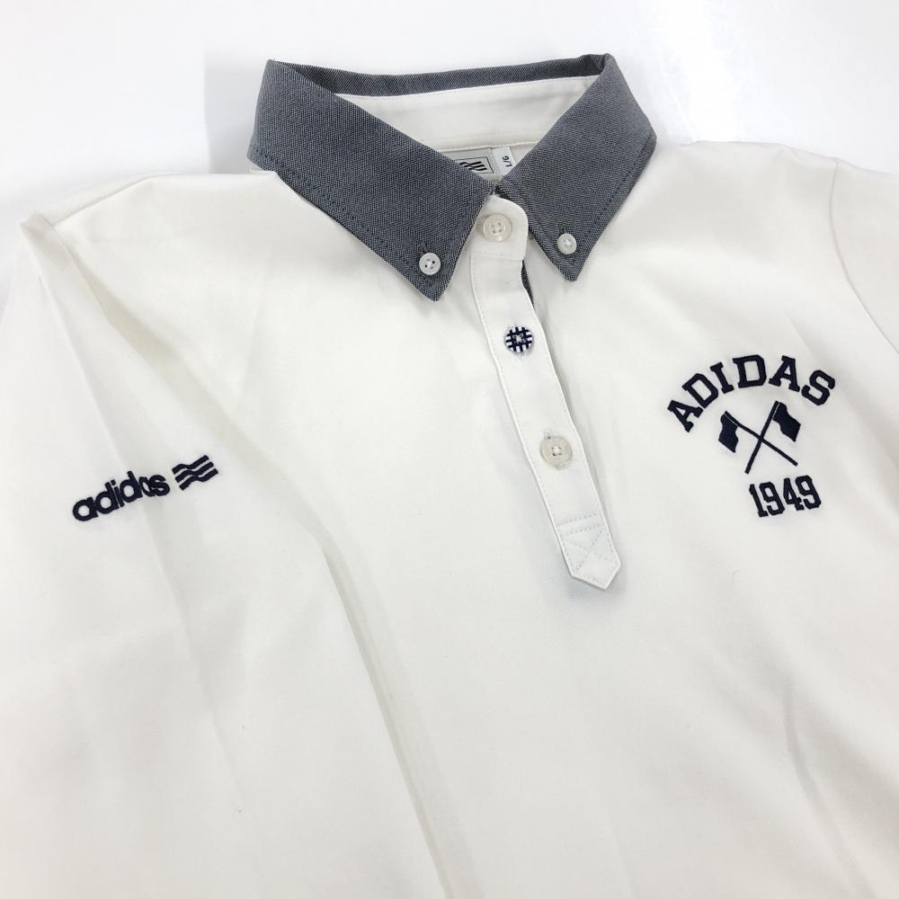【美品】アディダス 長袖ポロシャツ 白×ネイビー ボタンダウン レディース L/G ゴルフウェア adidas