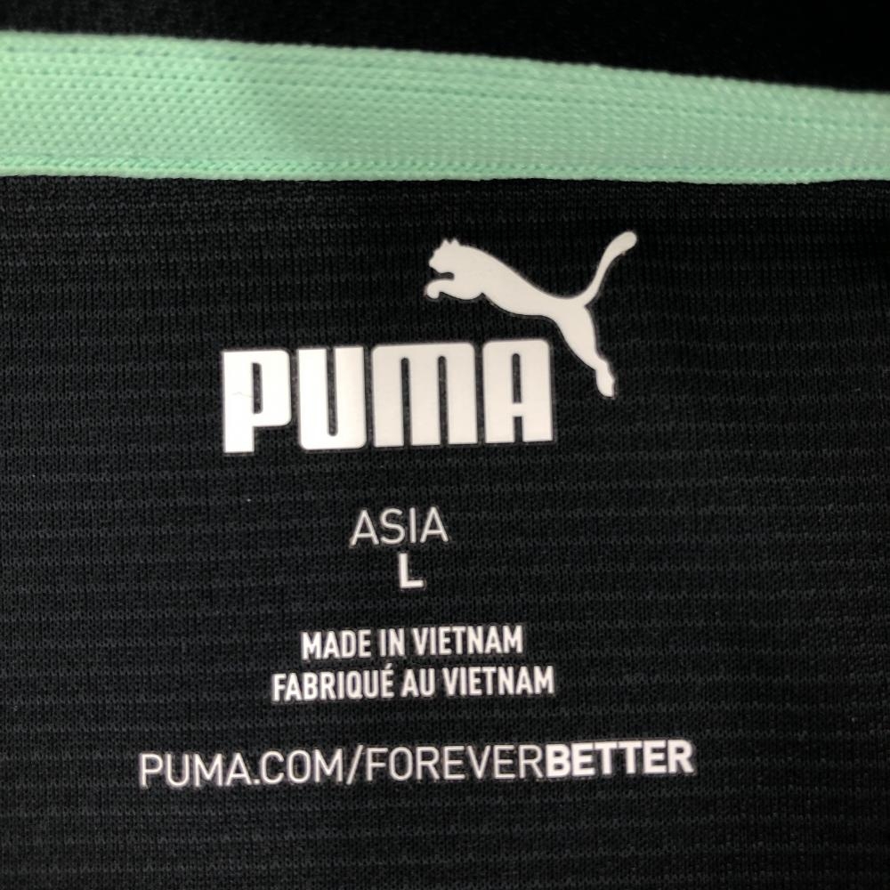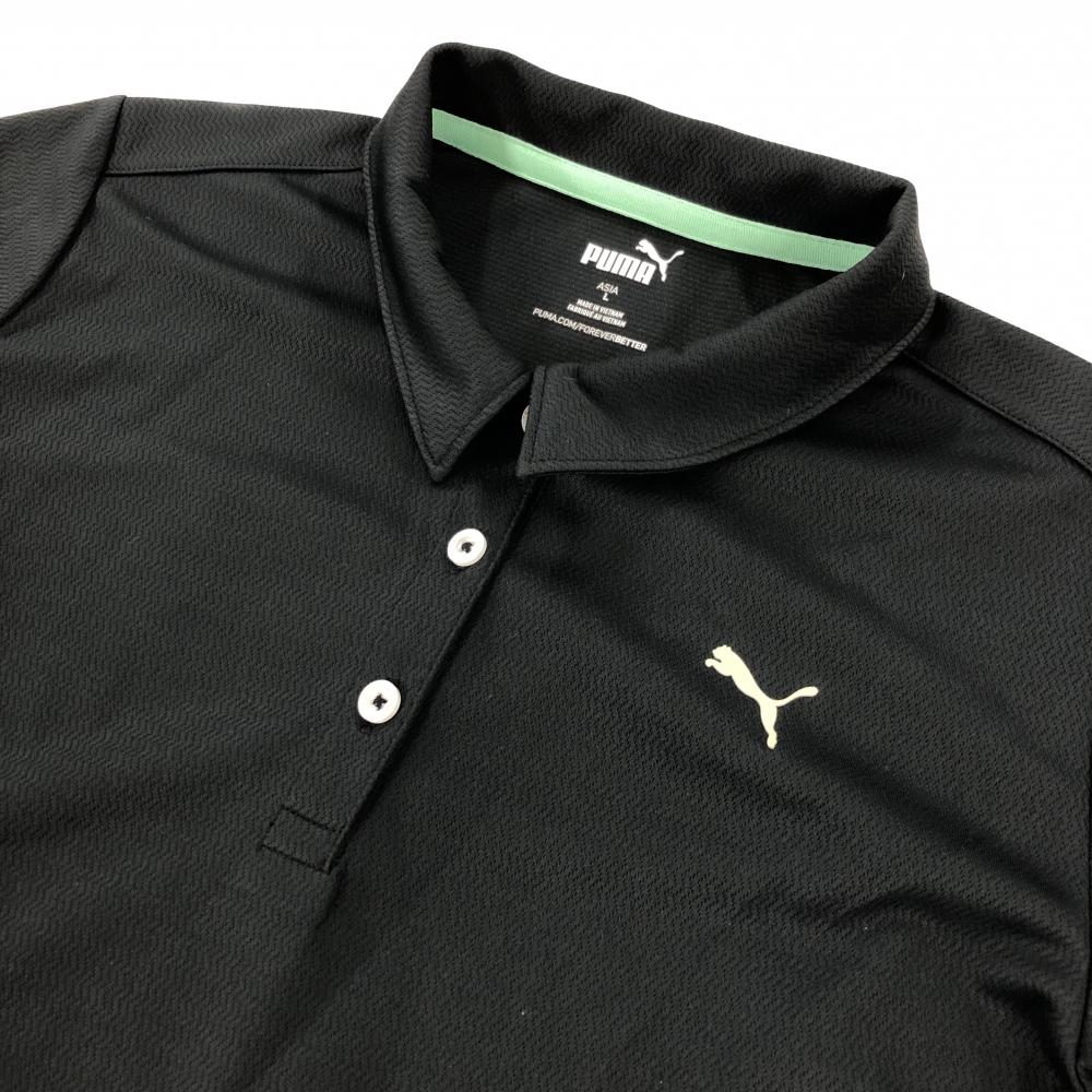 【超美品】プーマ 半袖ポロシャツ 黒 サイドロゴテープ DRYCELL レディース L ゴルフウェア PUMA