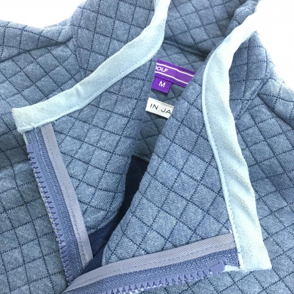ビームスゴルフ アウターベスト ネイビー×ライトブルー キルティング ラメロゴ刺しゅう レディース M ゴルフウェア BEAMS GOLF