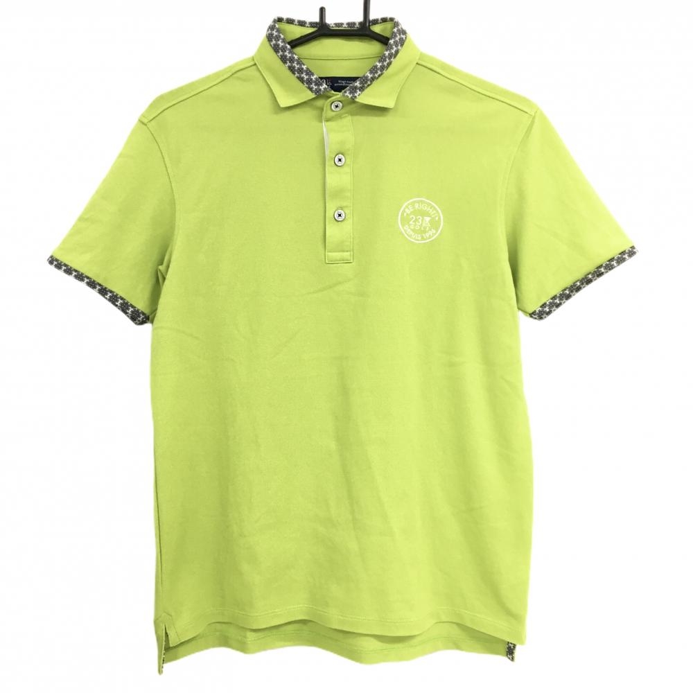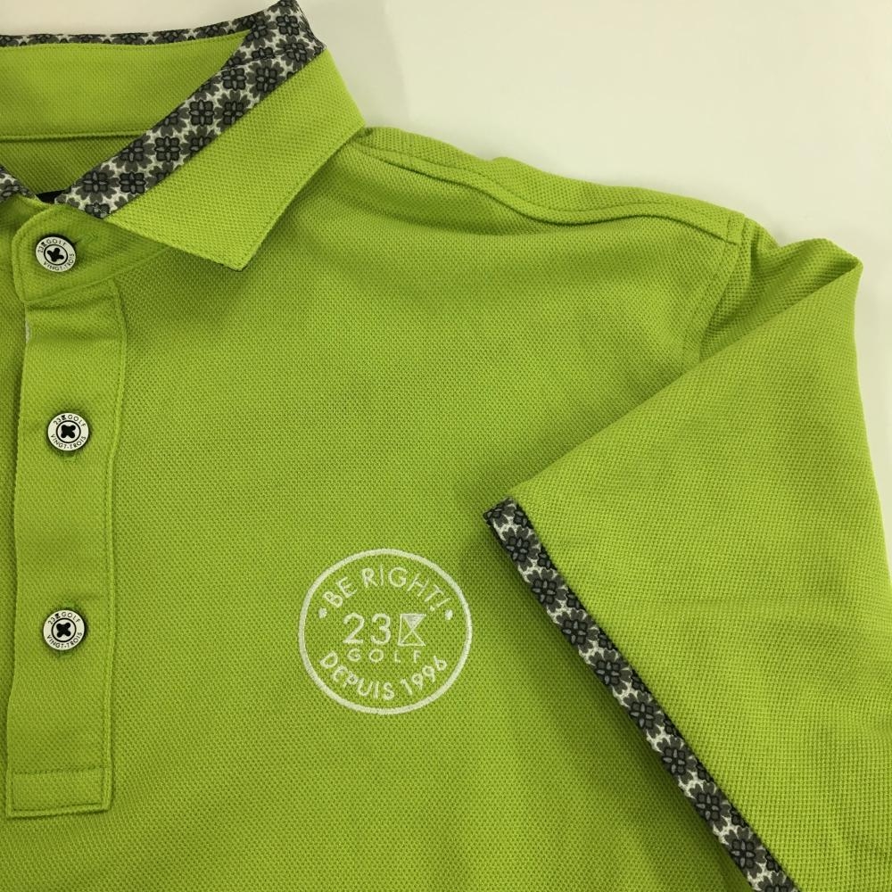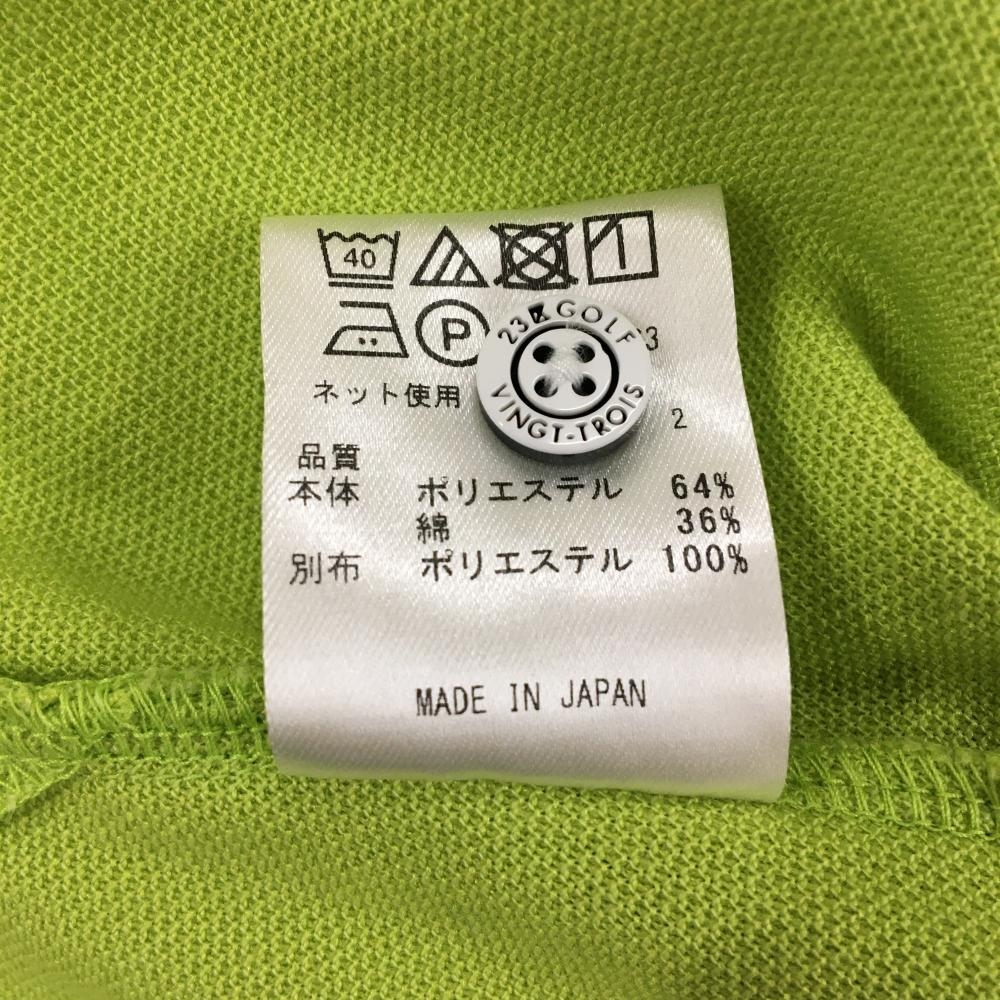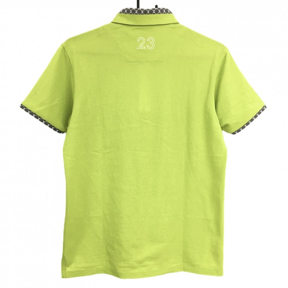 【超美品】23区ゴルフ 半袖ポロシャツ ライトグリーン×グレー 襟袖口一部花柄 メンズ M ゴルフウェア 23区