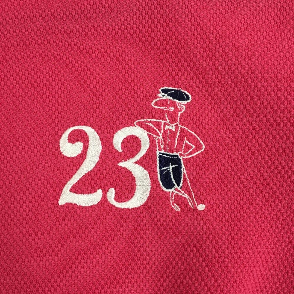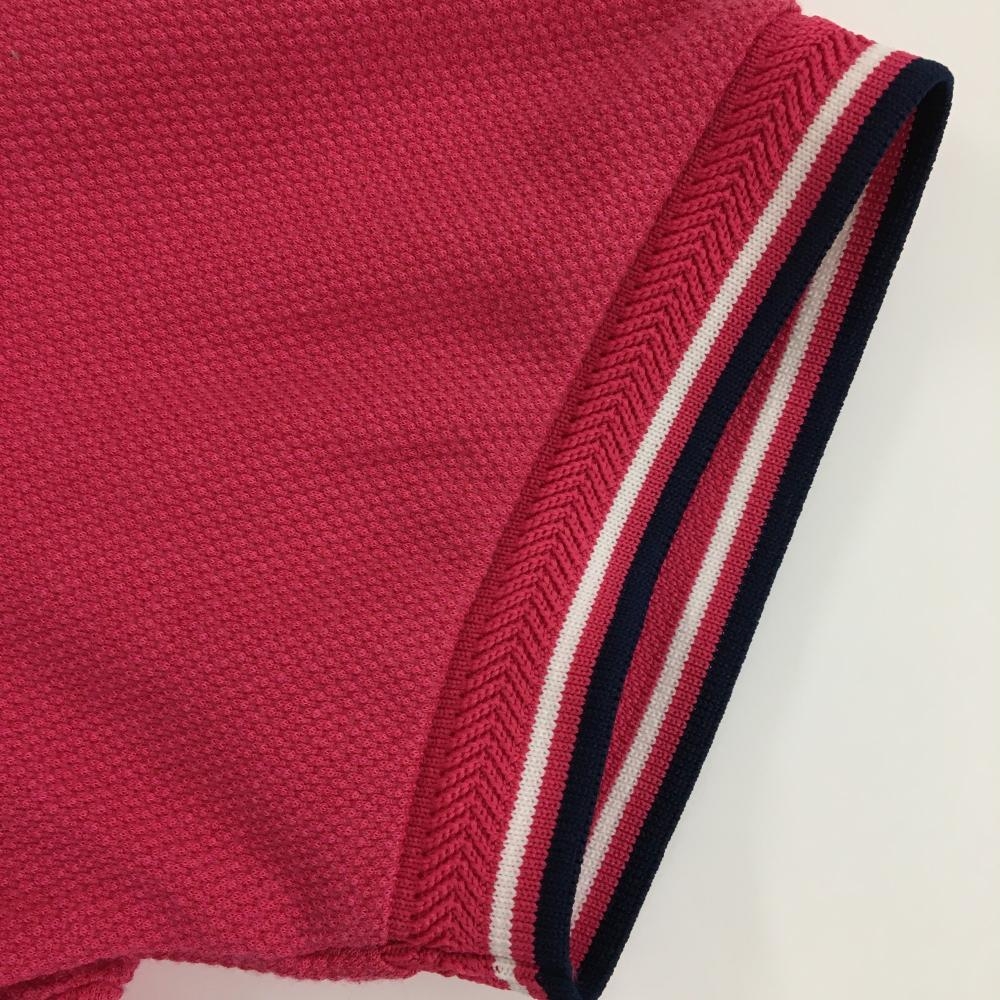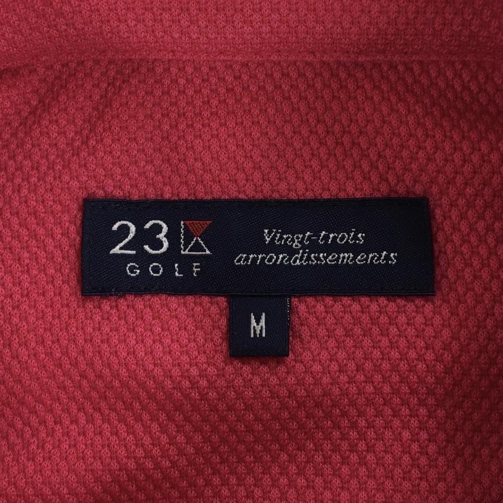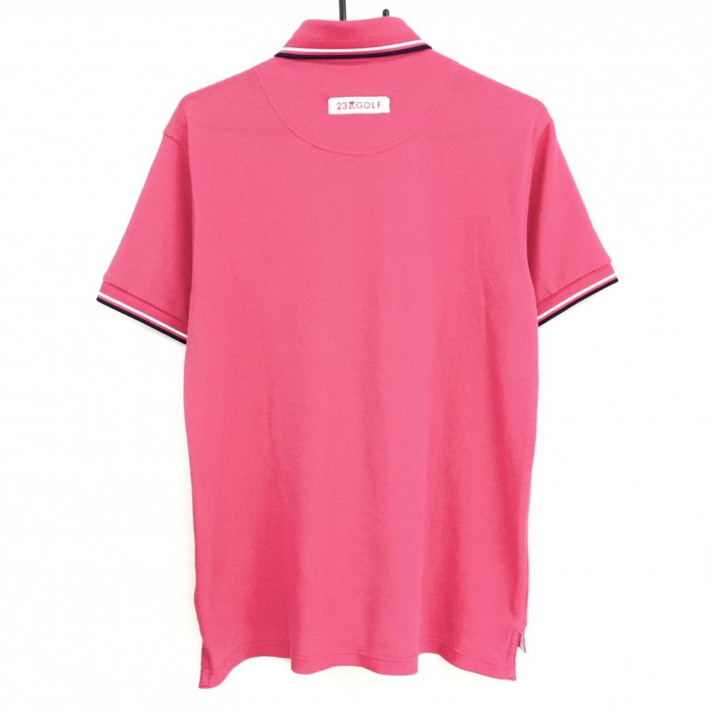 【美品】23区ゴルフ 半袖ポロシャツ ピンク×ネイビー 襟袖口ライン 織生地 メンズ M ゴルフウェア 23区