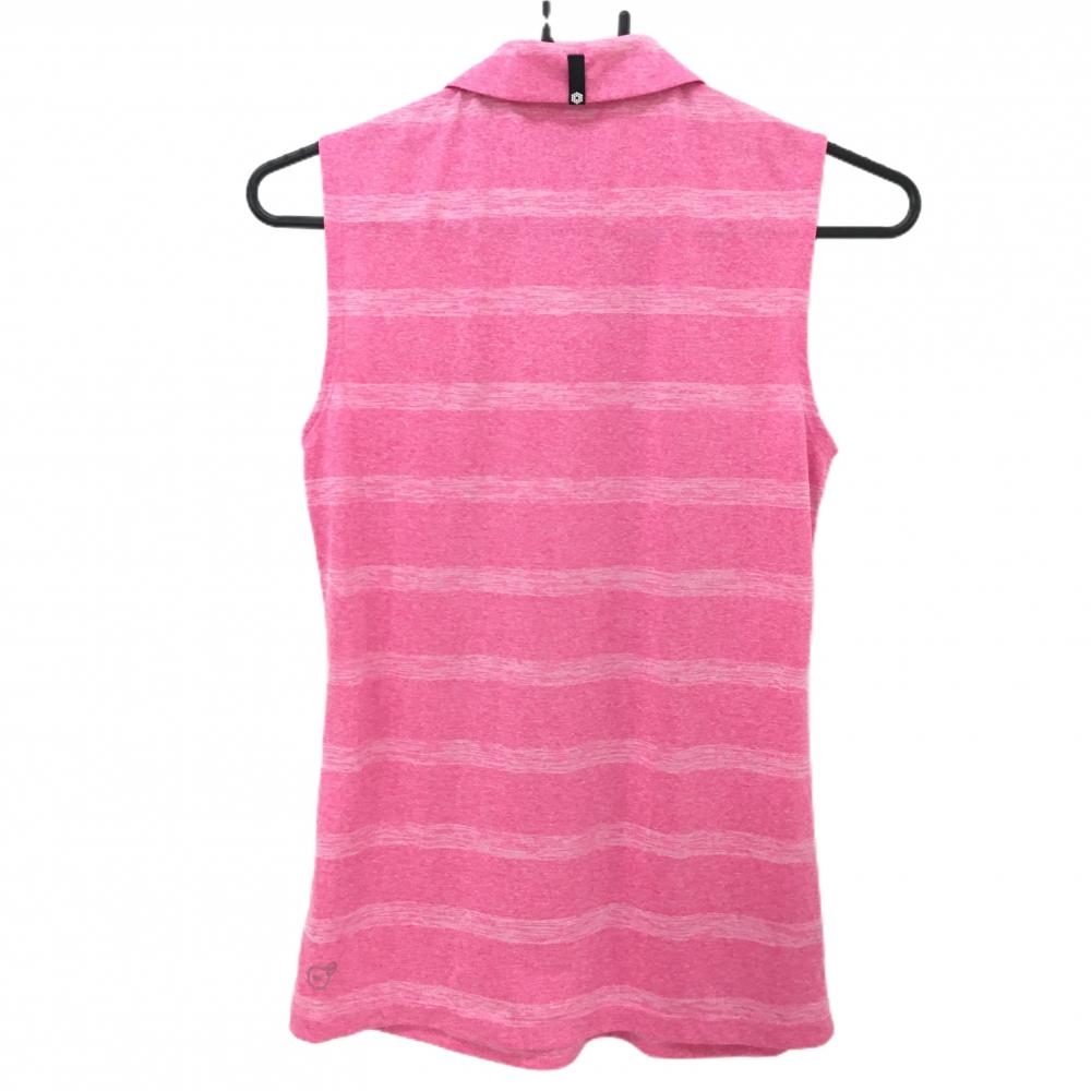 【超美品】プーマ ノースリーブポロシャツ 杢ピンク×白 かすれボーダー Kapolei HAWAII レディース US-XS ゴルフウェア PUMA