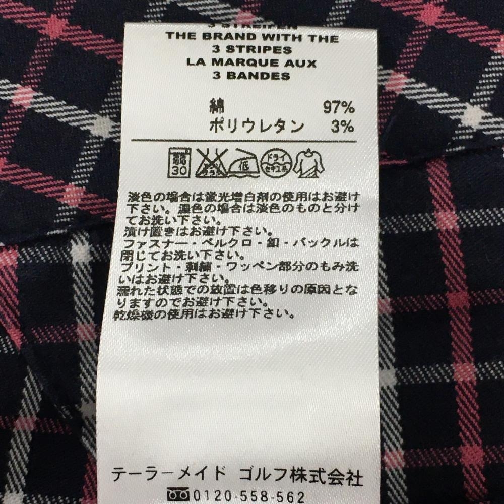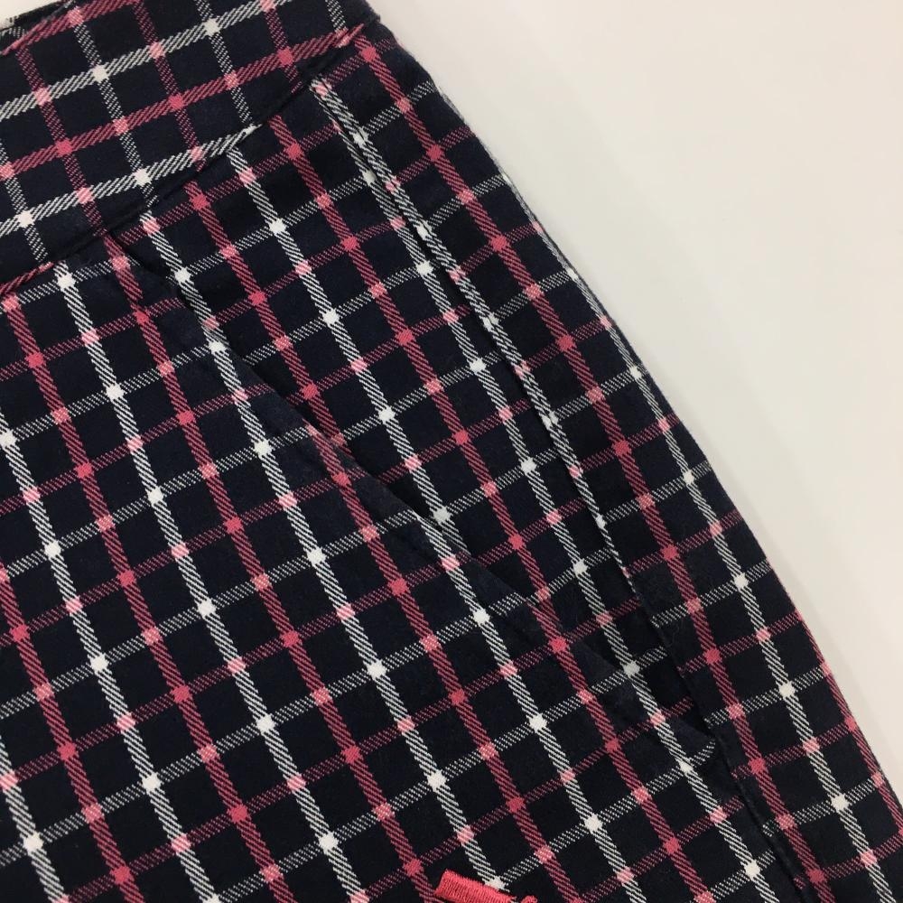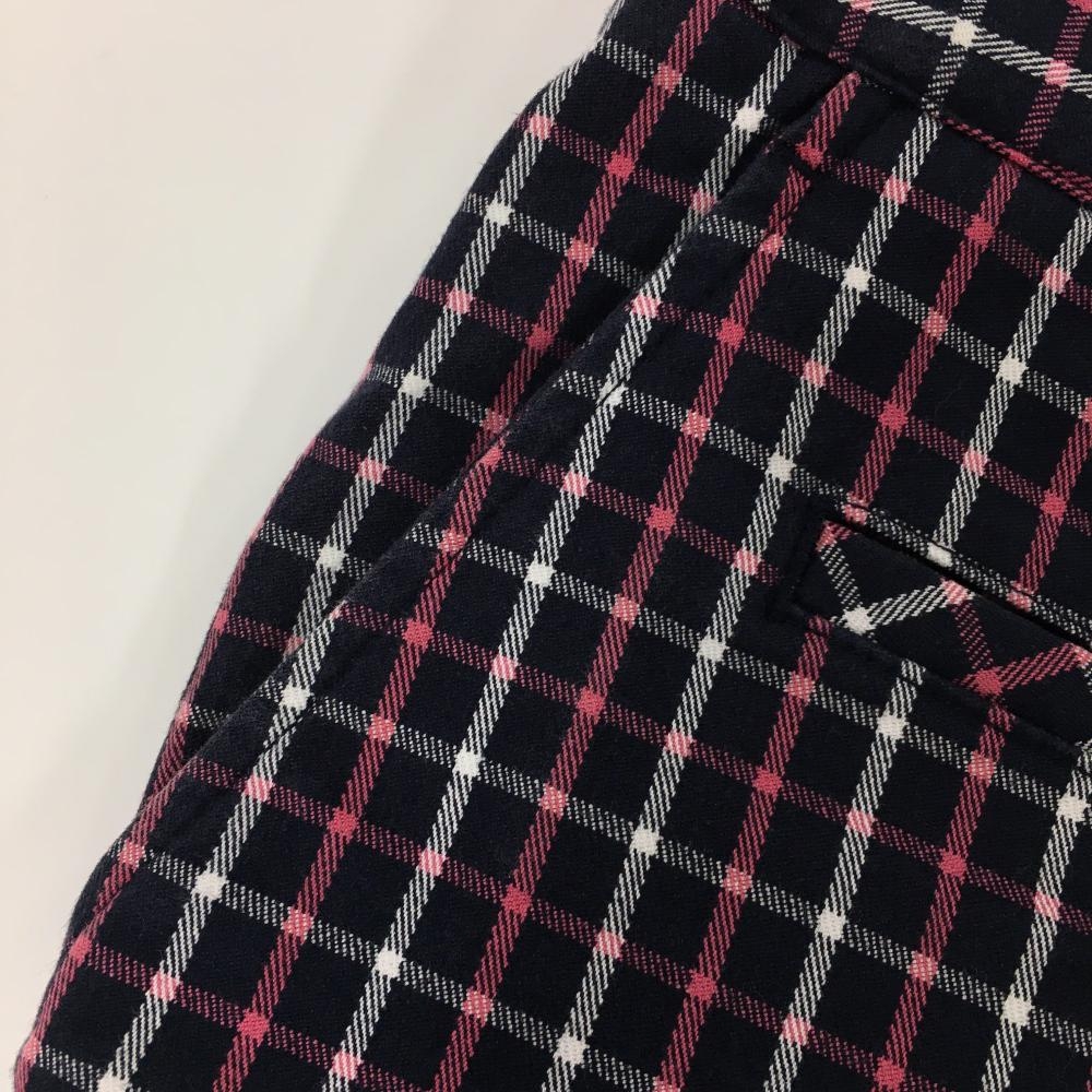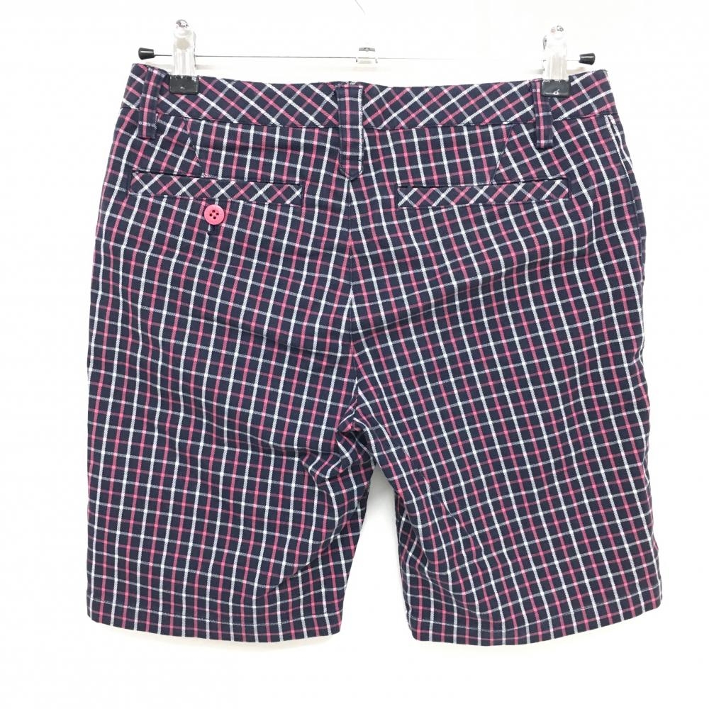 【美品】アディダス ショートパンツ ネイビー×ピンク 格子チェック レディース M/M ゴルフウェア adidas