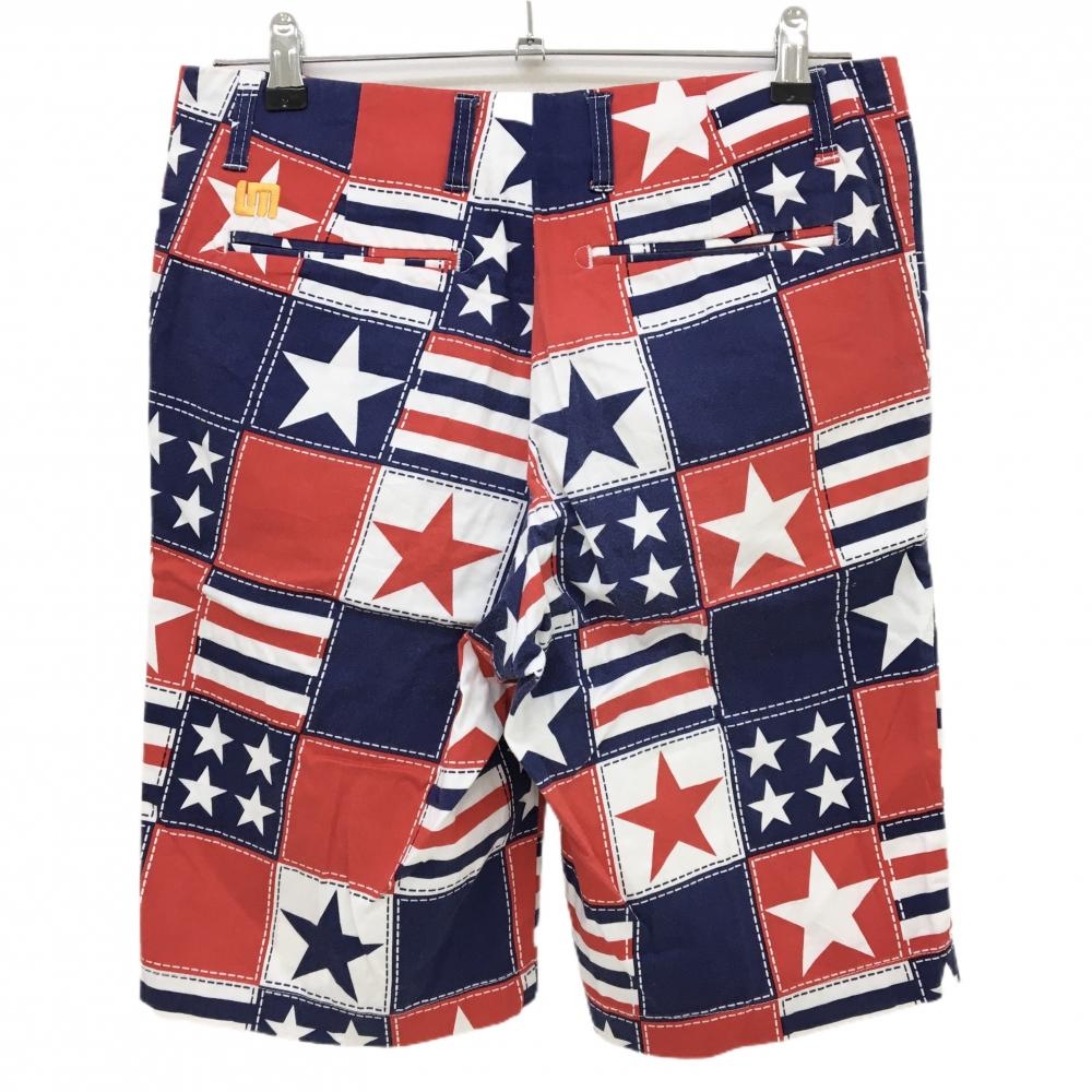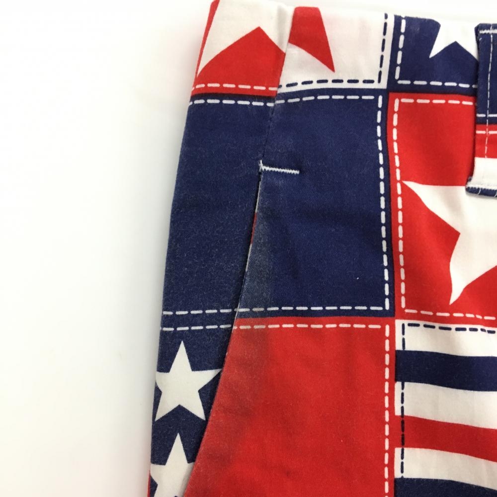 ラウドマウス ハーフパンツ レッド×ネイビー 星柄 ストレッチ メンズ 32 ゴルフウェア LOUDMOUTH
