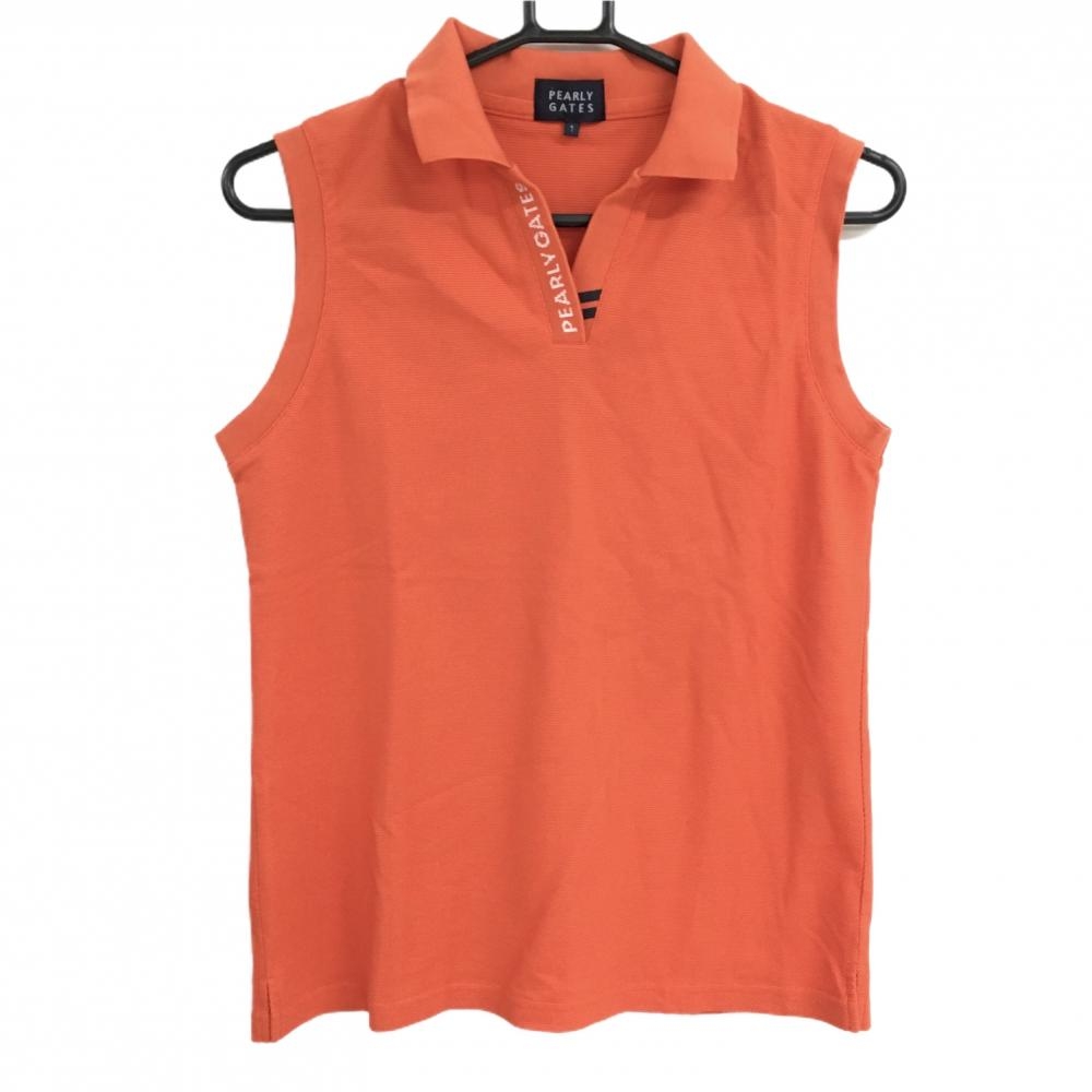 【超美品】パーリーゲイツ ノースリーブスキッパーシャツ オレンジ×白 レディース 1(M) ゴルフウェア 2022年モデル PEARLY GATES