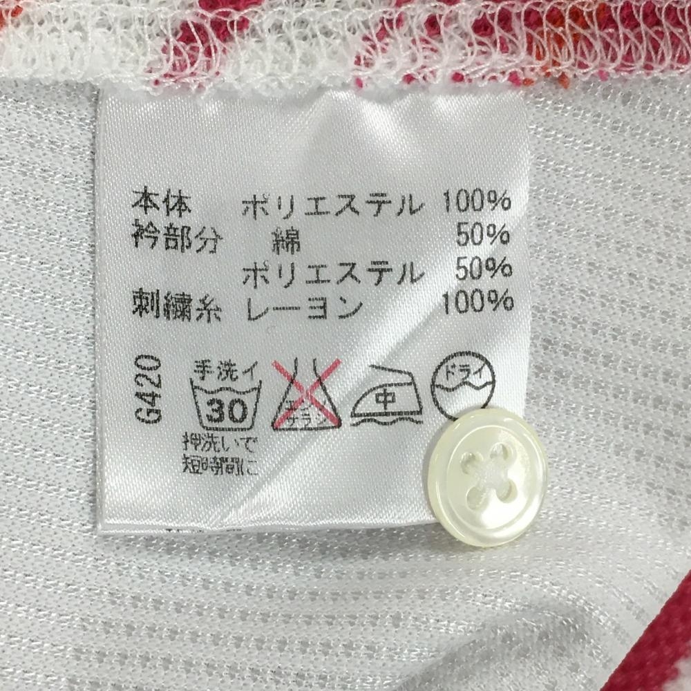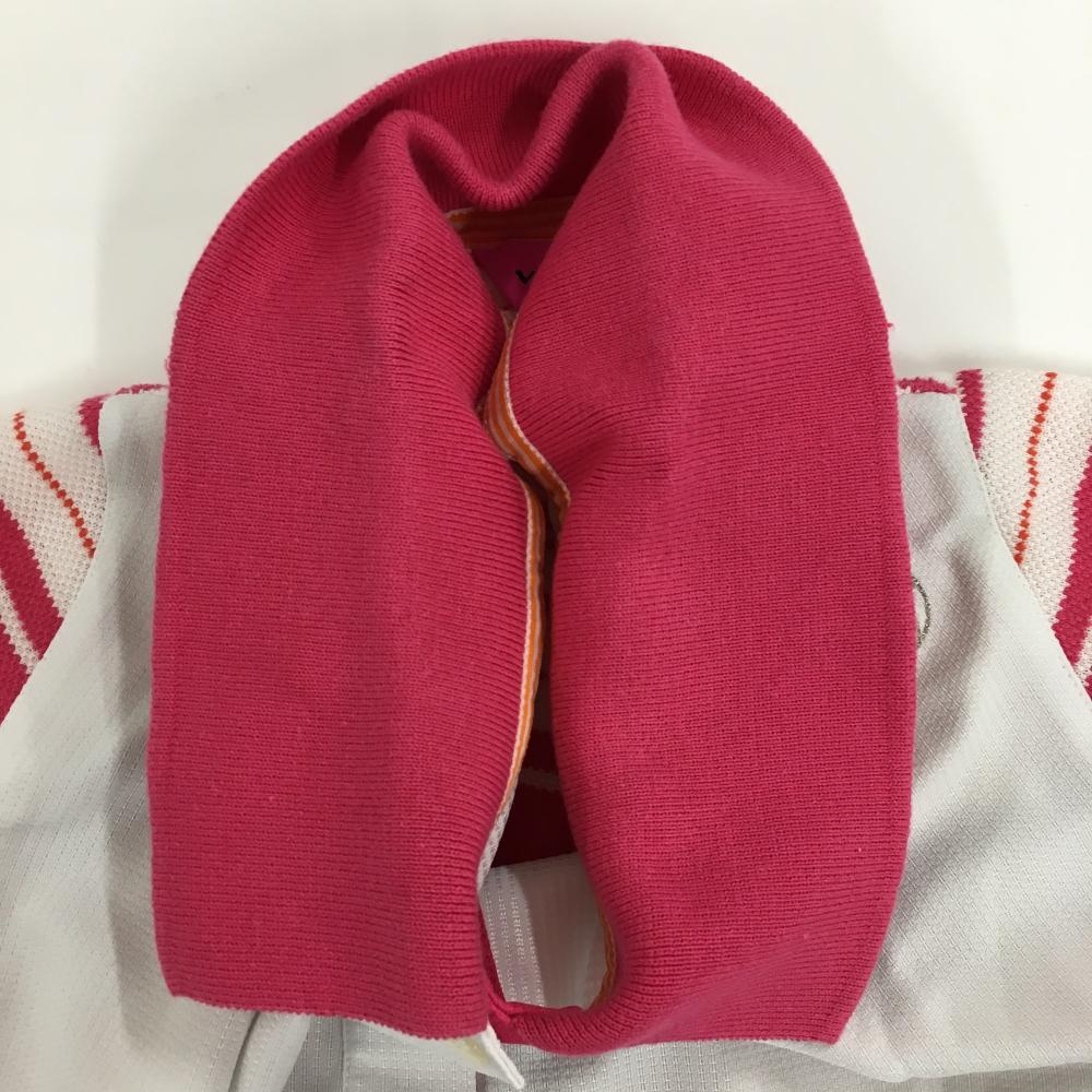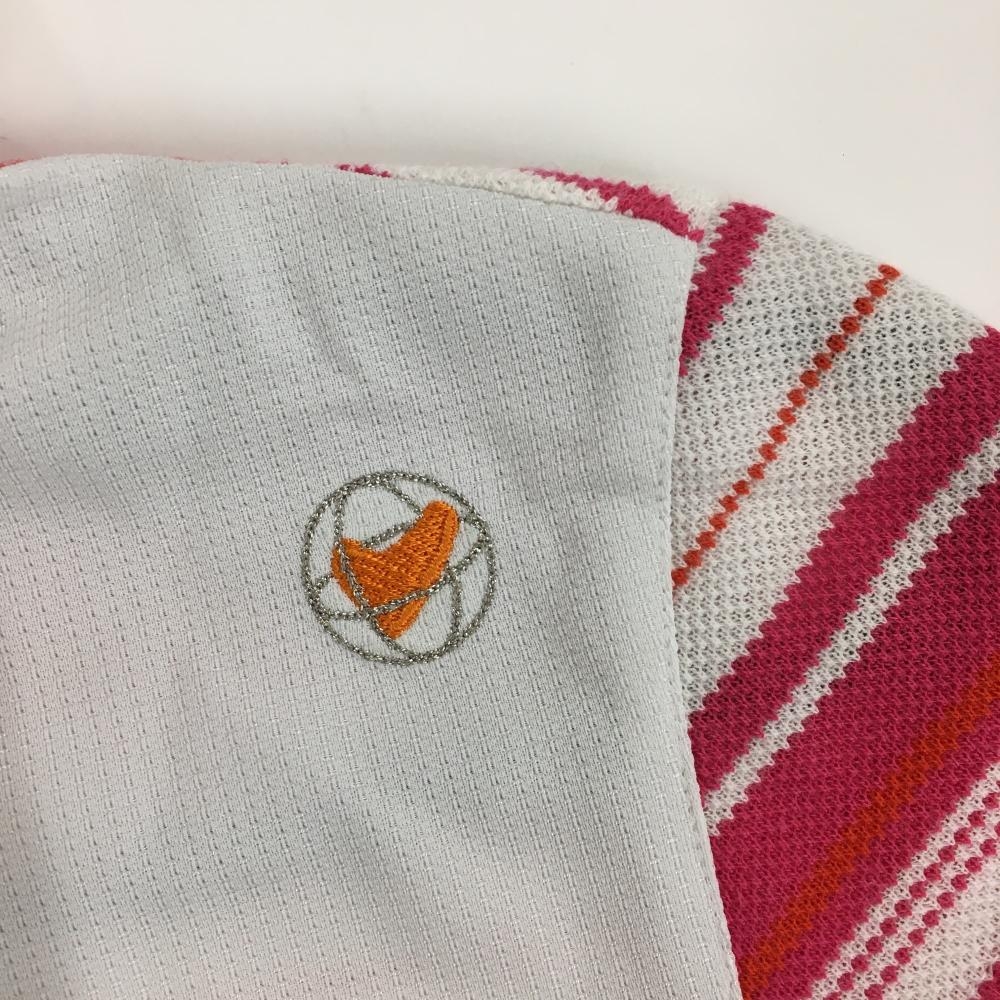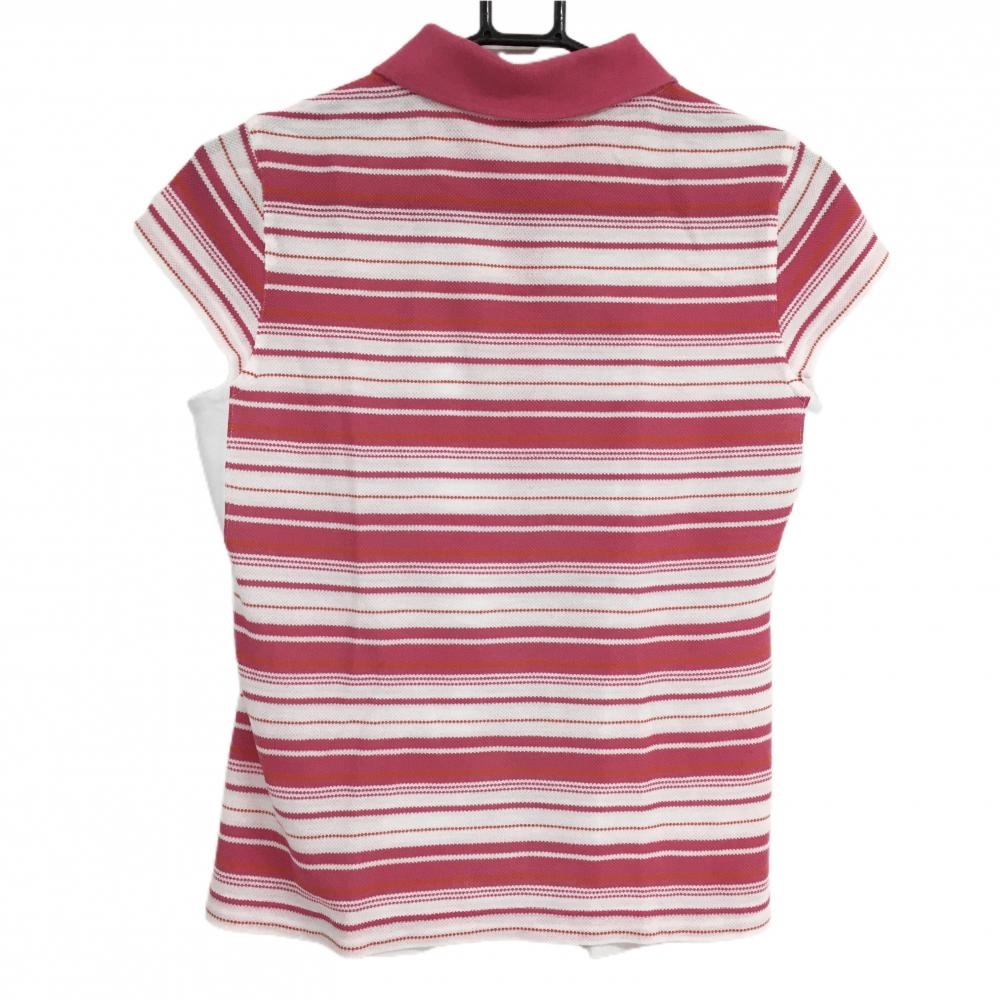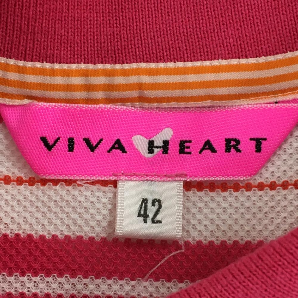 【美品】ビバハート ノースリーブポロシャツ 白×ピンク 背面ボーダー レディース 42(L) ゴルフウェア VIVA HEART