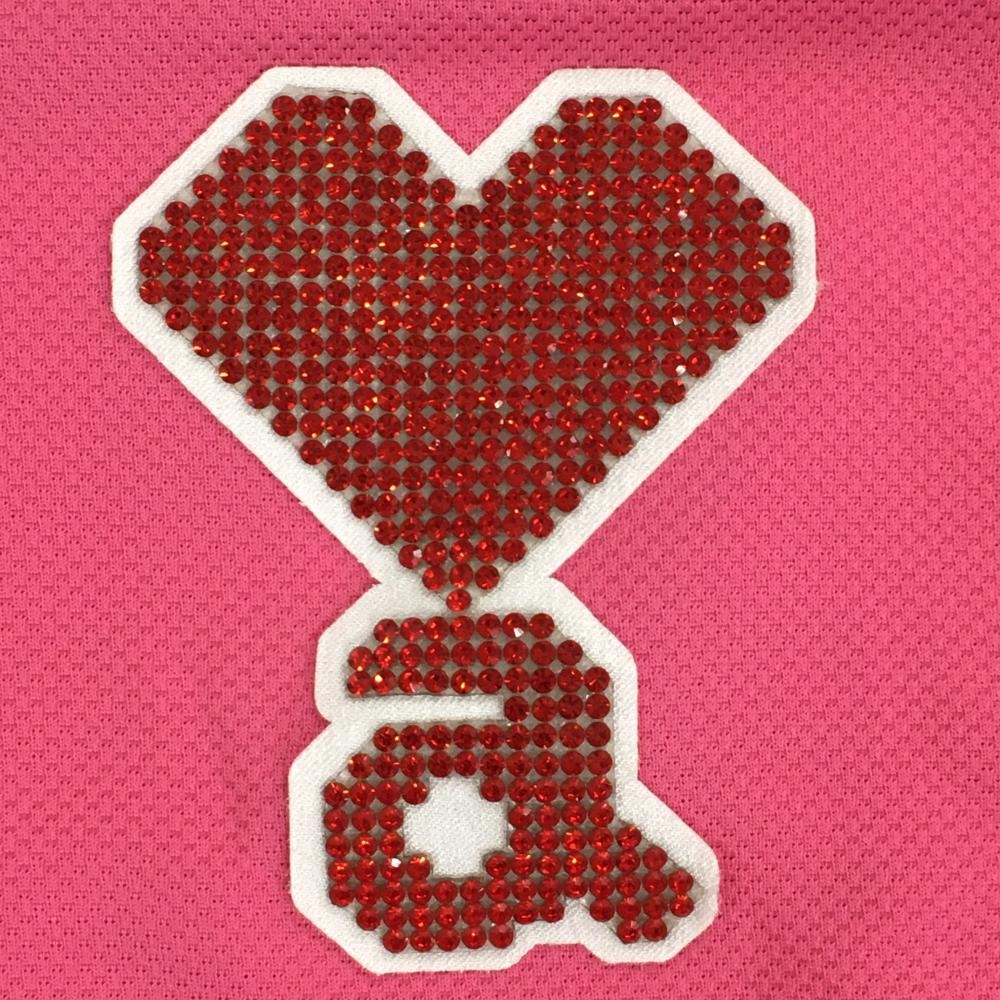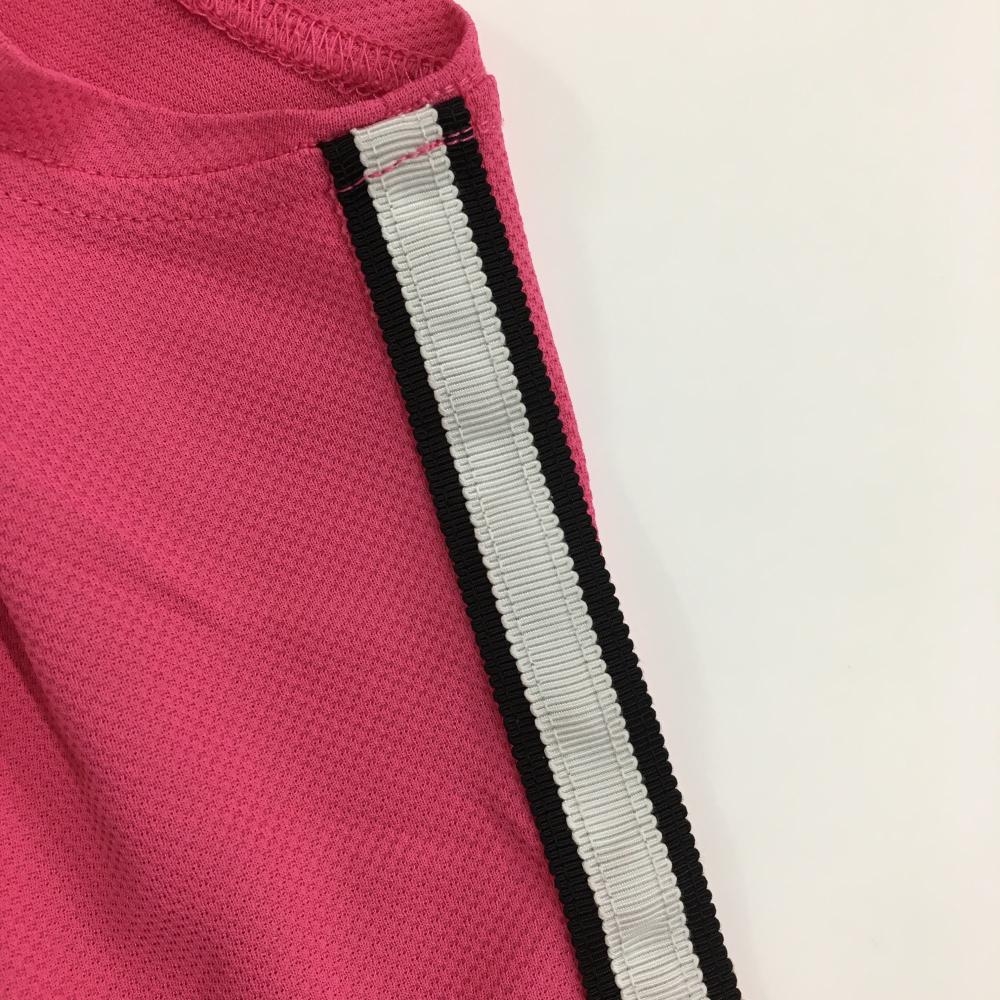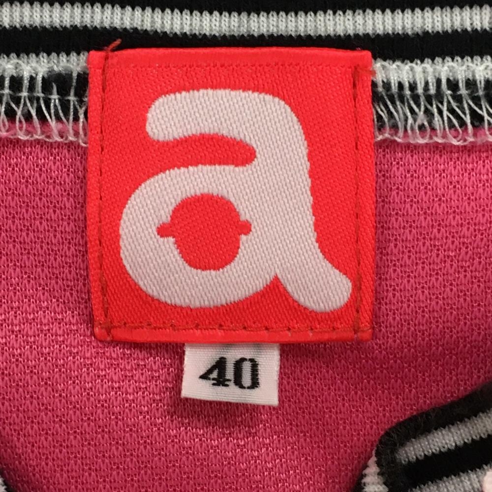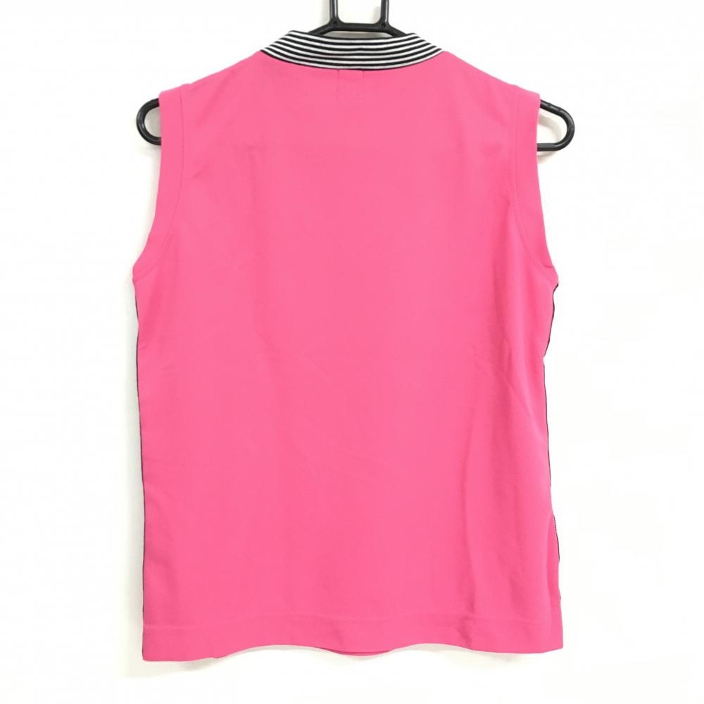 【美品】アルチビオ ノースリーブハイネックシャツ ピンク ネックボーダー ロゴラインストーン レディース 40(L) ゴルフウェア archivio