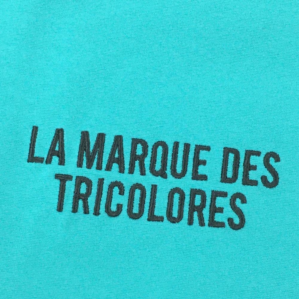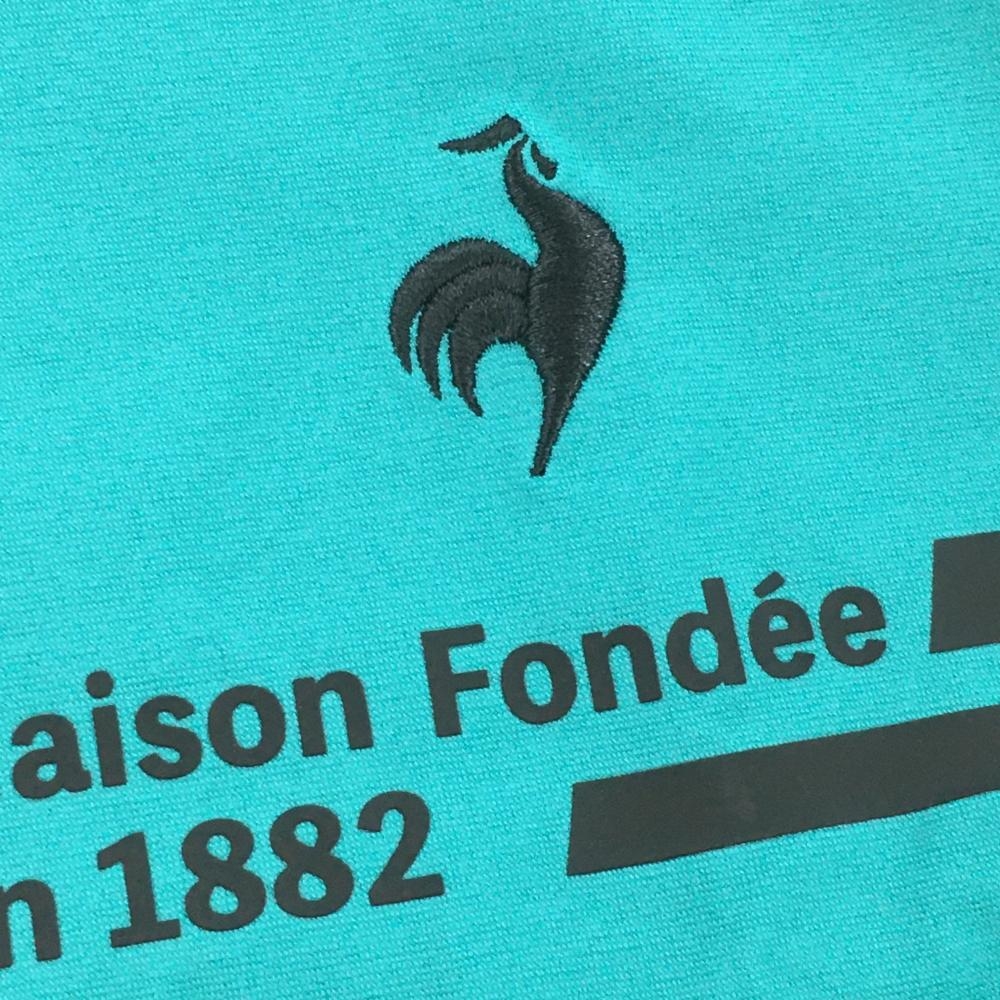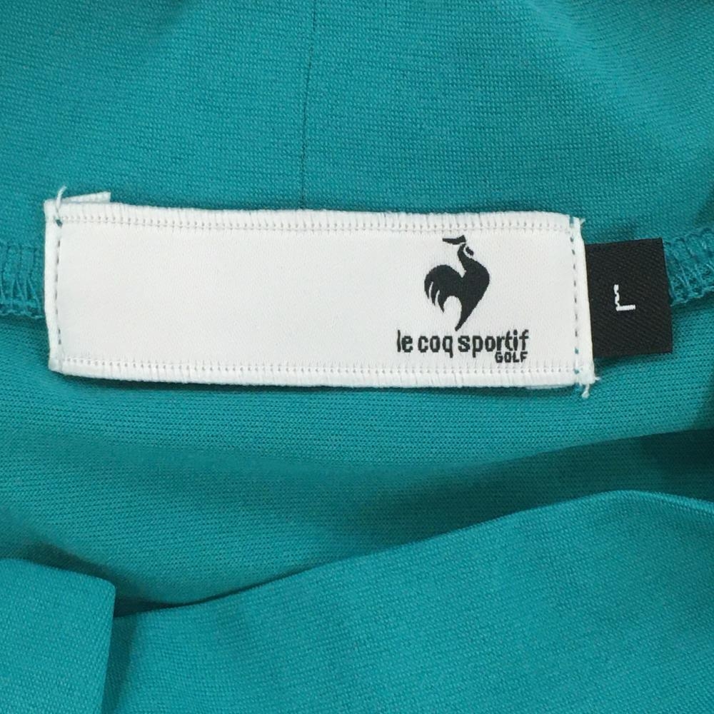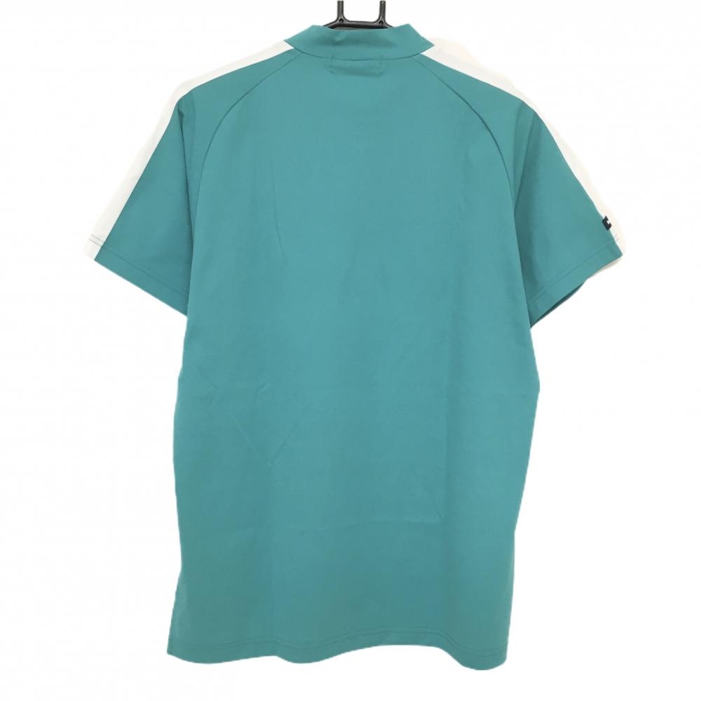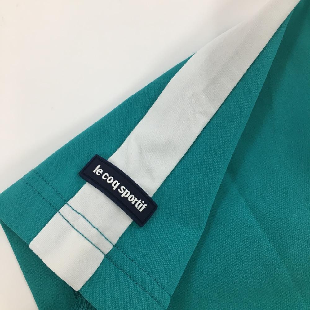 【超美品】ルコックゴルフ 半袖ハイネックシャツ ブルーグリーン×白 袖白ライン メンズ L ゴルフウェア 2023年モデル le coq sportif