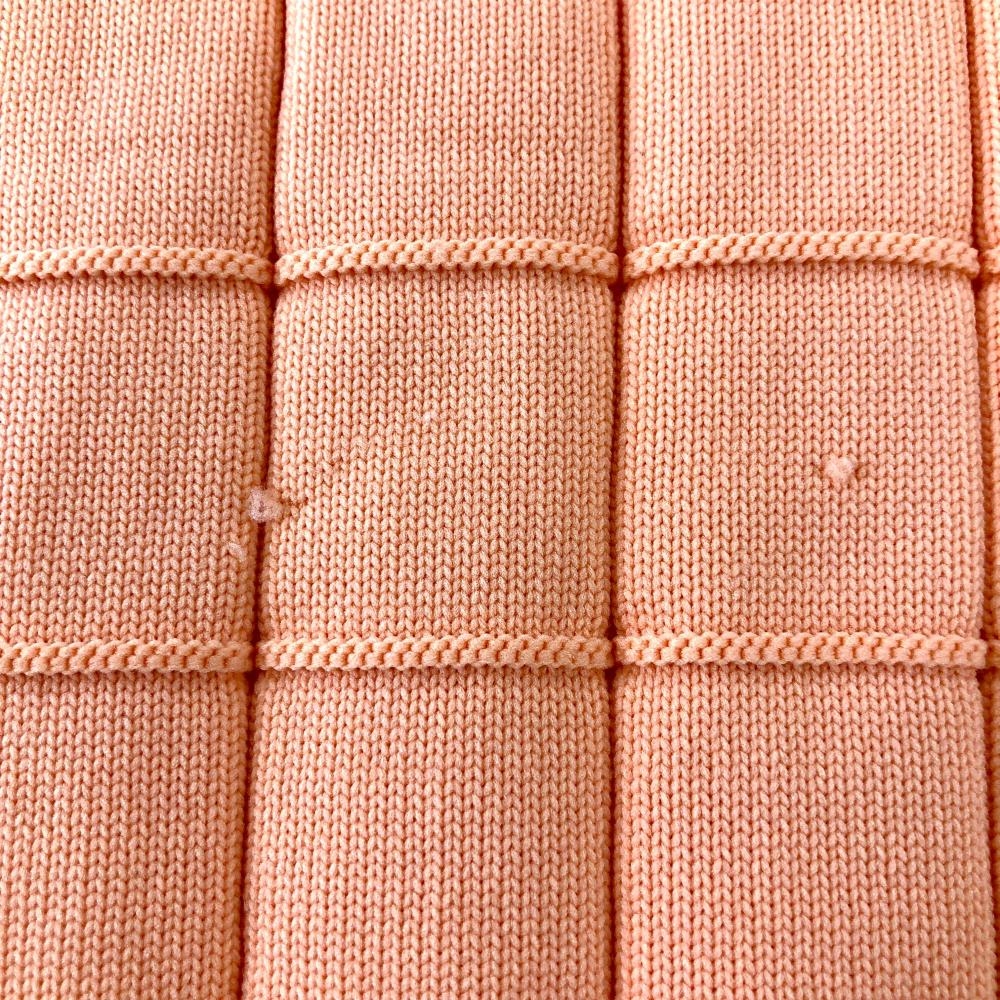 【美品】ニューバランスゴルフ ニットベスト サーモンピンク×白 上部透かし編み レディース 2(L) ゴルフウェア New Balance