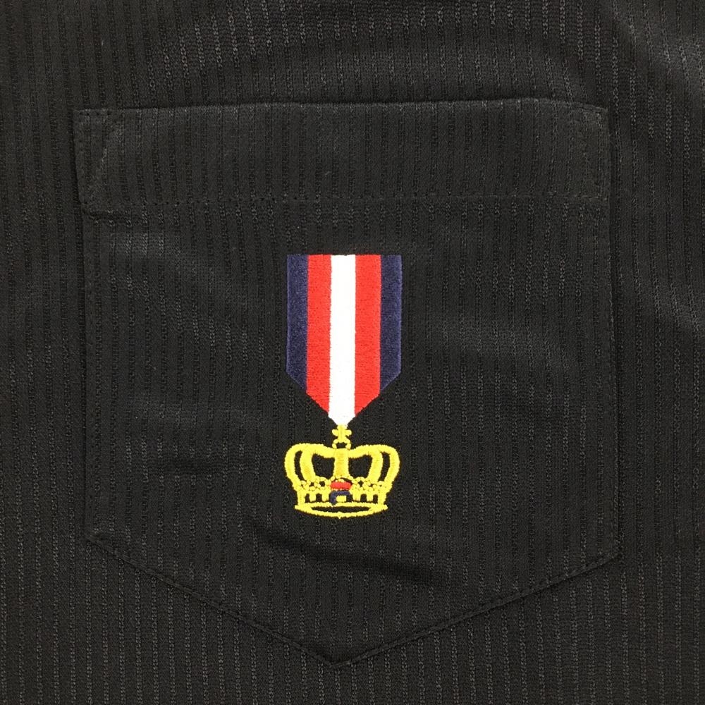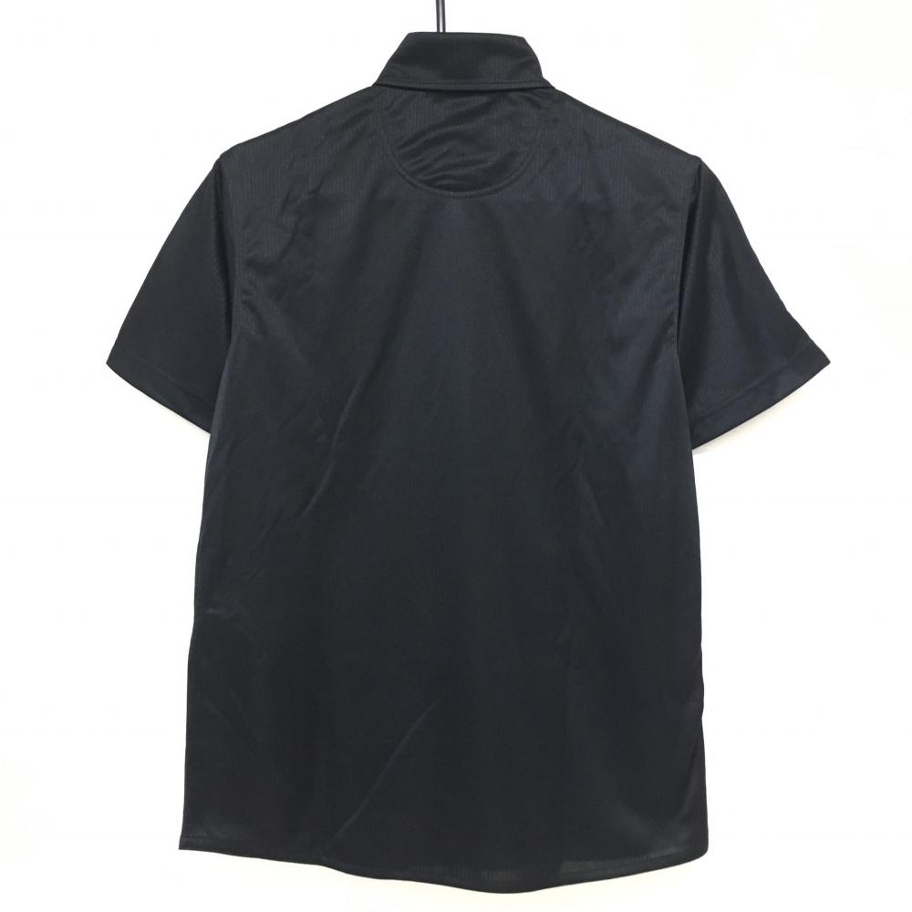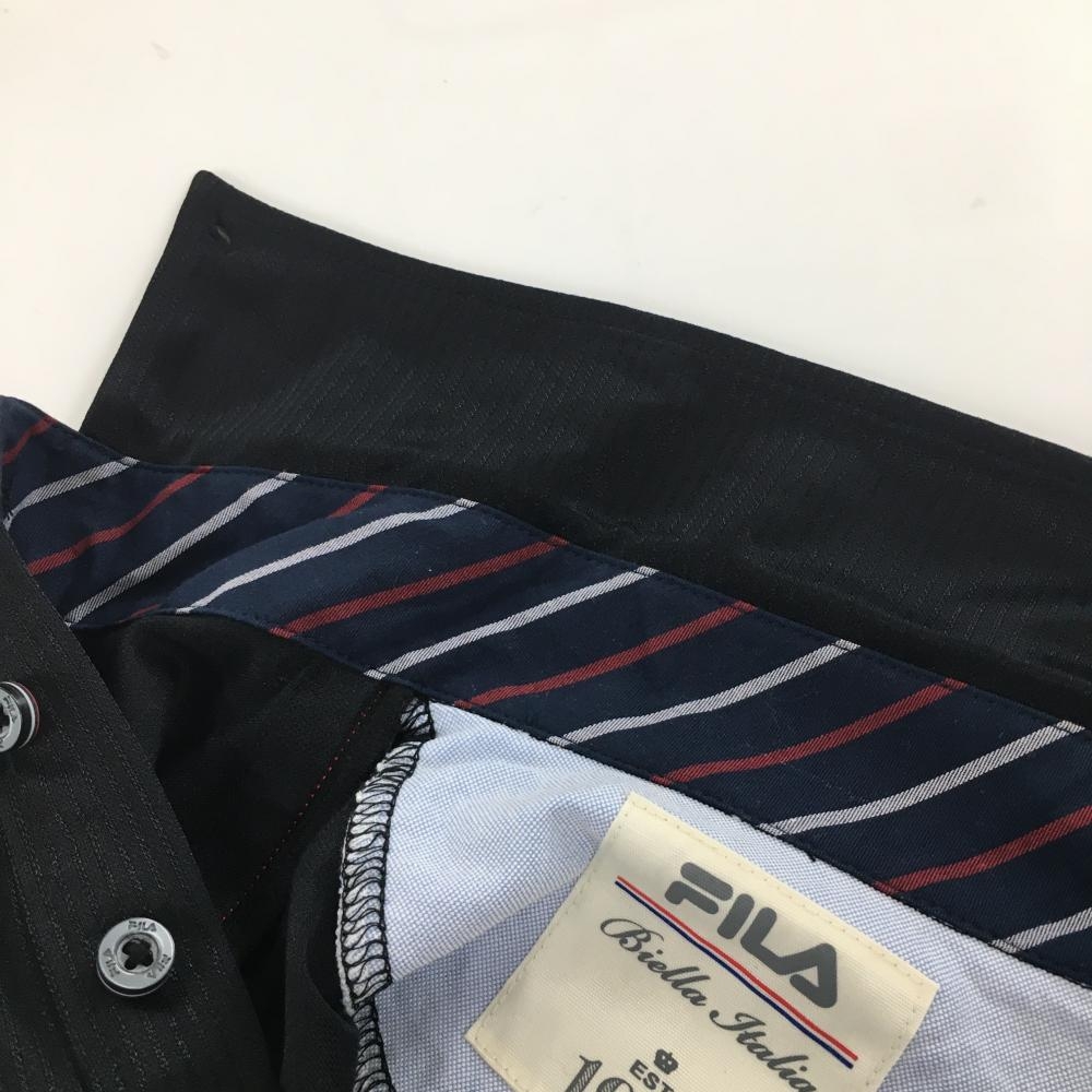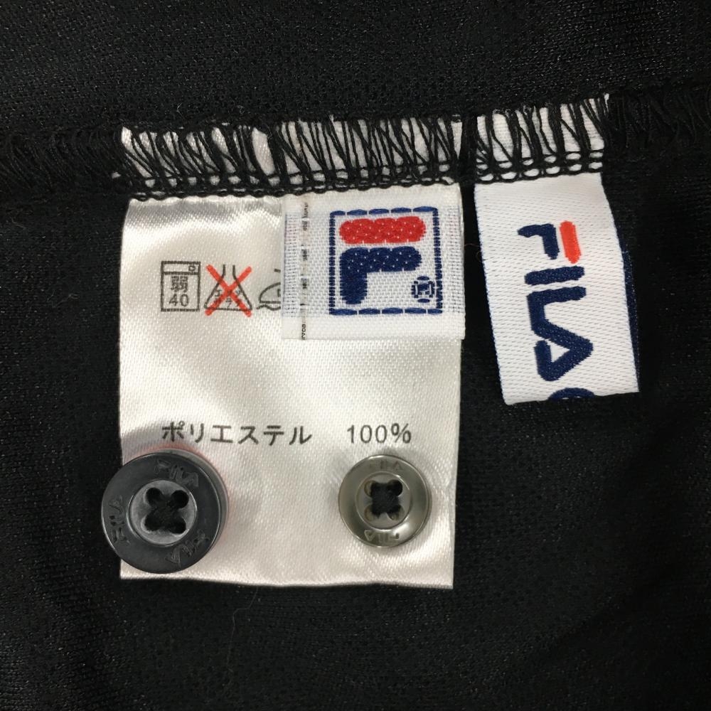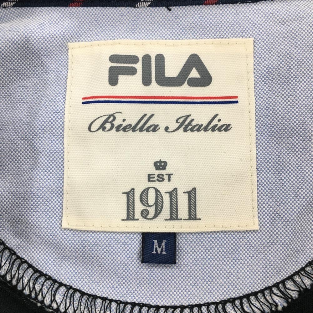 【美品】フィラゴルフ 半袖ポロシャツ 黒×レッド ストライプ地模様 トリコロールライン メンズ M ゴルフウェア FILA GOLF