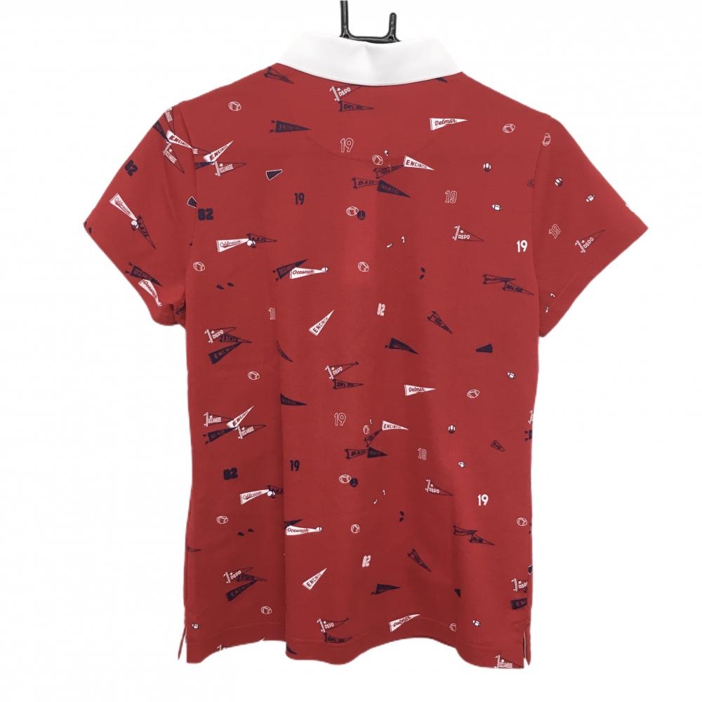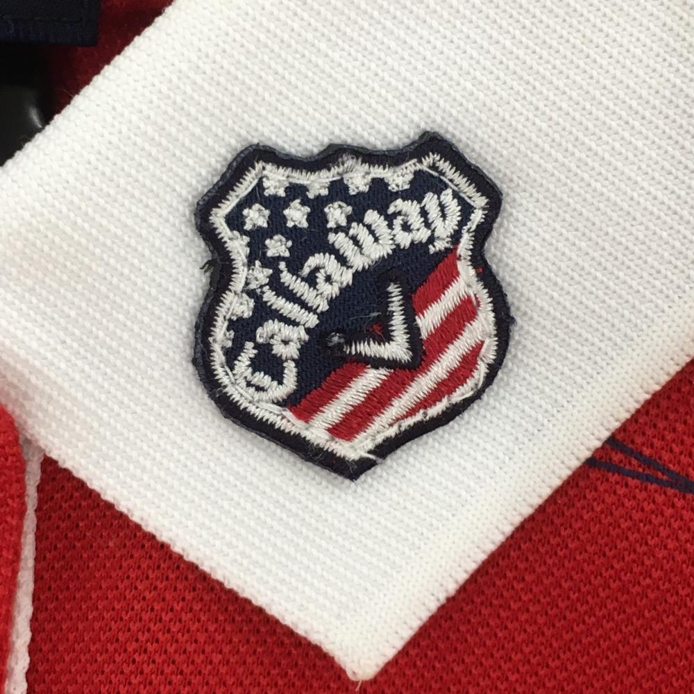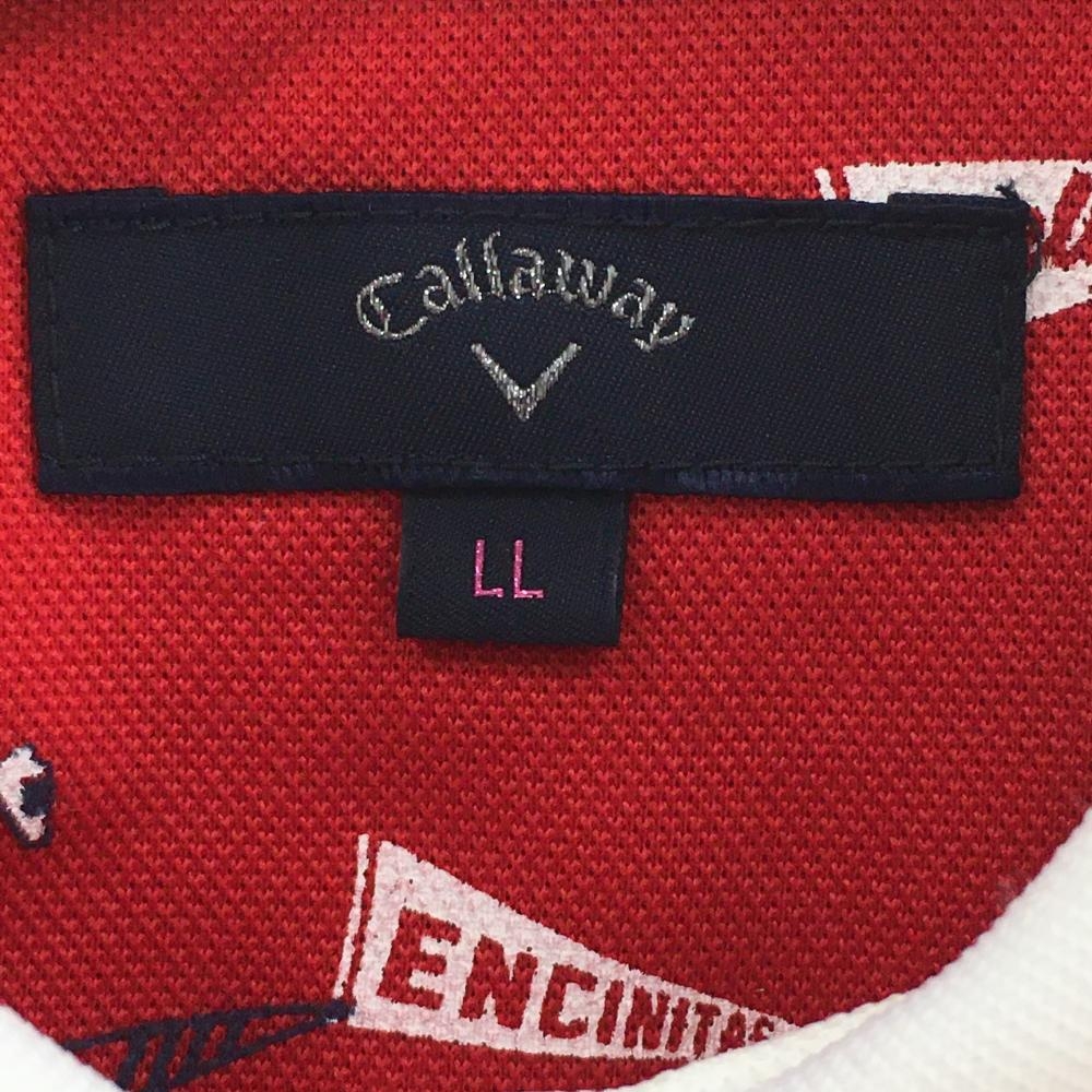 キャロウェイ 半袖ポロシャツ レッド×白 フラッグ柄 レディース LL ゴルフウェア Callaway