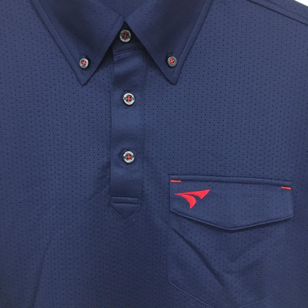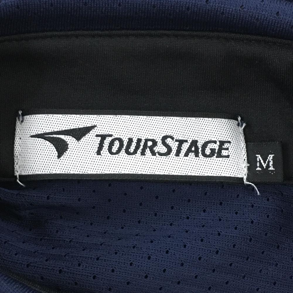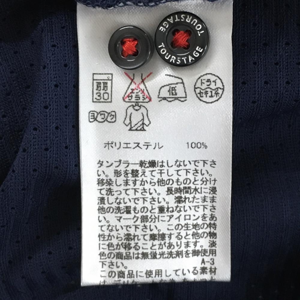 【超美品】ツアーステージ 半袖ポロシャツ ネイビー ロゴ赤 パンチング メッシュ メンズ M ゴルフウェア TOURSTAGE