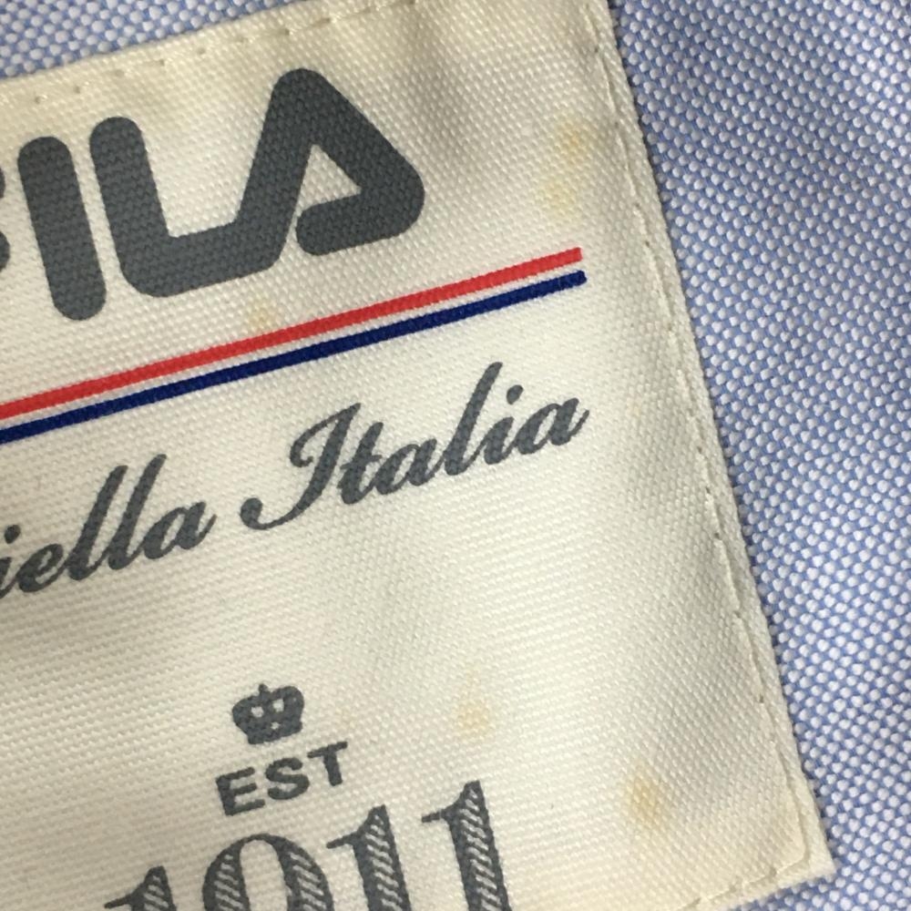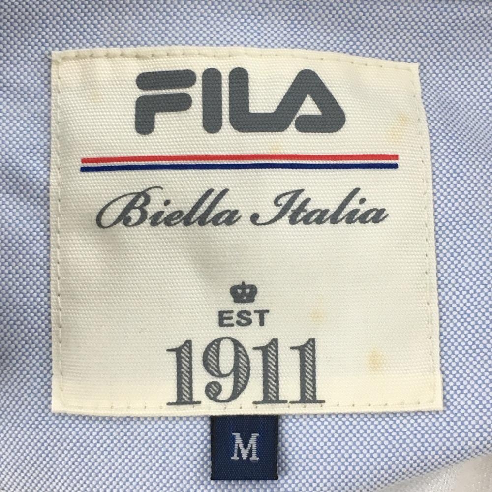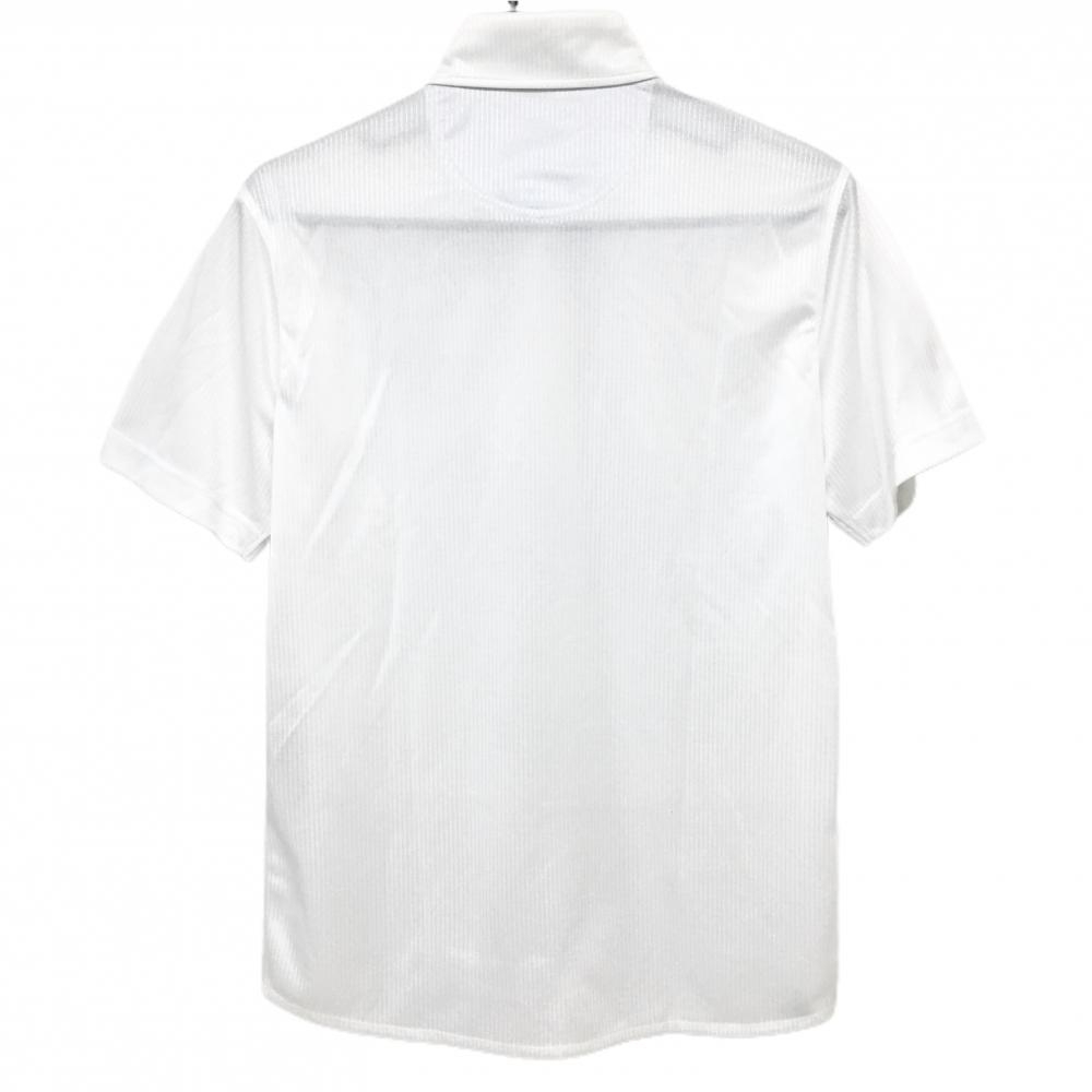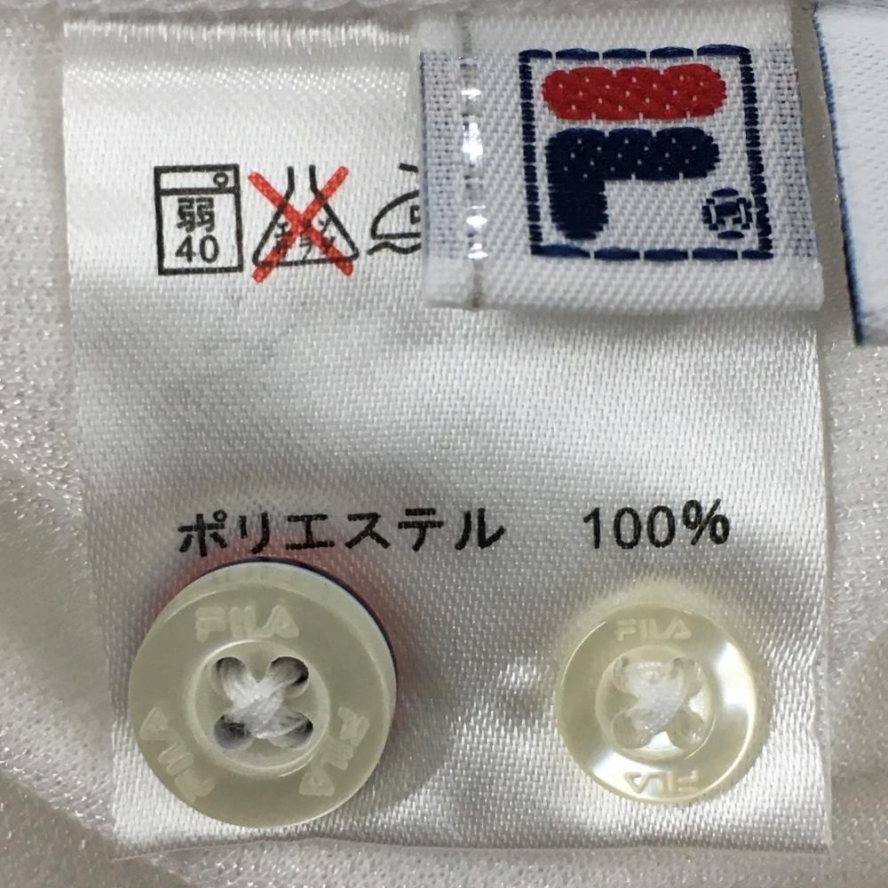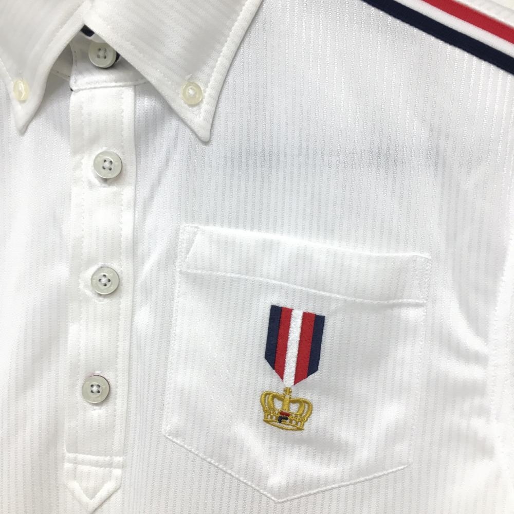 【美品】フィラゴルフ 半袖ポロシャツ 白×ネイビー ストライプ地模様 肩トリコロールライン メンズ M ゴルフウェア FILA GOLF