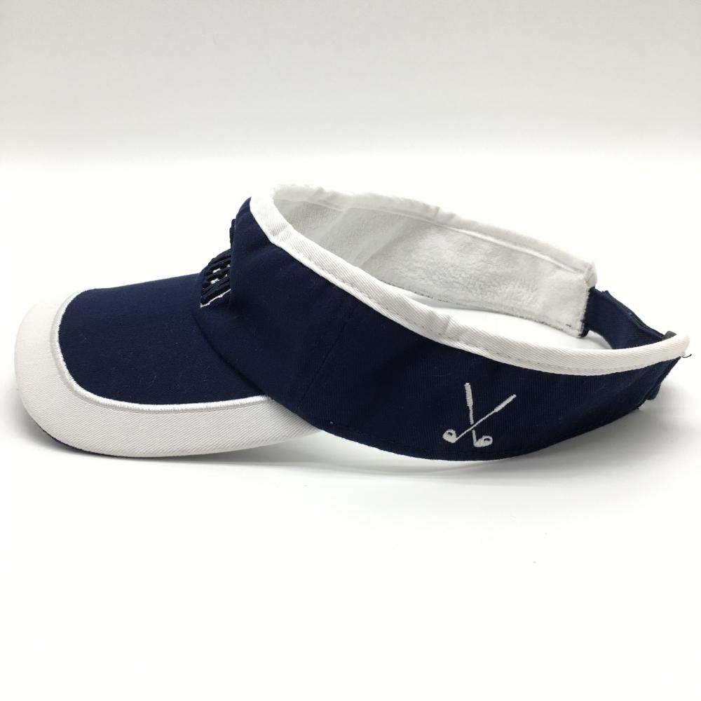 【美品】キスオンザグリーン サンバイザー ネイビー×白 立体ロゴ刺しゅう フリー ゴルフウェア kiss on the green