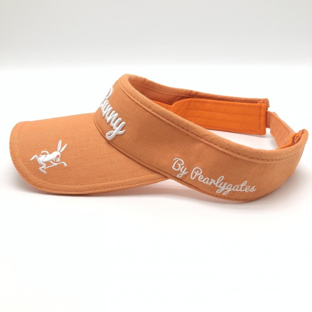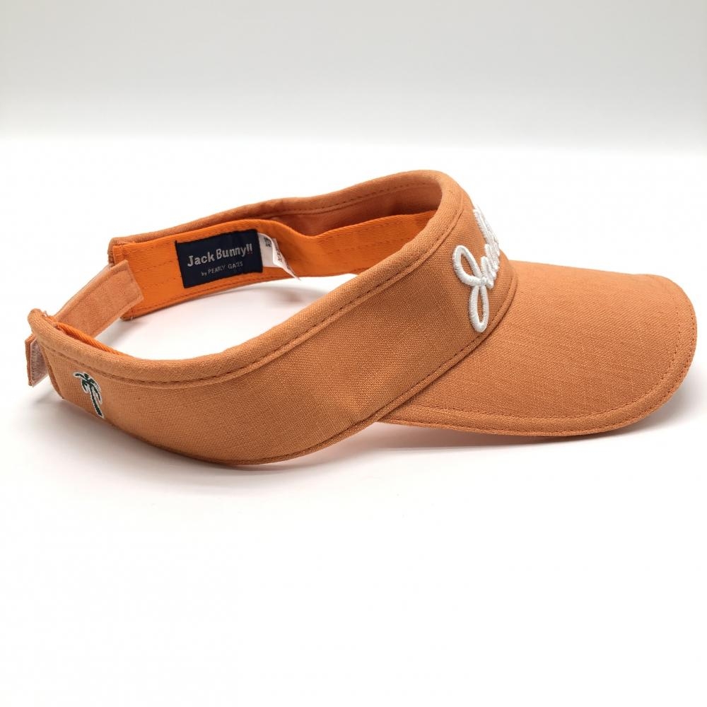 【超美品】ジャックバニー サンバイザー オレンジ×白 麻100% FR ゴルフウェア Jack Bunny