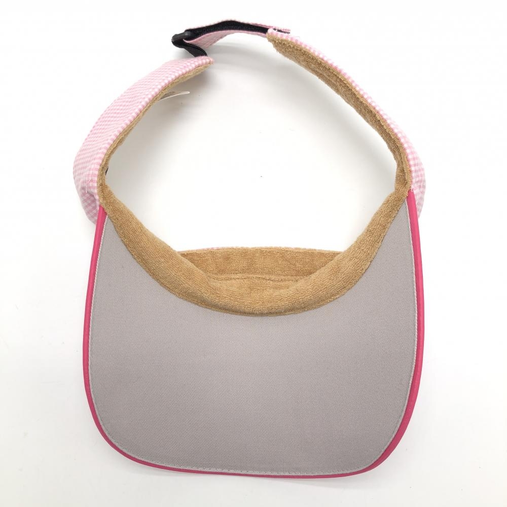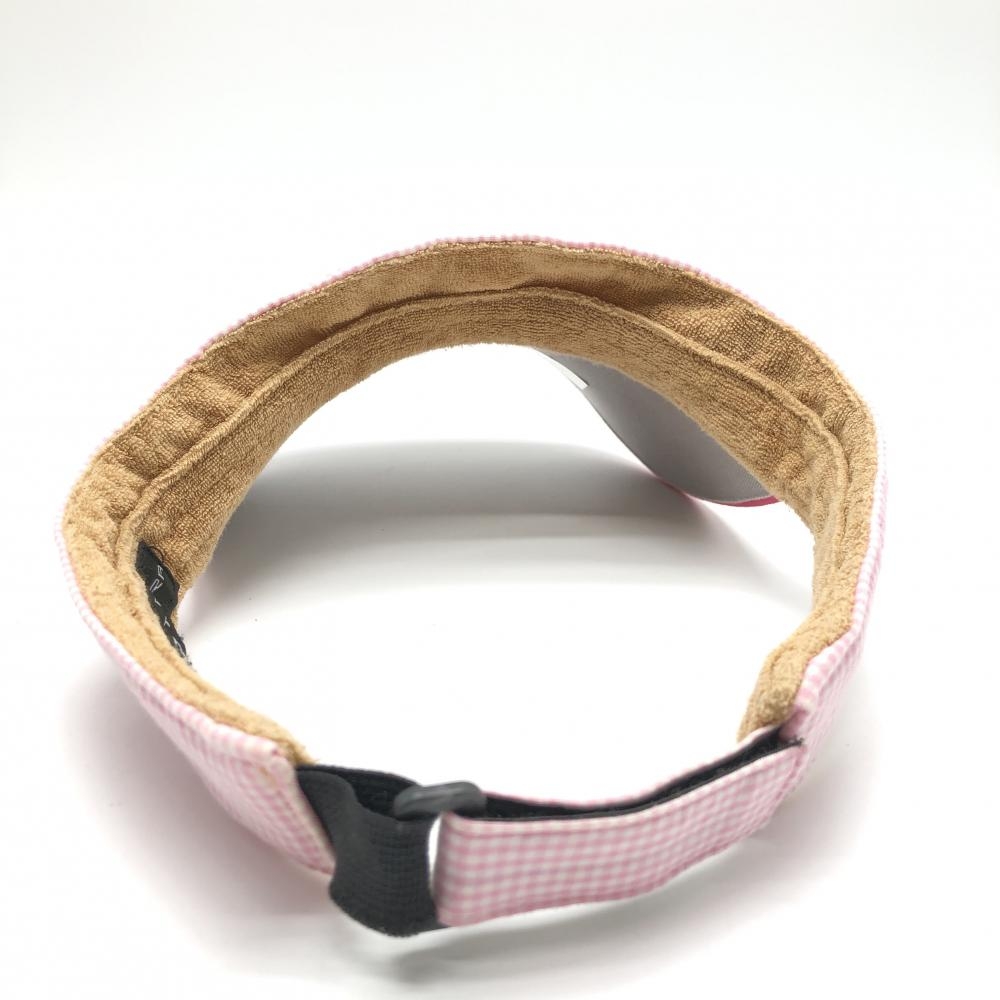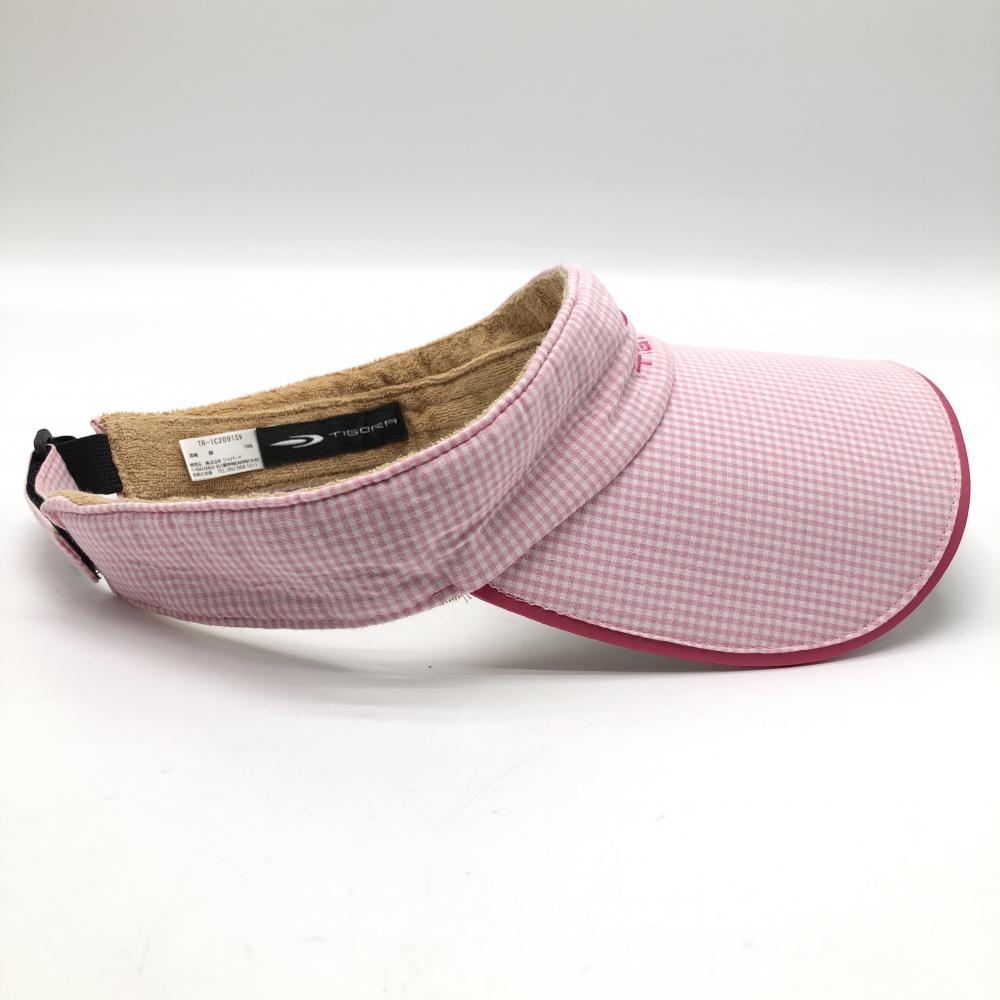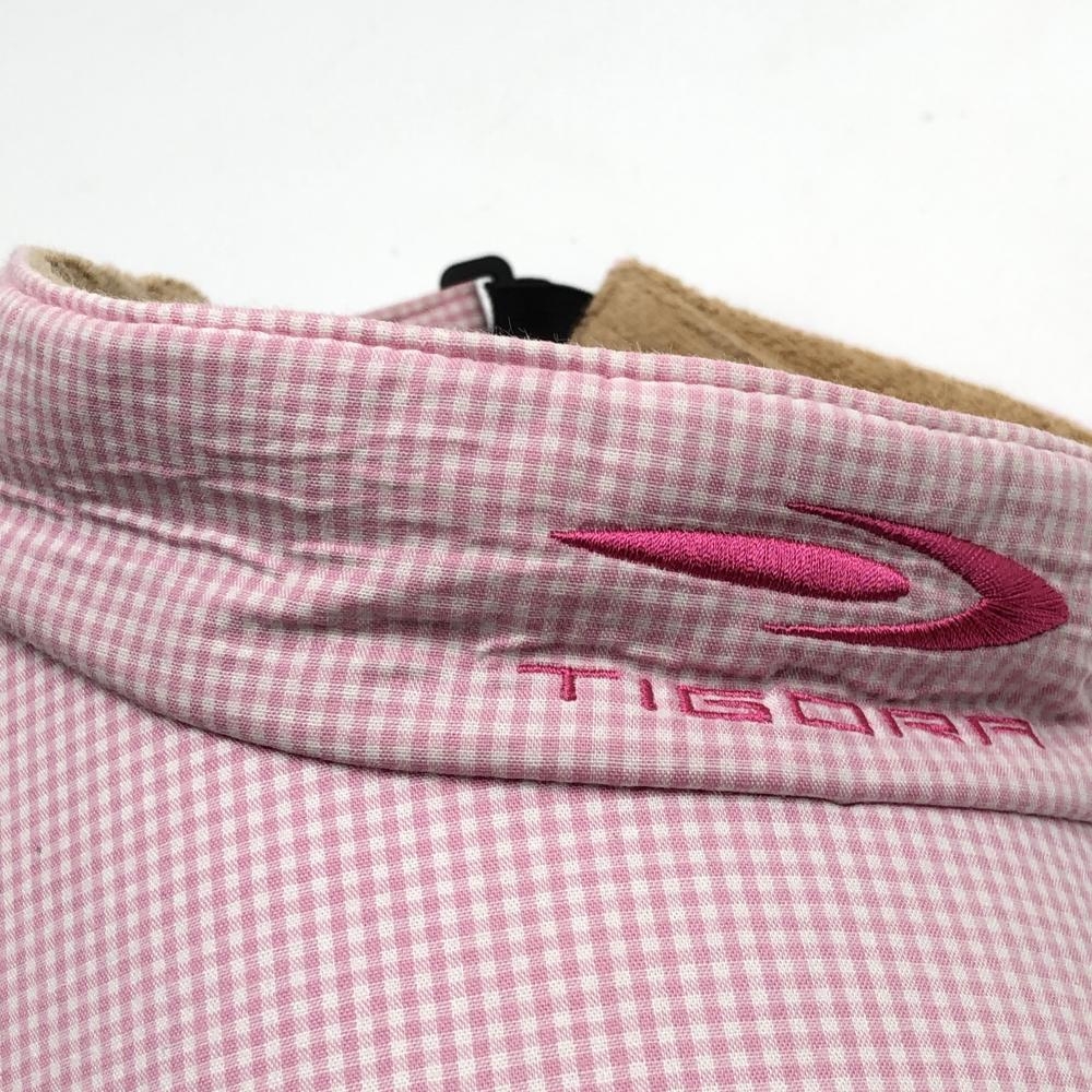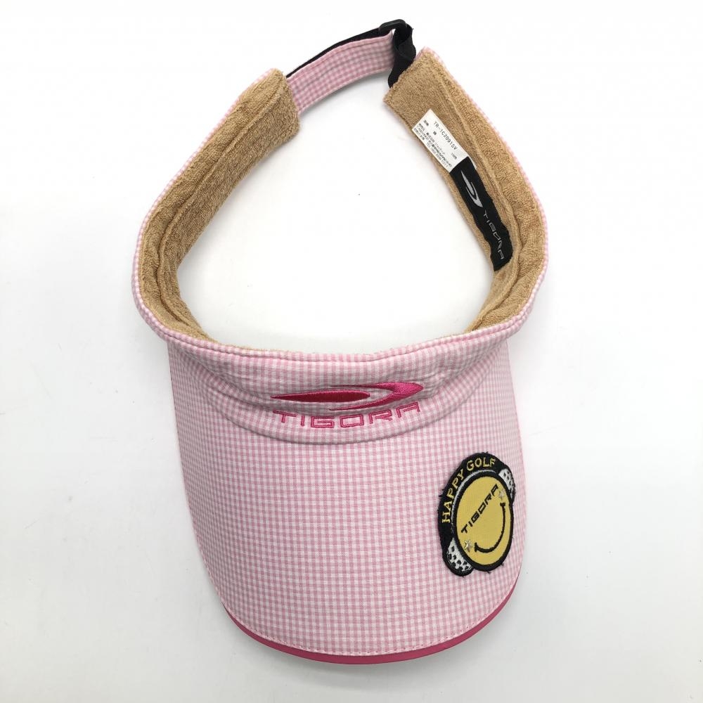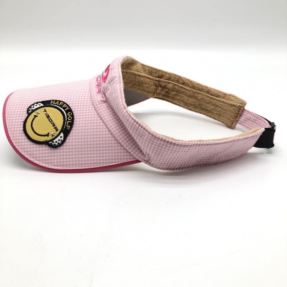 【美品】ティゴラ サンバイザー ピンク×白 ギンガムチェック スマイルワッペン レディース ゴルフウェア TIGORA