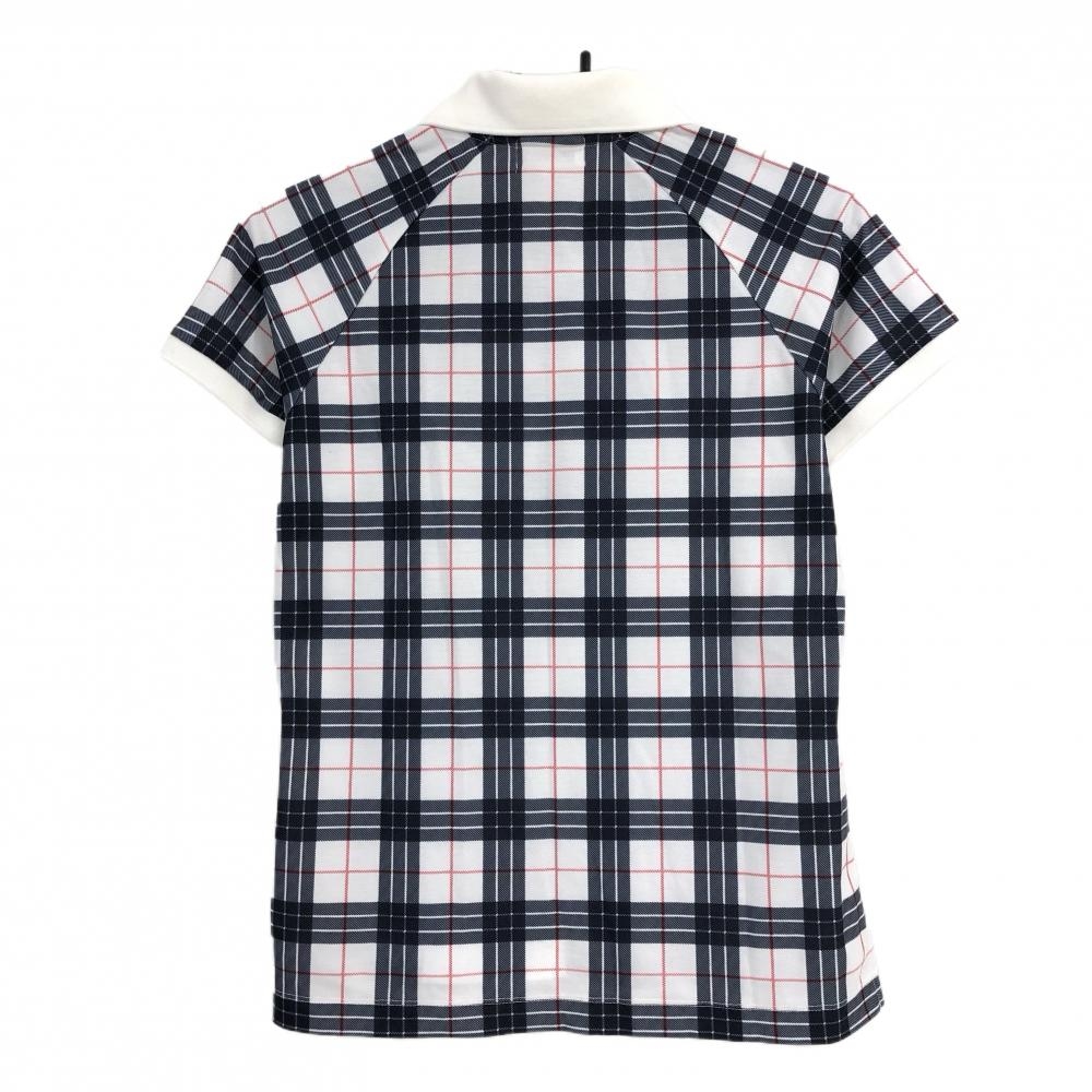 【超美品】コルウィン 半袖ポロシャツ 白×ネイビー チェック 胸元刺しゅう ハーフジップ レディース M ゴルフウェア Kolwin