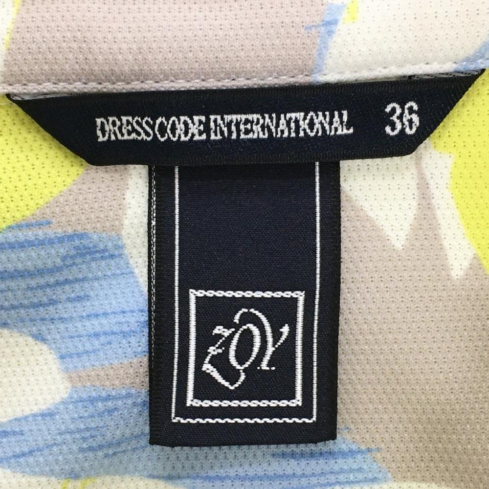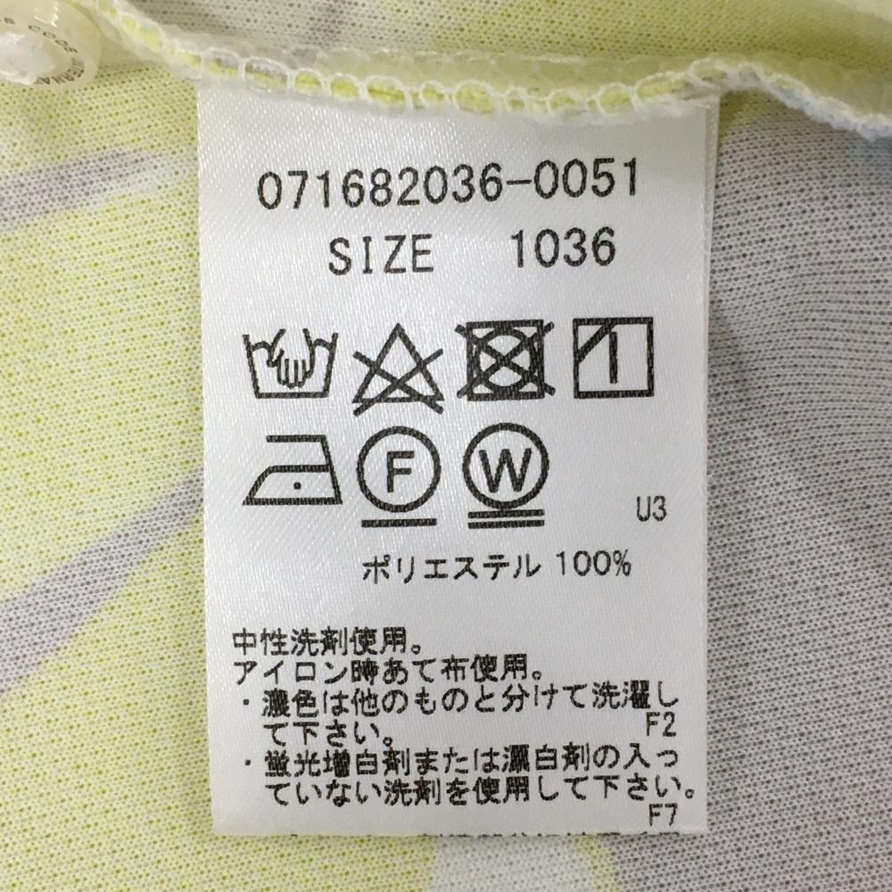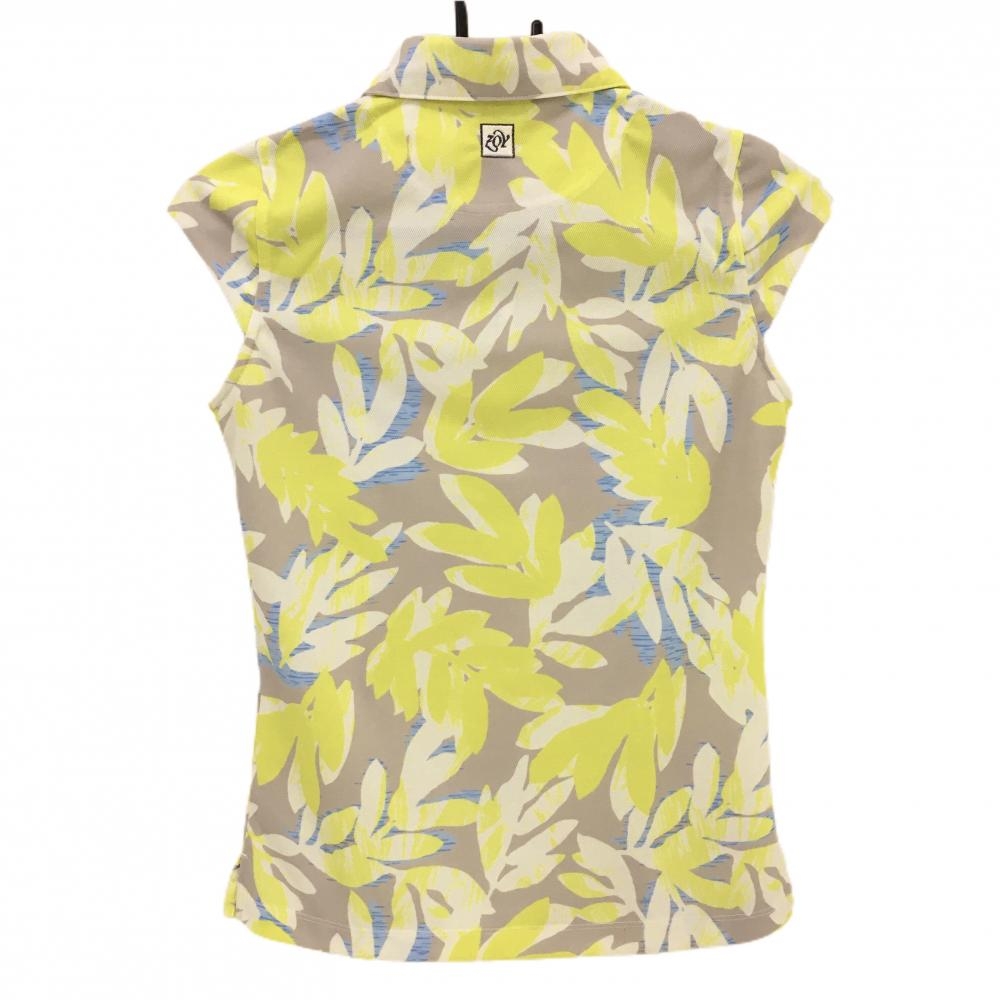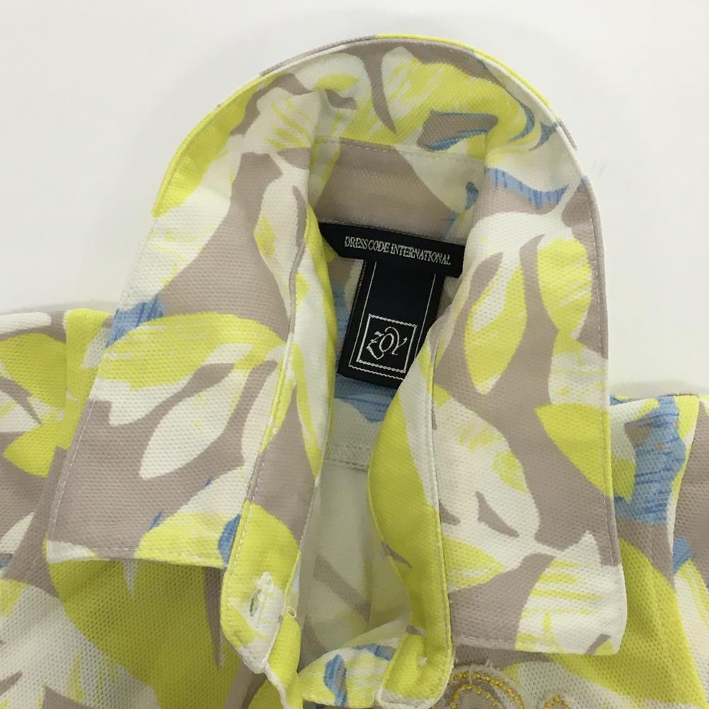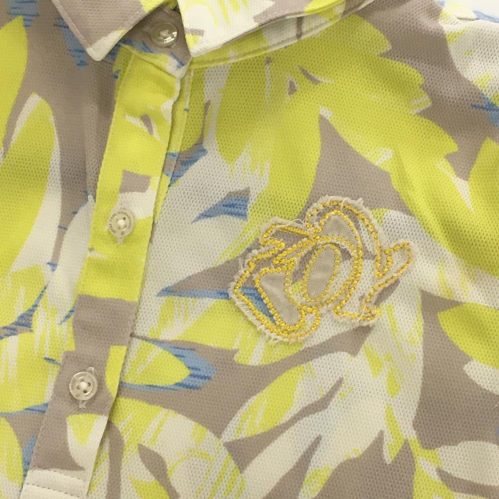 ゾーイ 半袖ポロシャツ グレージュ×イエロー リーフ柄風 ダメージ加工ロゴ レディース 36(S) ゴルフウェア ZOY