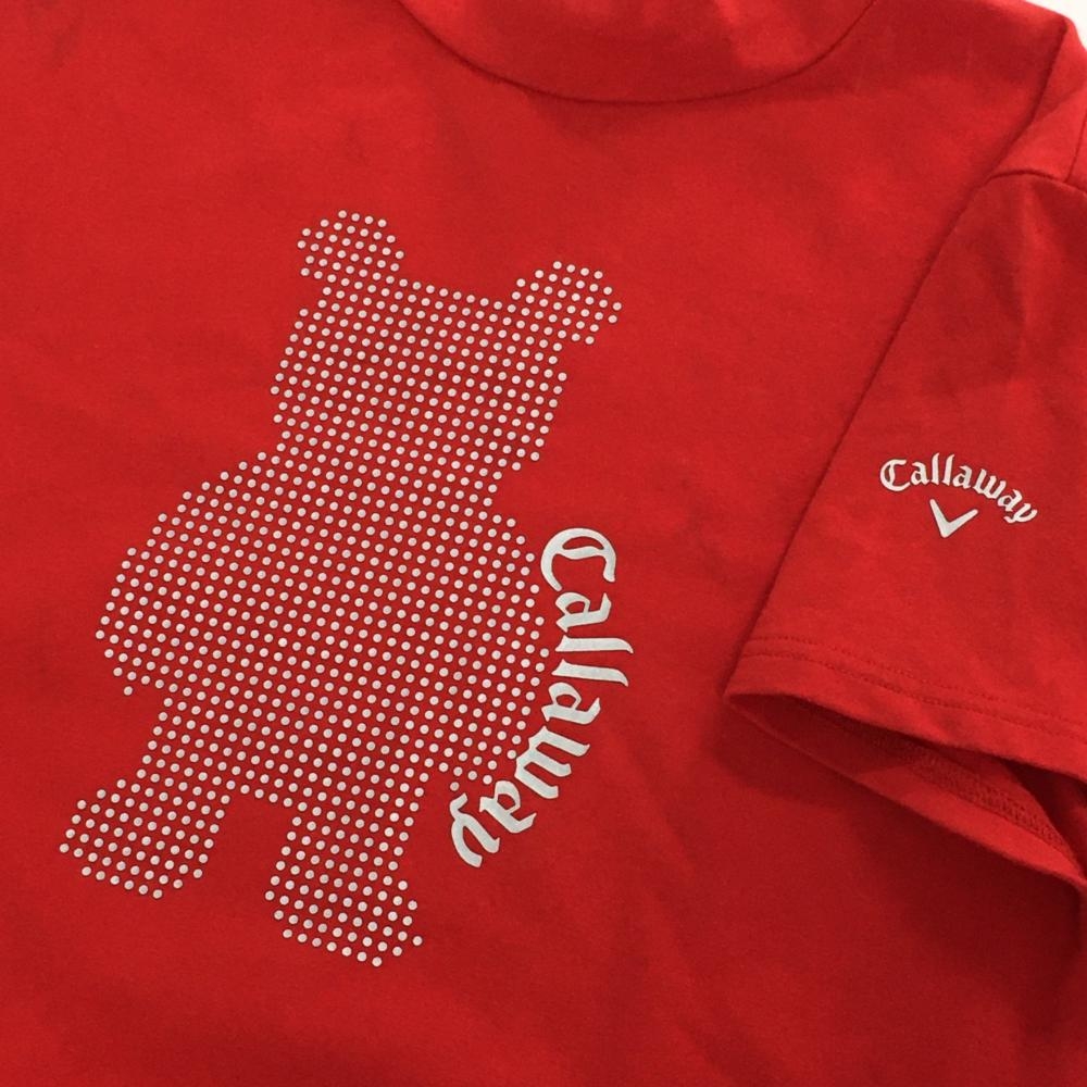 【美品】キャロウェイ 半袖ハイネックシャツ レッド×シルバー ベア レディース L ゴルフウェア 2024年モデル Callaway