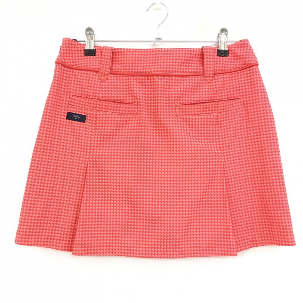 【超美品】キャロウェイ スカート レッド 千鳥格子柄 ボックスプリーツ レディース L ゴルフウェア Callaway