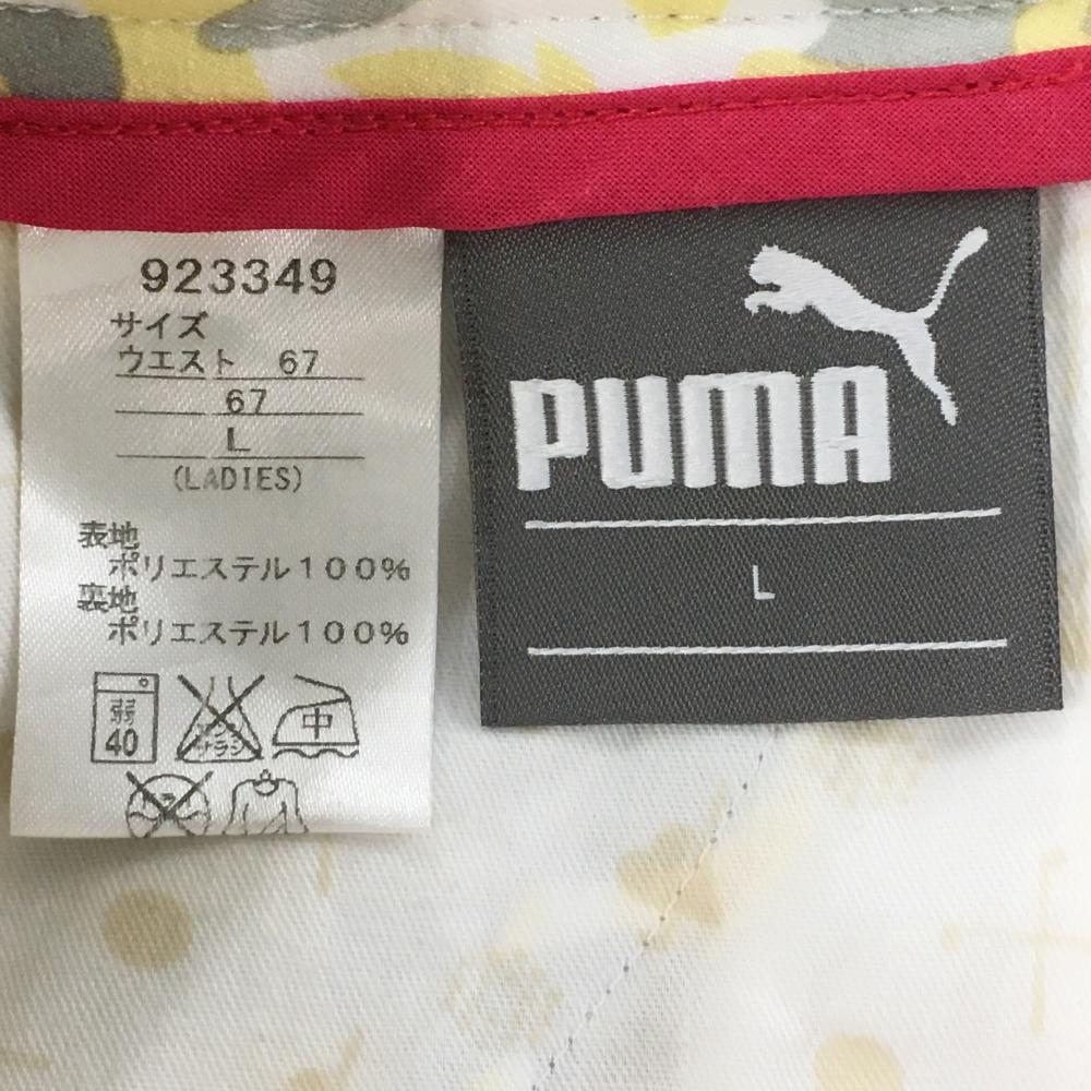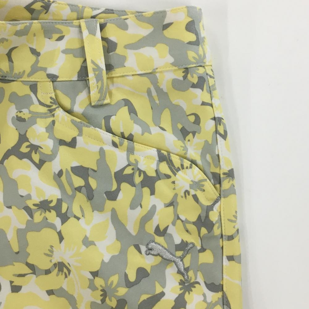 【美品】プーマ パンツ イエロー×グレー 総柄 ハイビスカス ストレッチ レディース L ゴルフウェア PUMA