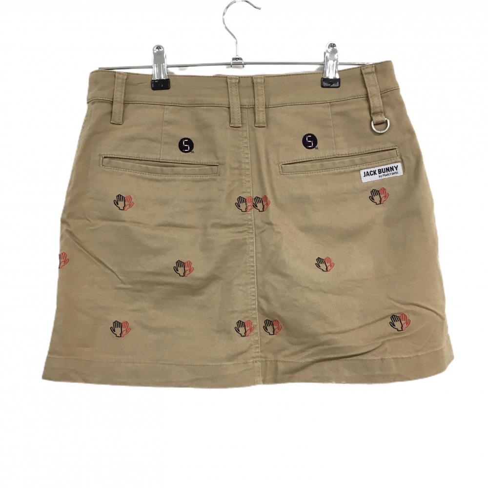 【美品】ジャックバニー スカート ライトブラウン×ネイビー×レッド ハンド刺しゅう 5周年 レディース 2(L) ゴルフウェア Jack Bunny