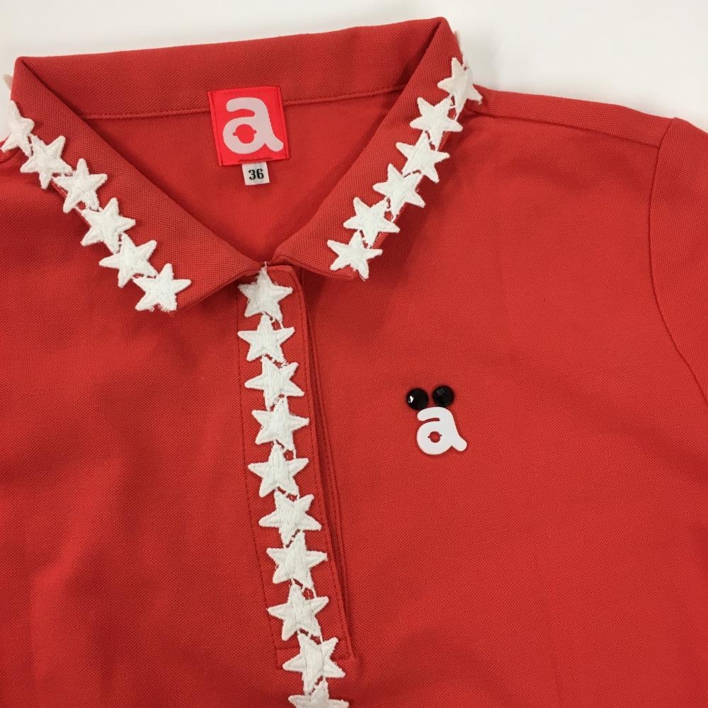 【美品】アルチビオ 半袖ポロシャツ レッド×白 襟・センター星ワッペン レディース 36(S) ゴルフウェア archivio