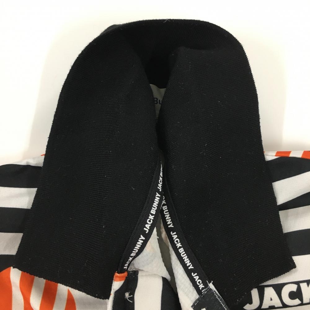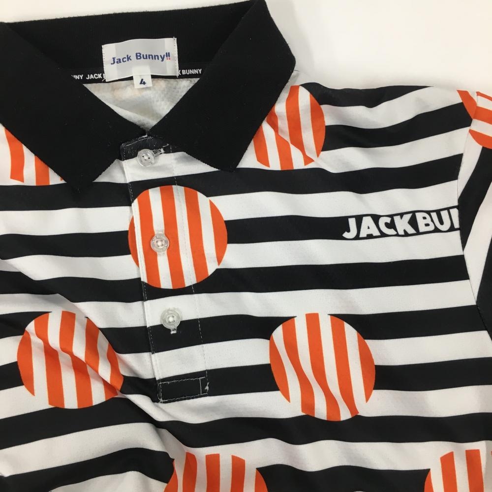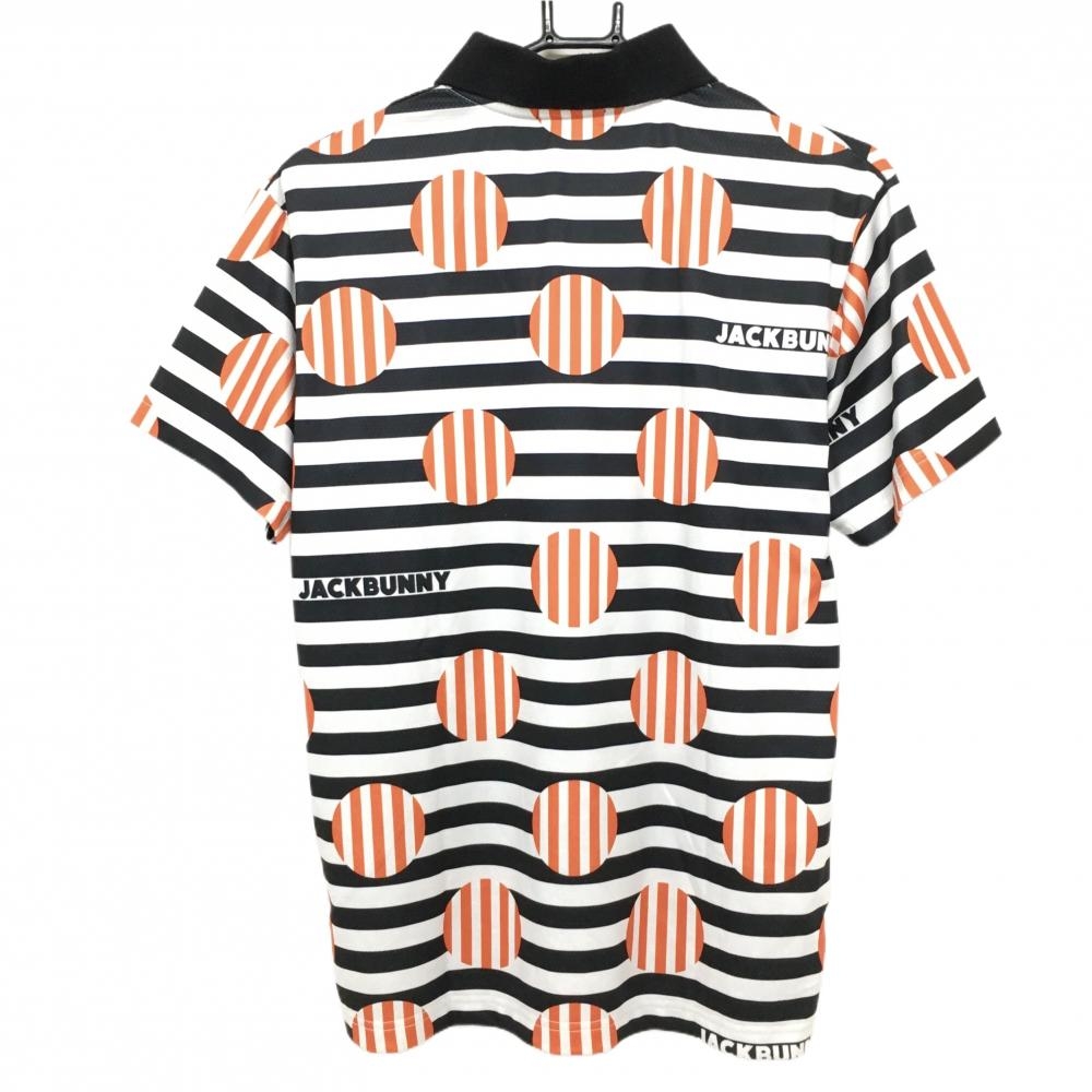 【美品】ジャックバニー 半袖ポロシャツ 白×黒×オレンジ ボーダードット×ストライプ メンズ 4(M) ゴルフウェア 2023年モデル Jack Bunny
