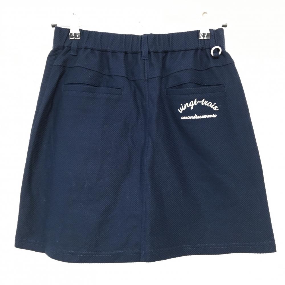 【超美品】23区ゴルフ スカート ネイビー 斜めストライプ織生地 裏地付 レディース I(M) ゴルフウェア 23区