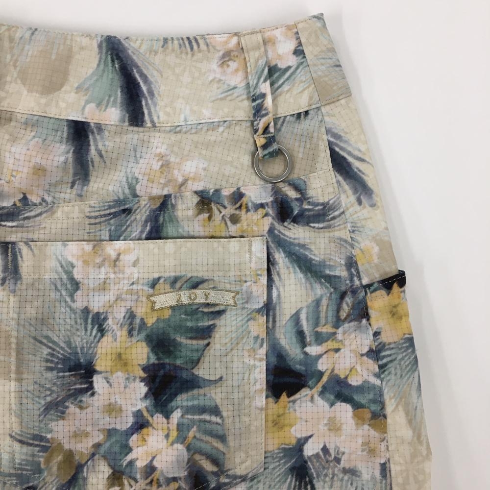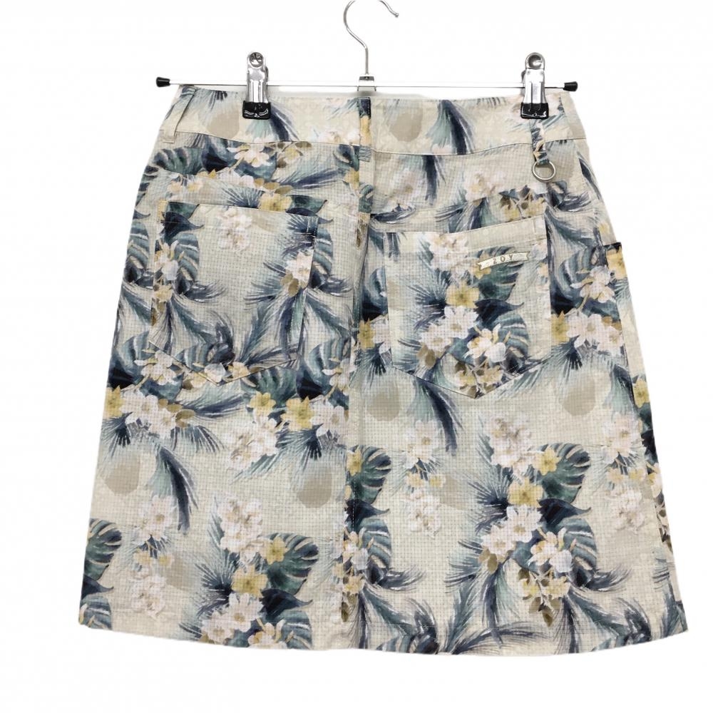 【美品】ゾーイ スカート ベージュ×マルチカラー 花柄 リーフ柄 メッシュ調生地 レディース 36(S) ゴルフウェア ZOY