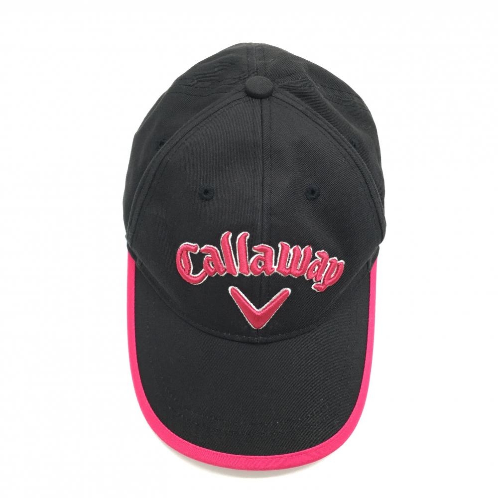 【美品】キャロウェイ キャップ 黒×レッドピンク 立体ロゴ刺しゅう FR ゴルフウェア Callaway