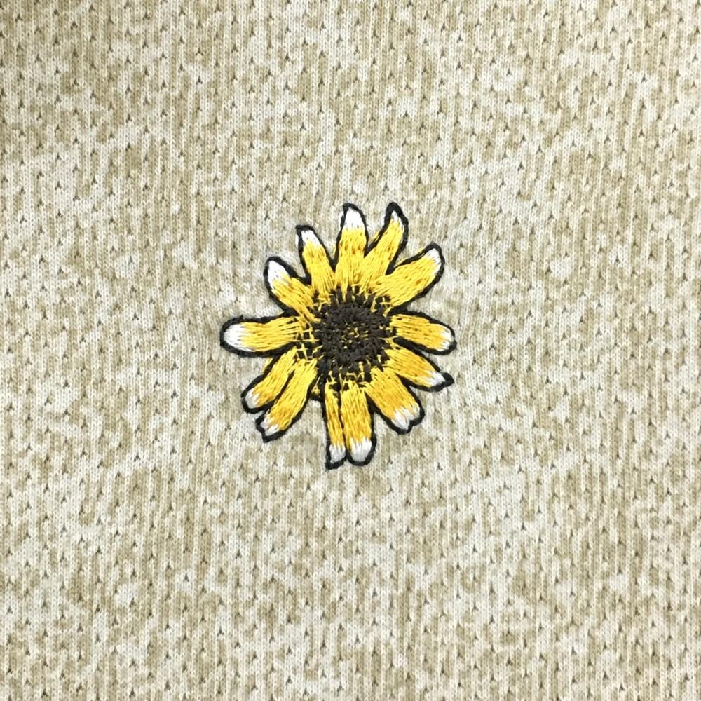 【超美品】アディダス 半袖ポロシャツ ライトベージュ×ベージュ 総柄 花刺しゅう メンズ M ゴルフウェア adidas